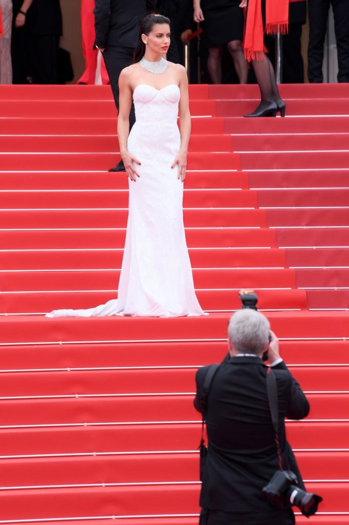 Adriana Lima indossa un sexy vestito bianco al 70° Festival del Cinema di Cannes in Francia, 18/05/2017. Adriana Lima è una modella brasiliana, attrice (Ocean’s Eight). Età – 35.