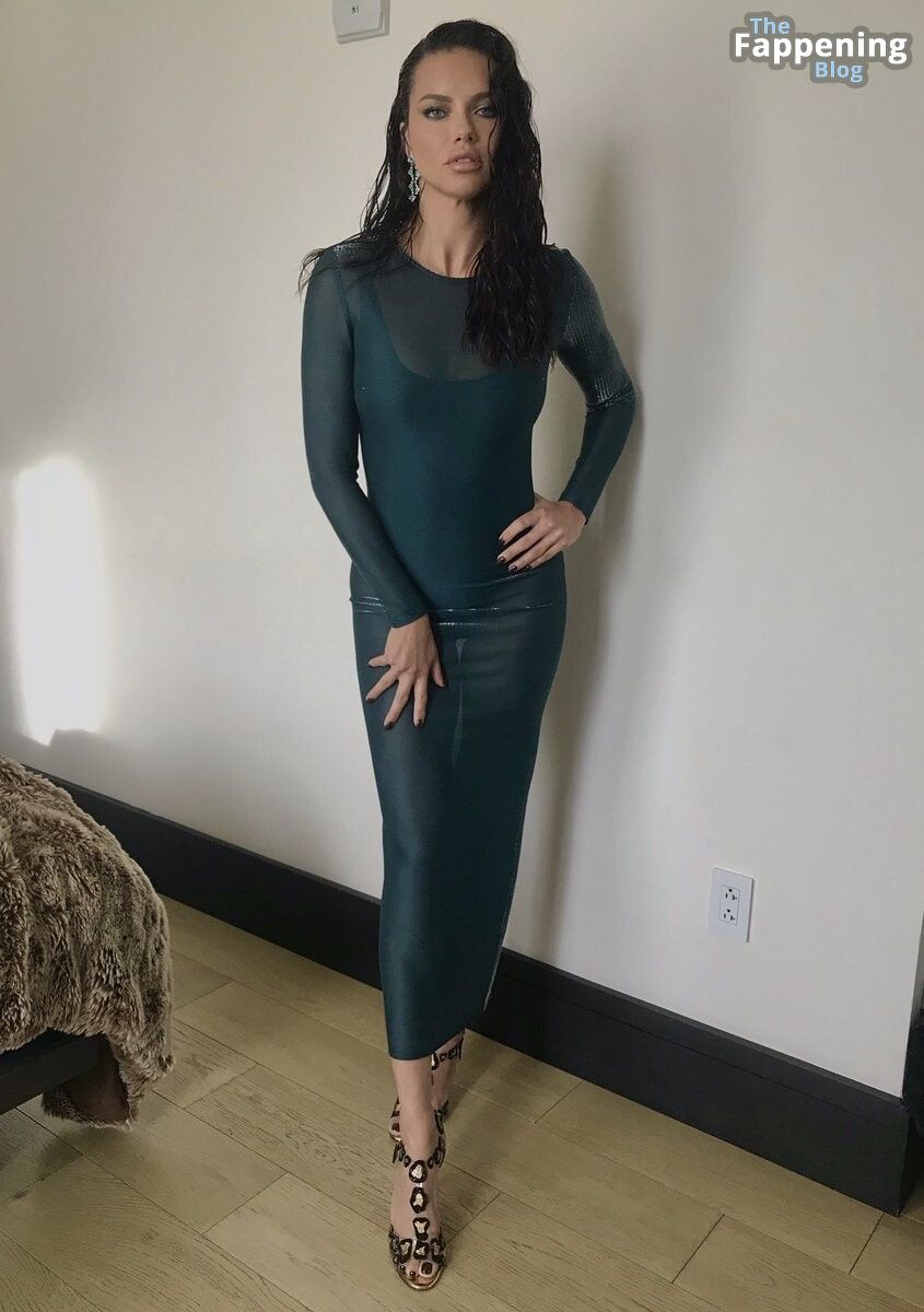 Ma il punto forte del suo look era l’abito “sirena” di Sally LaPointe, un favorito tra le star di Hollywood. L’abito, in una tonalità azzurro acqua della collezione 2020, era realizzato in un tessuto trasparente argento che abbracciava il corpo impeccabile di Adriana come una seconda pelle. Sotto, indossava un body verde mare. Per completare l’insieme, sfoggiava lunghi orecchini con smeraldi verdi e scarpe trasparenti con dettagli dorati. Il colore dell’abito accentuava perfettamente i suoi occhi, profondi e misteriosi come l’oceano.