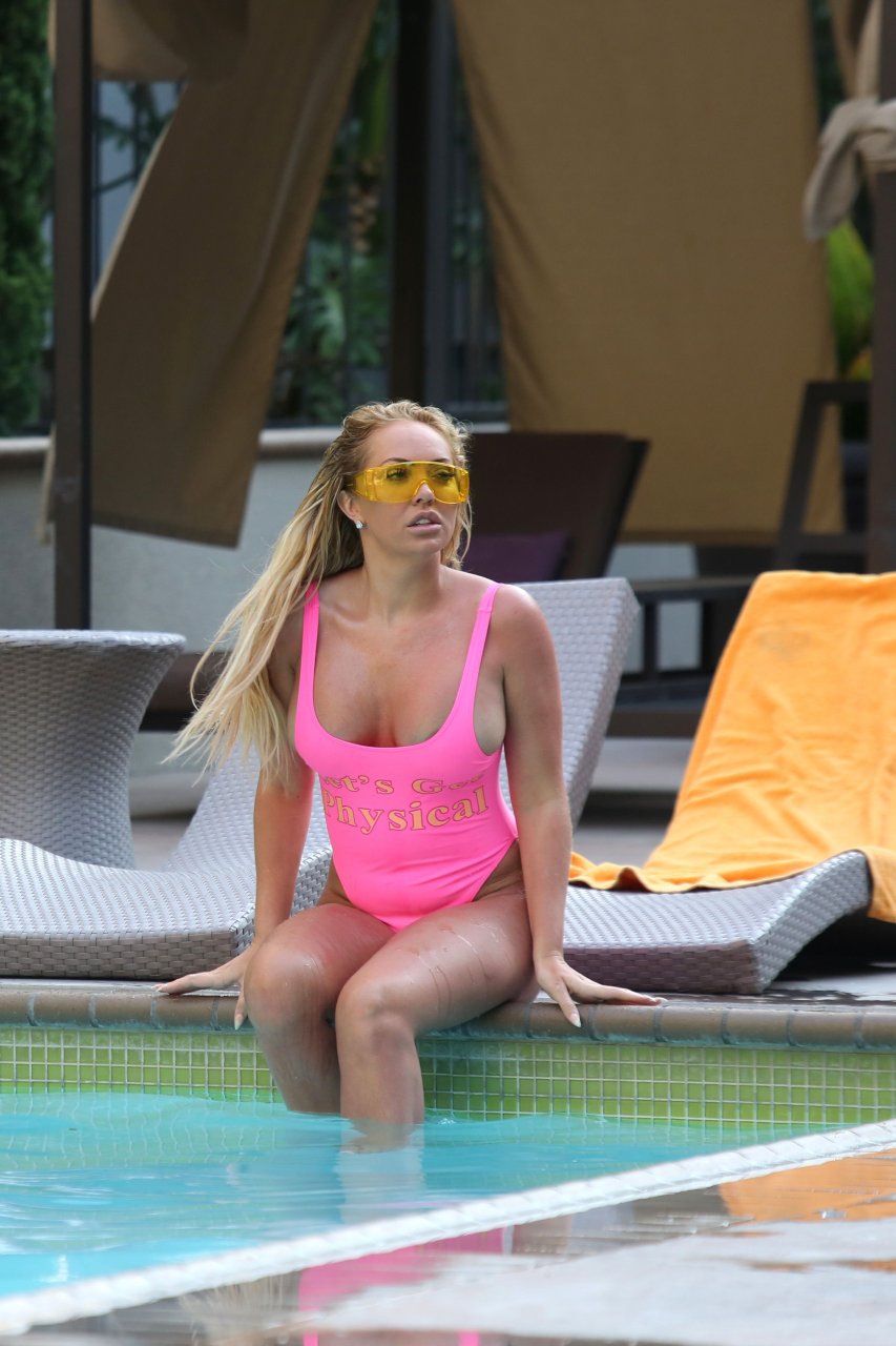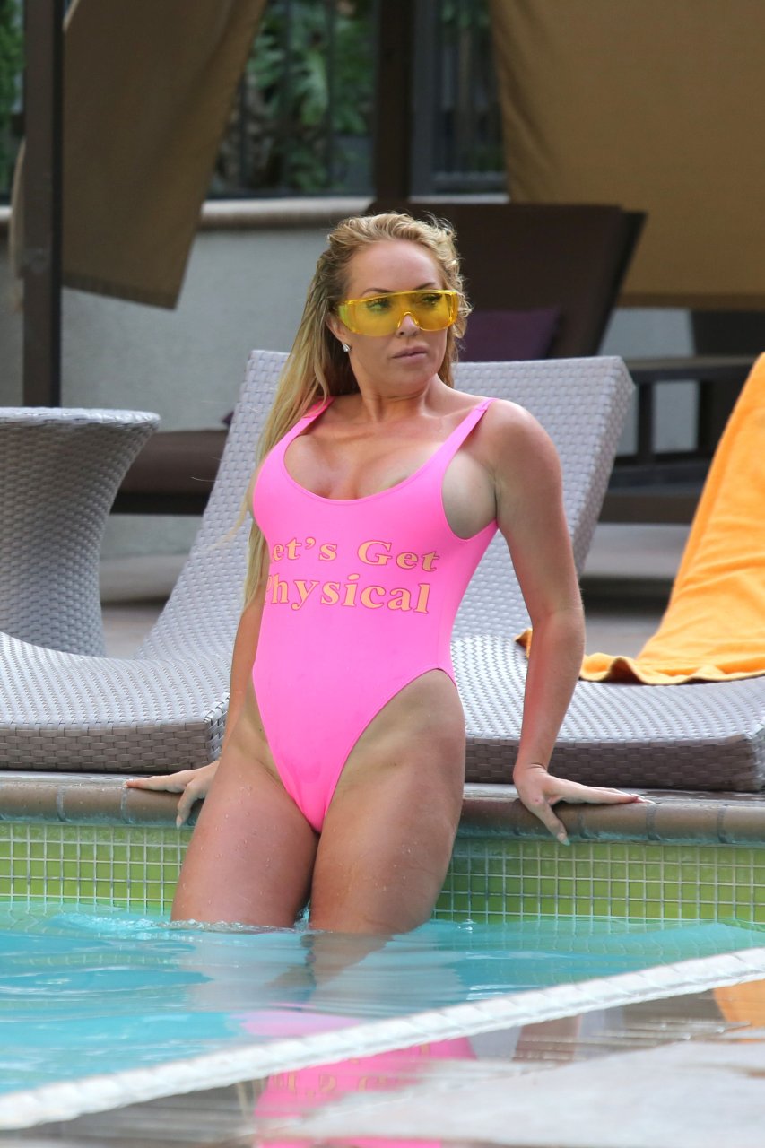 Aisleyne Horgan-Wallace mostra il suo seno e il suo sedere in un costume da bagno rosa a bordo piscina a Los Angeles, 30/06/2017. Aisleyne Horgan-Wallace è una modella, stilista, attrice britannica, columnist di riviste e personalità televisiva e mediatica. Età – 38.