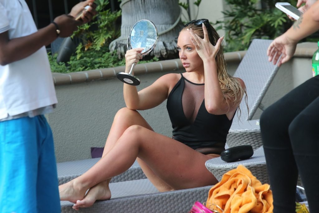Aisleyne Horgan-Wallace sfrigola al sole a bordo piscina a Los Angeles, 30/06/2017. Aisleyne Horgan-Wallace è una personalità della tv reality, modella, stilista, attrice, columnist di riviste. Età: 38.