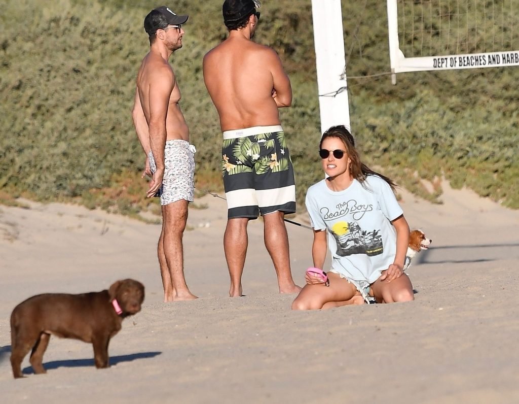 La bomba brasiliana e sua figlia Anja sono state viste giocare con i loro cani vicino all’acqua prima di iniziare a giocare a pallavolo con gli amici.