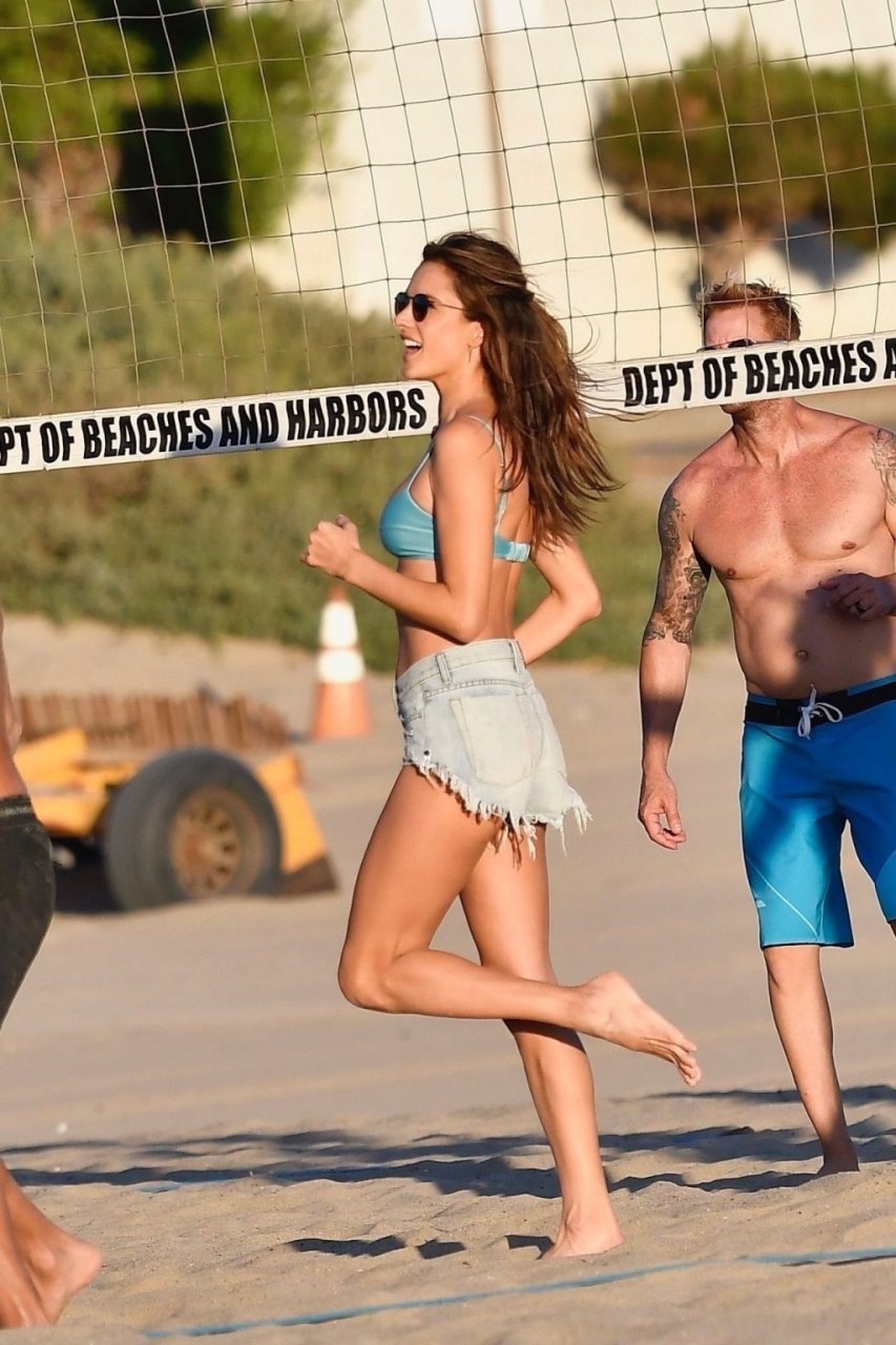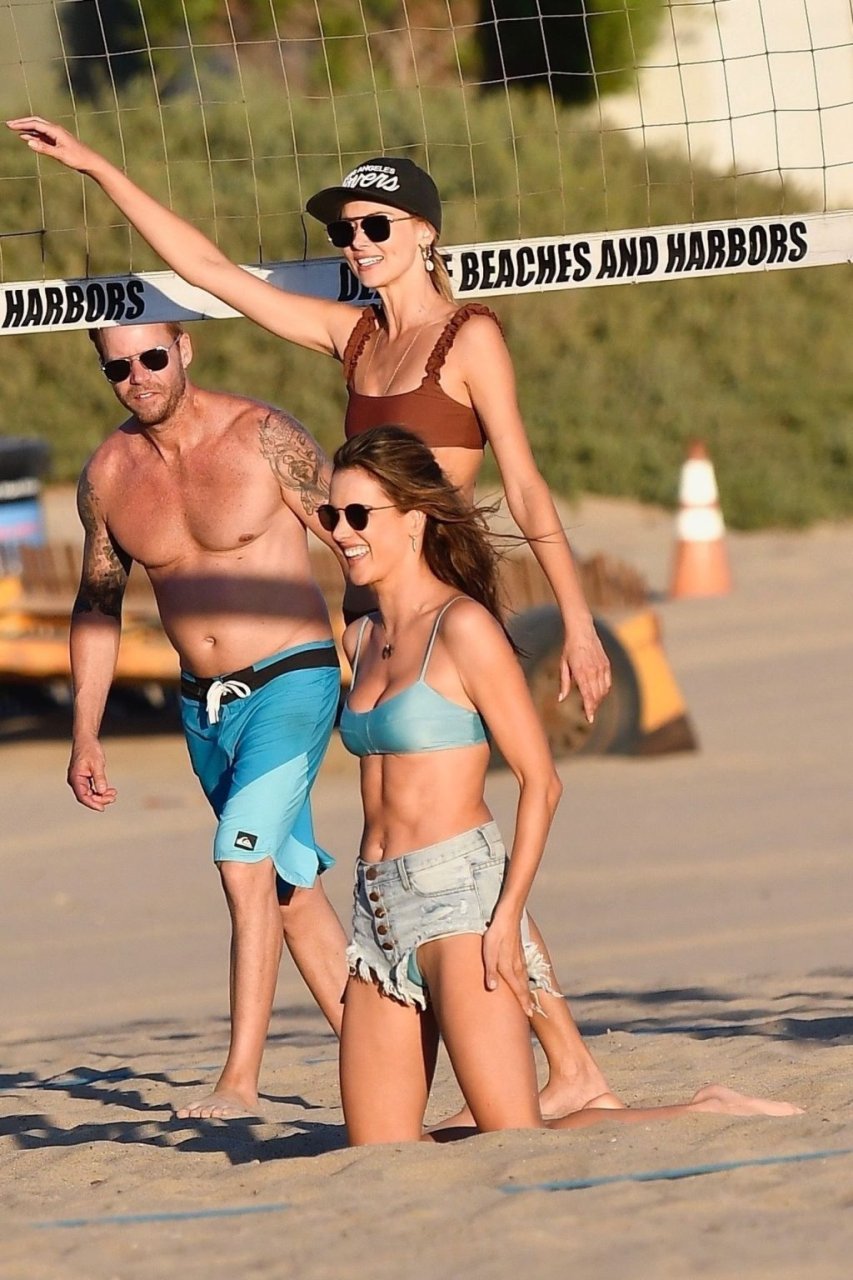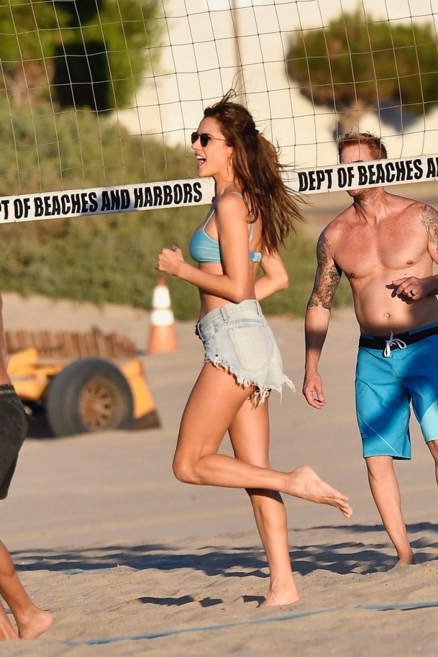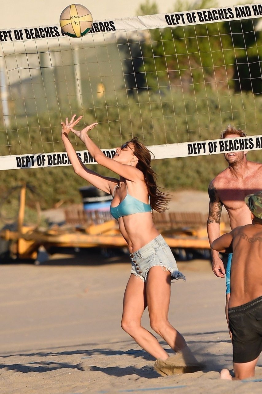 La modella brasiliana Alessandra Ambrosio trascorre la sua domenica godendosi la brezza fresca e mantenendosi attiva con la sua famiglia e i suoi amici giocando a pallavolo sulla spiaggia di Santa Monica, 20/10/2019.