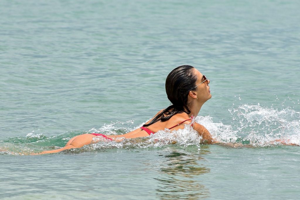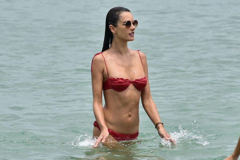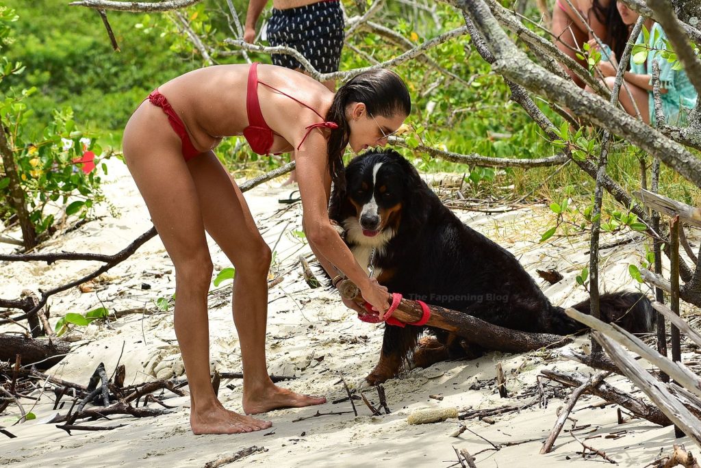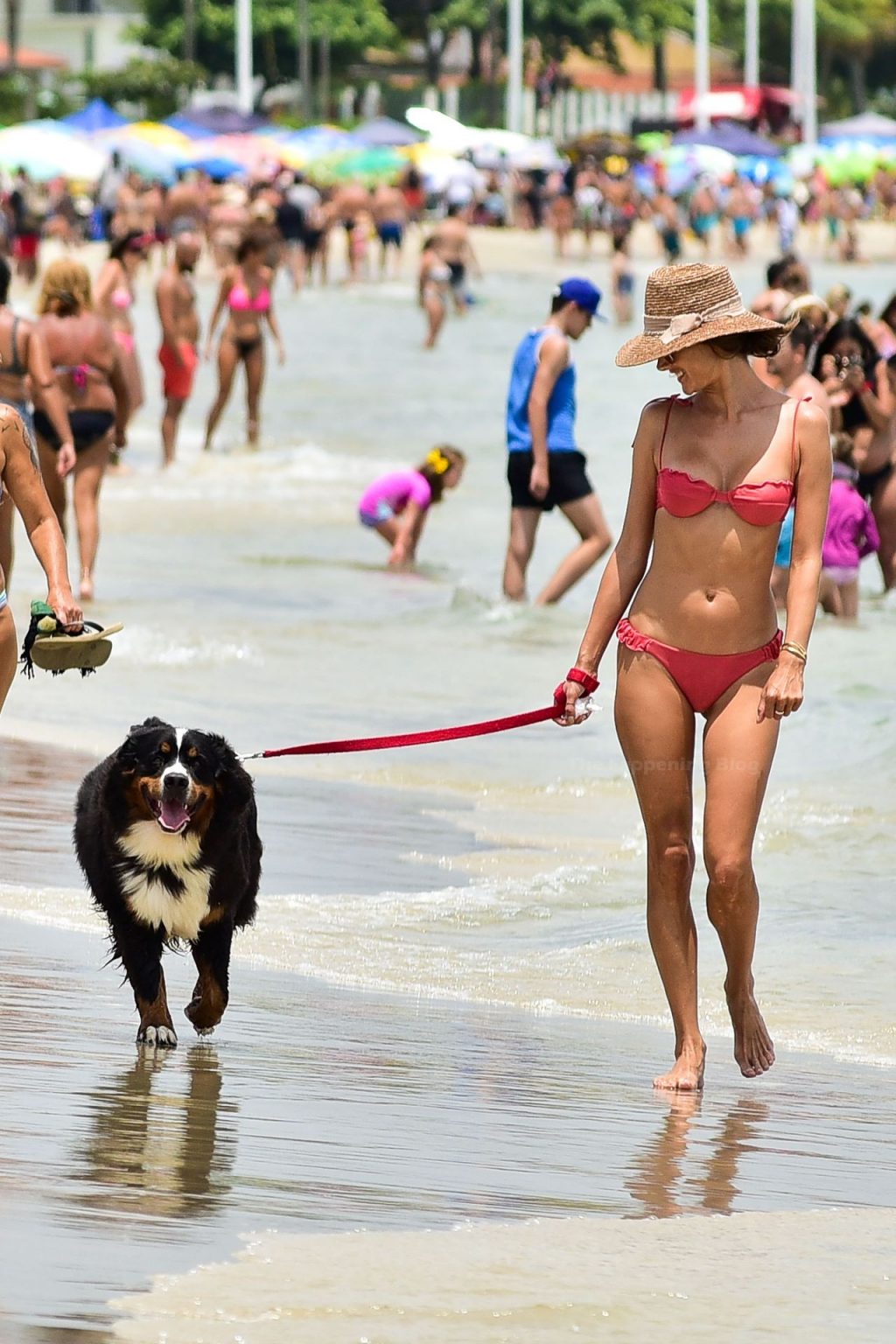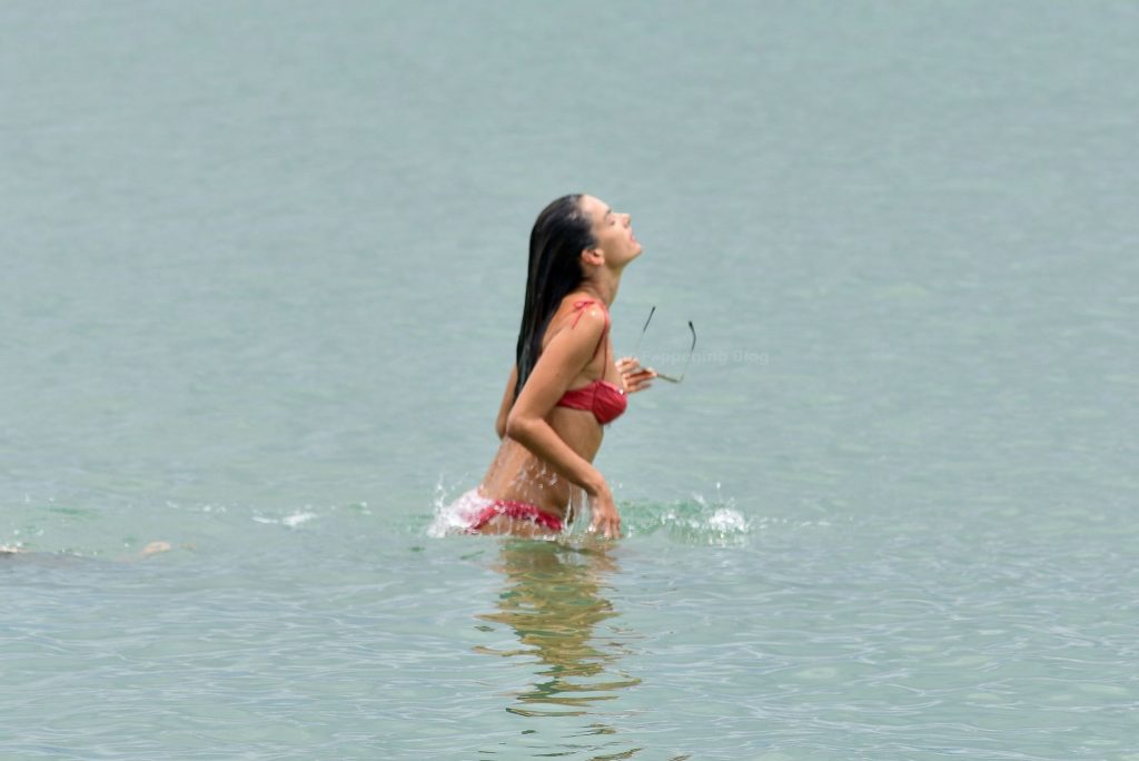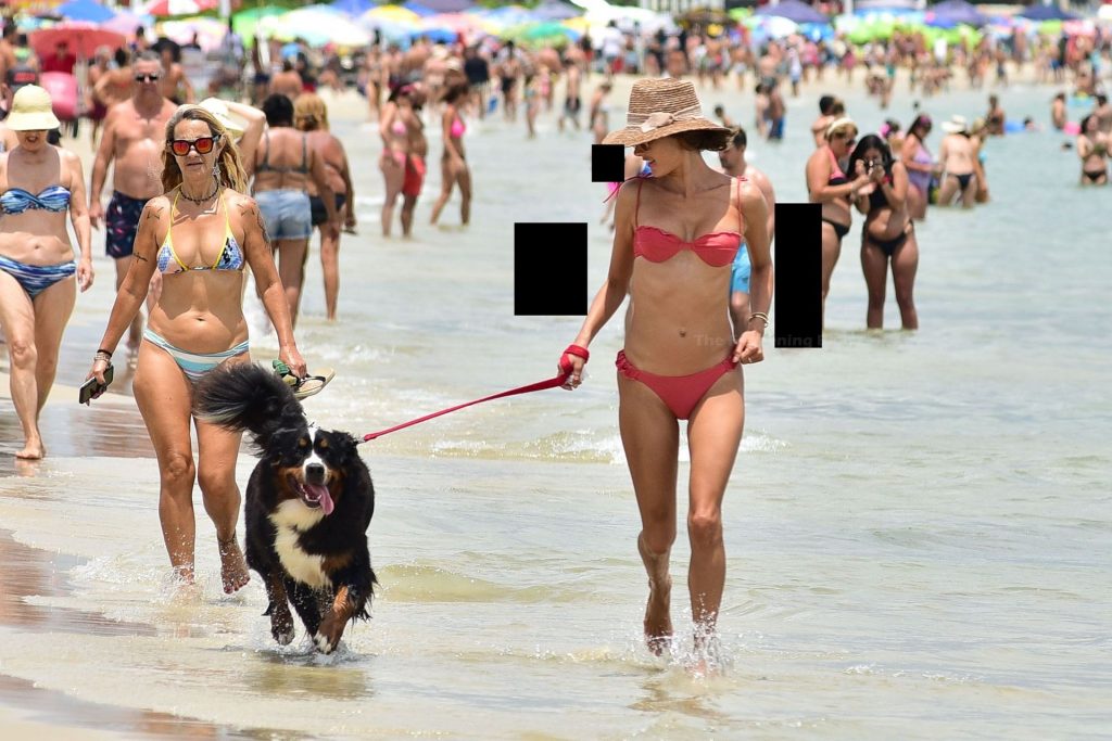 La splendida 39enne di Victoria’s Secret ha fatto una passeggiata lungo le sabbie incontaminate con l’amica Gisele e il suo adorabile cane Tom, rinfrescandosi con un tuffo nell’oceano. Ha attirato l’attenzione con un costume da bagno rosso succinto durante la calda giornata in spiaggia.