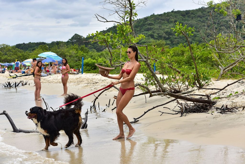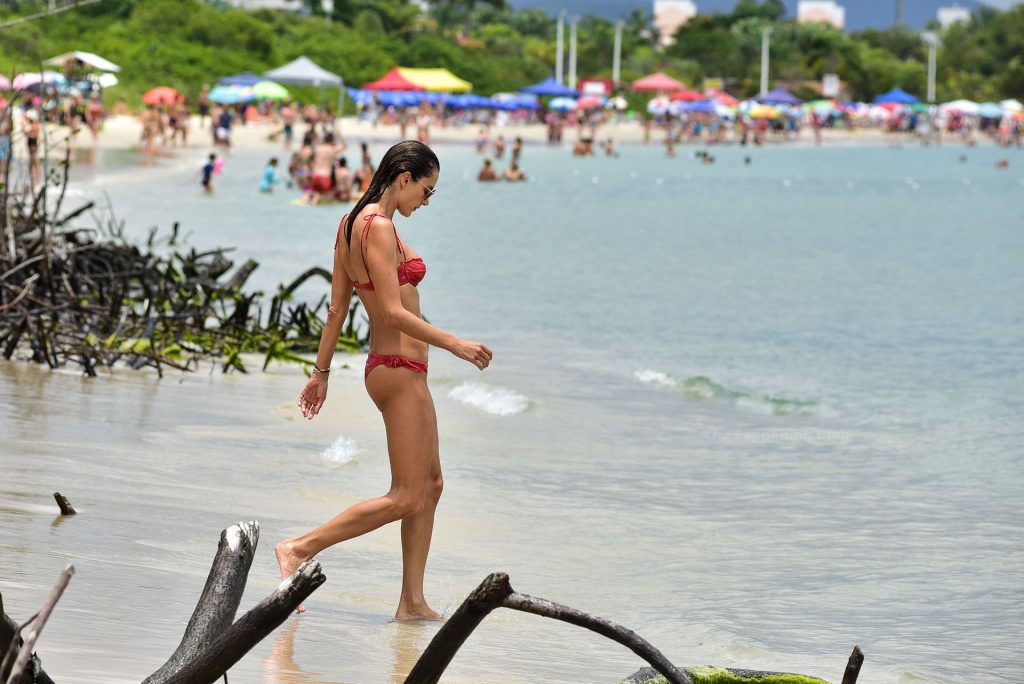 La supermodella Alessandra Ambrosio sfila con il suo corpo impeccabile in bikini sulla spiaggia nella sua città natale Florianopolis, Brasile, 17/11/2020.