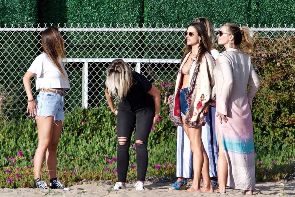 Alessandra Ambrosio si diverte con gli amici sulla spiaggia di Malibu, CA, 07/04/2019. La modella si allontana poi per godersi un po’ di PDA con il suo fidanzato Nicolo Oddi.