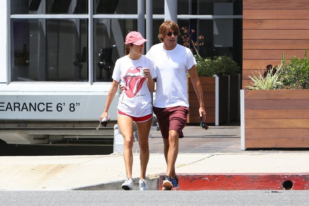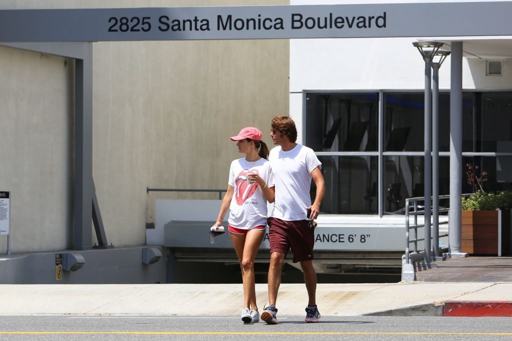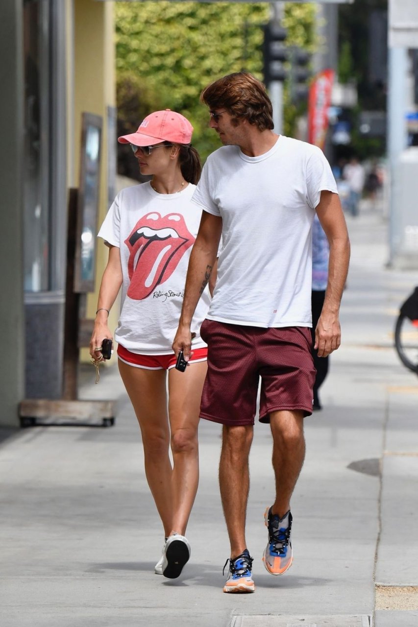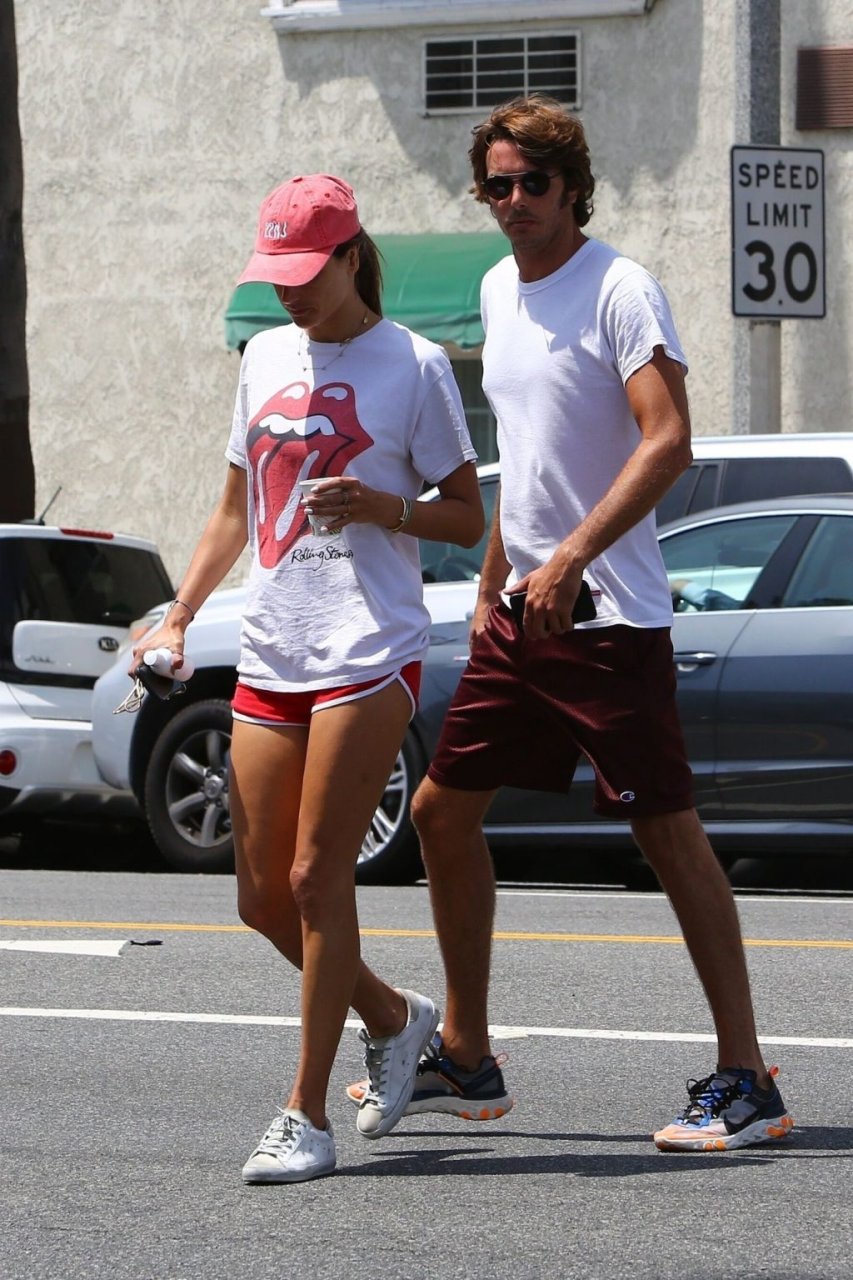 La supermodella brasiliana Alessandra Ambrosio e il suo compagno Nicolo Oddi si dirigono a pranzo a Santa Monica da Tocaya Organica, 22/08/2019. Alessandra indossa una maglietta dei Rolling Stones con pantaloncini corti rossi e un cappello rosso per il suo pranzo.