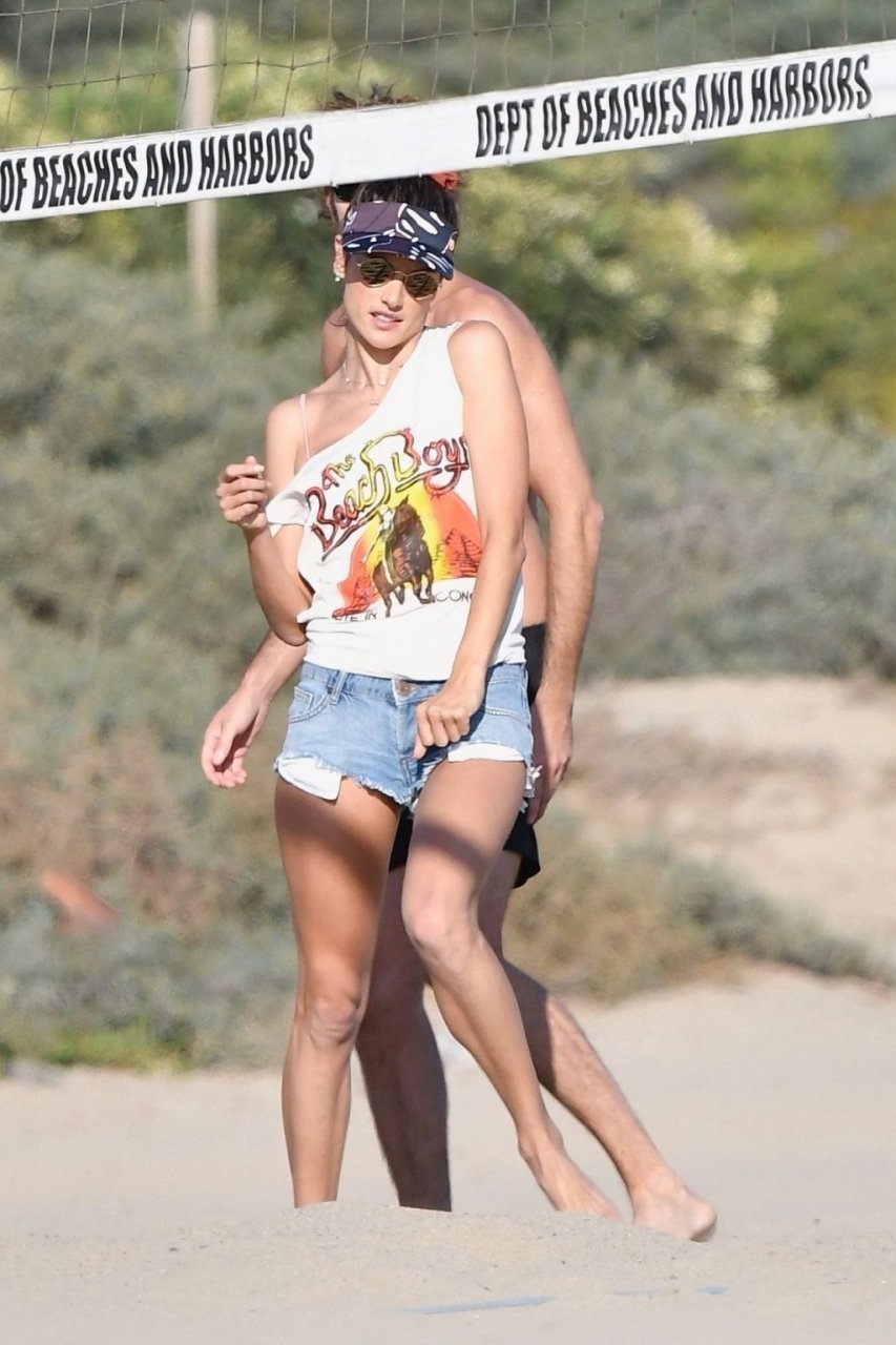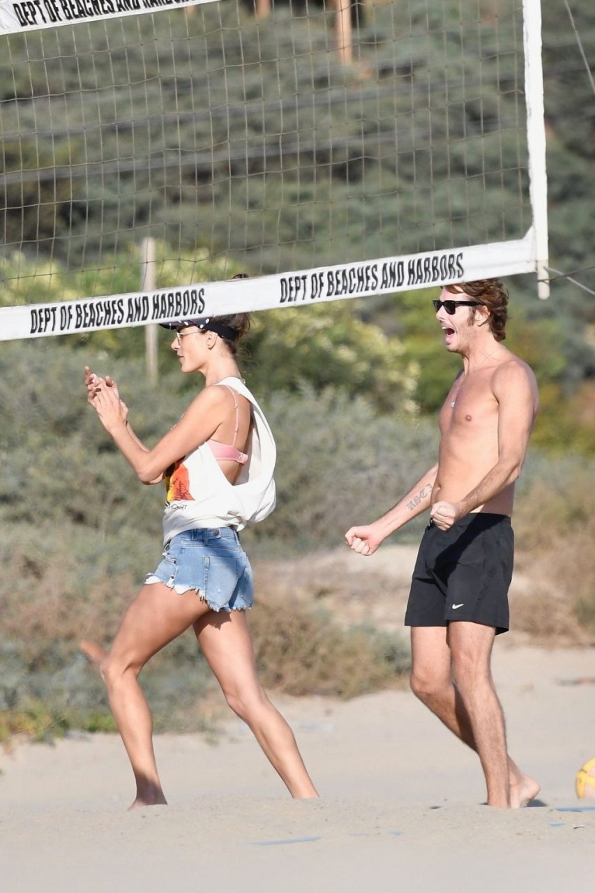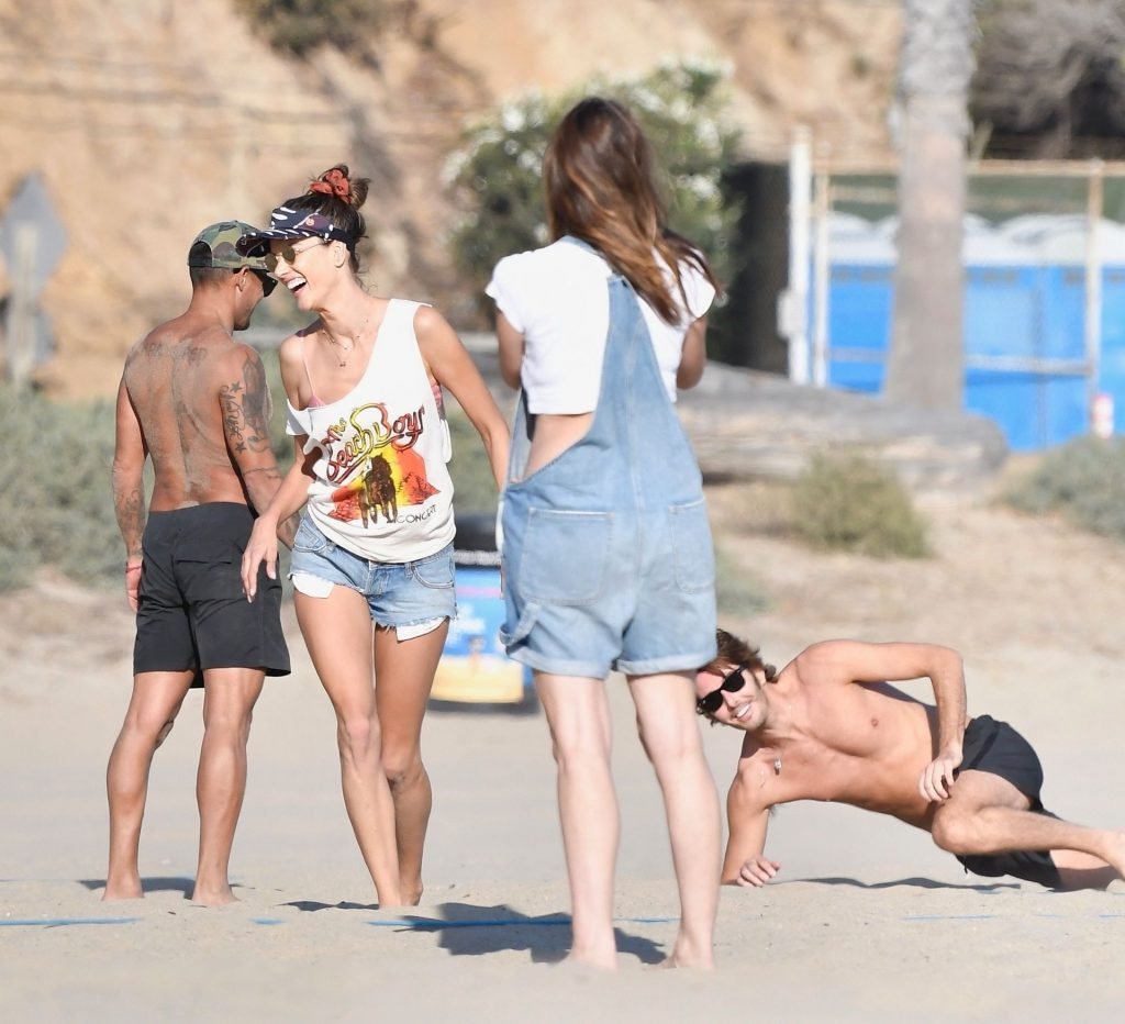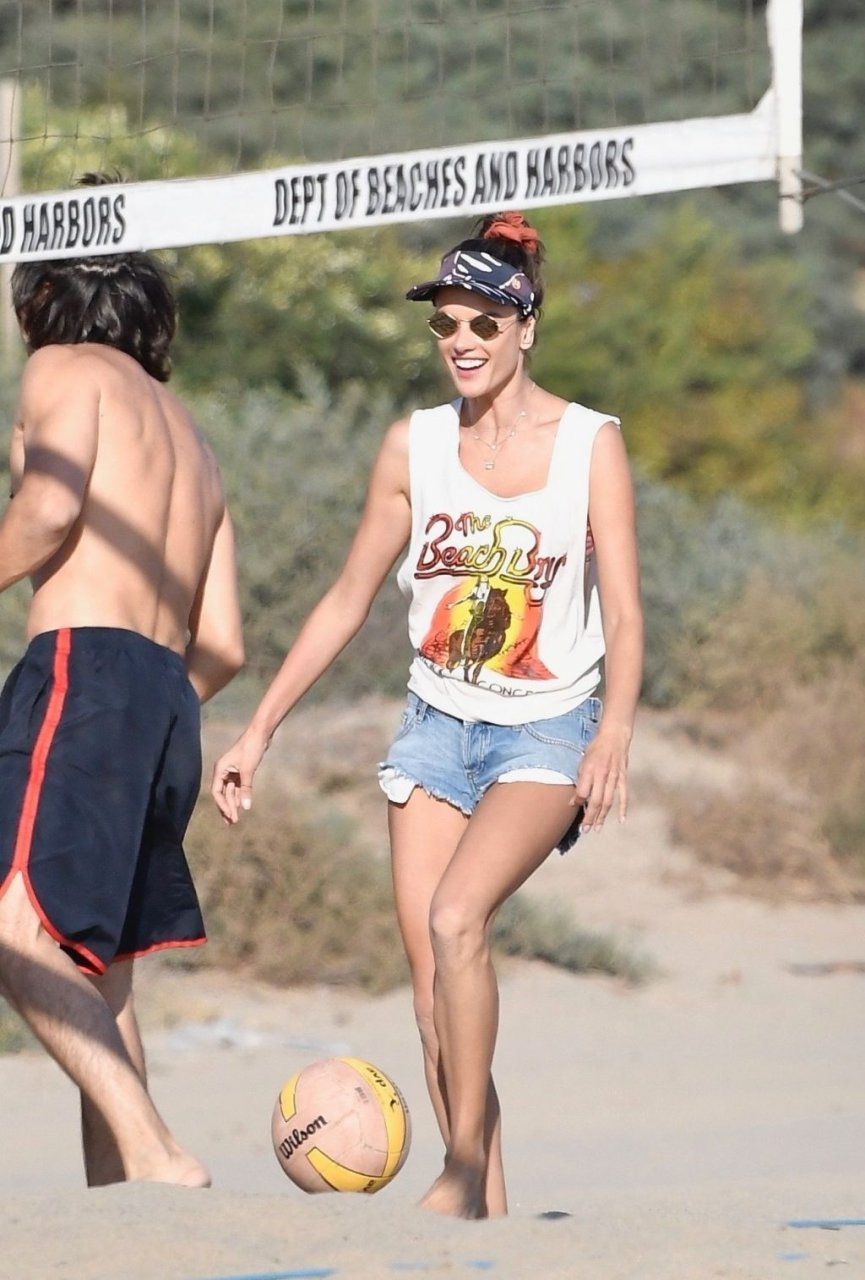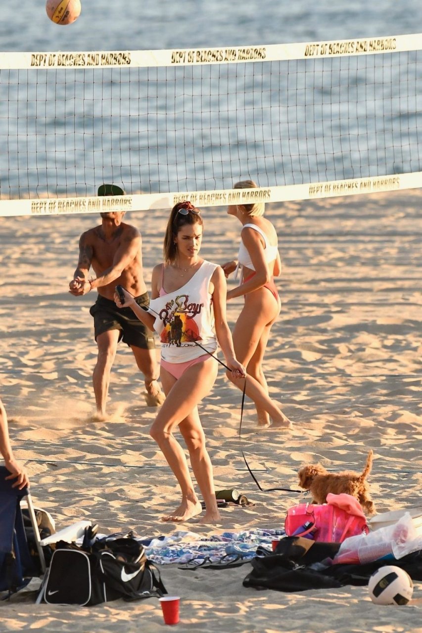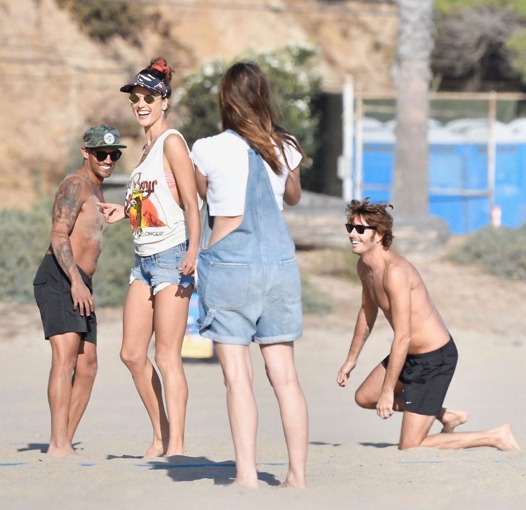 Alessandra Ambrosio si gode un bellissimo pomeriggio di sabato giocando a pallavolo sulla spiaggia di Santa Monica con i suoi figli, il fidanzato Nicolo Oddi e gli amici, 13/10/2019. La bomba brasiliana di 38 anni sembrava divertirsi molto con un enorme sorriso sul volto.