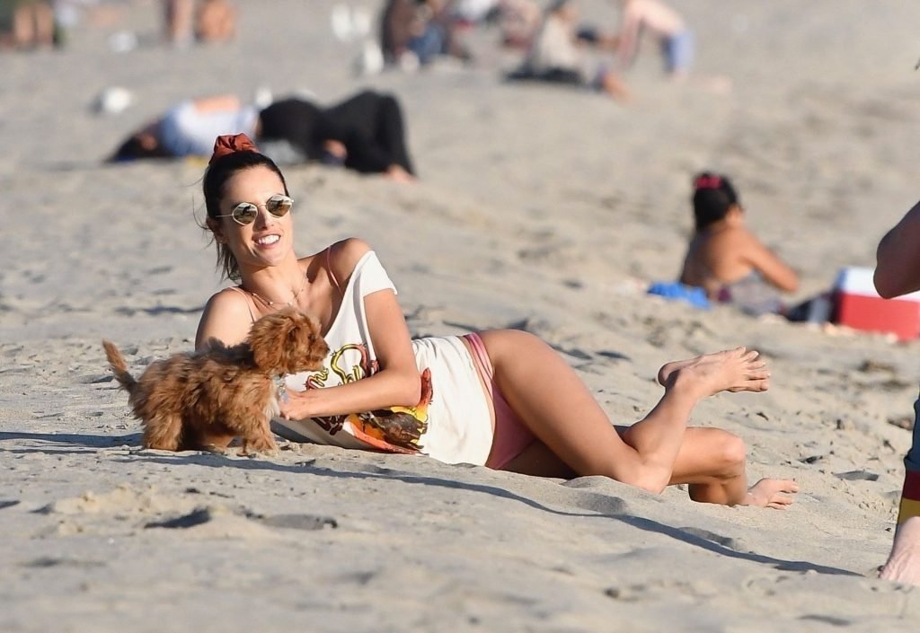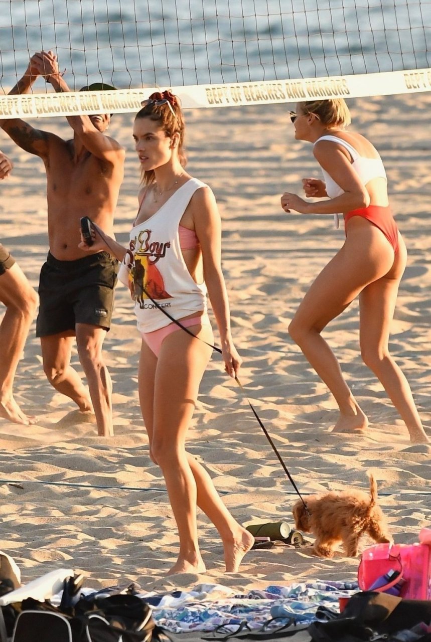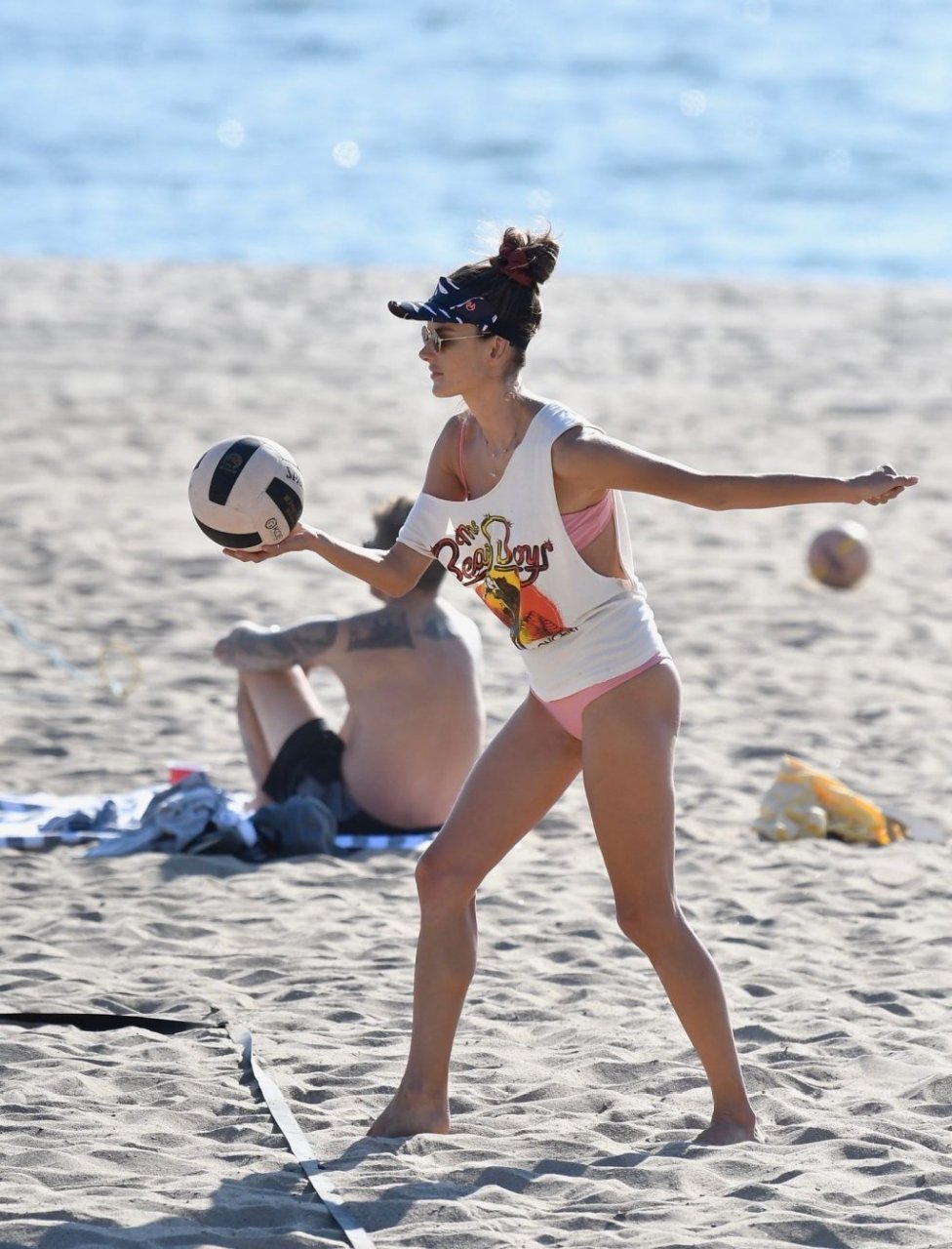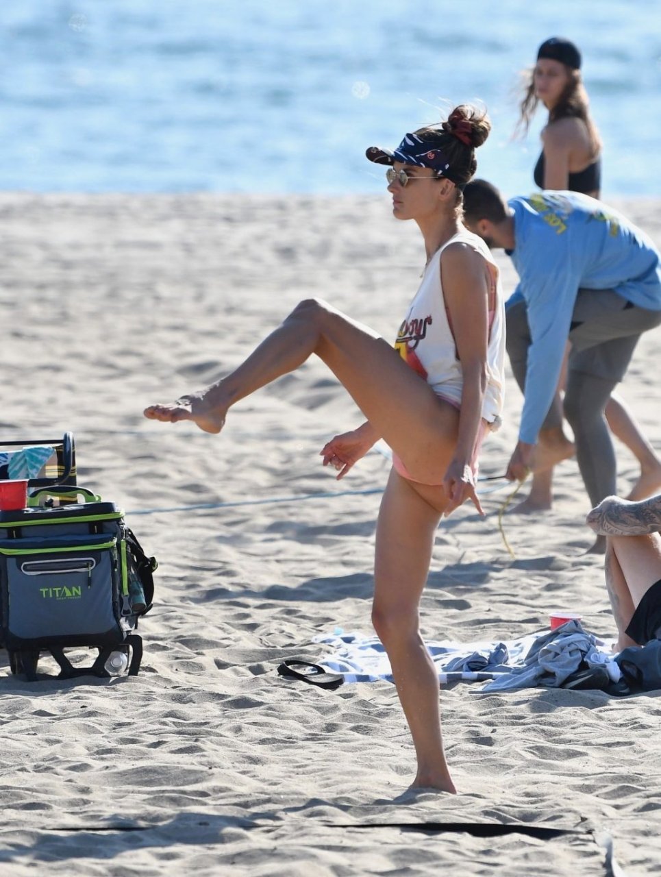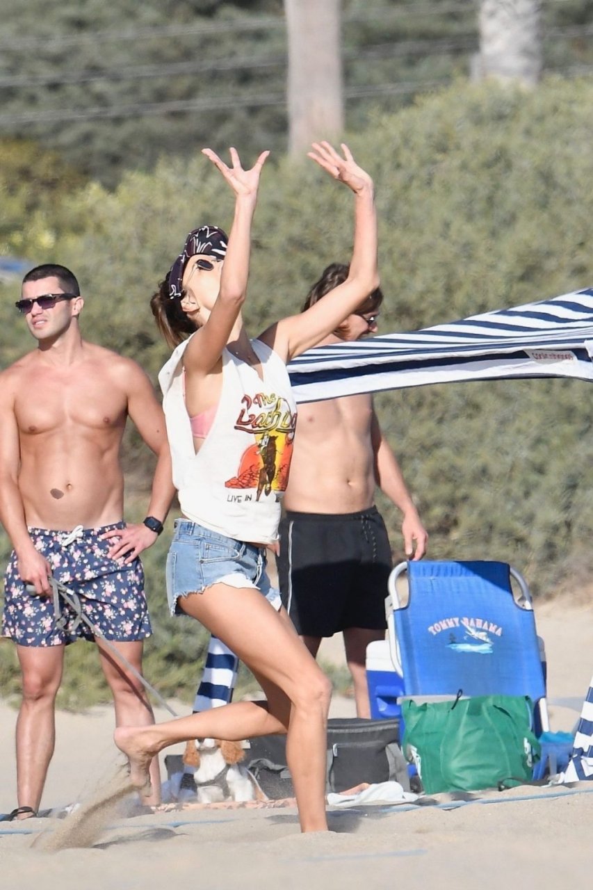 Alessandra Ambrosio si gode un bellissimo pomeriggio di sabato giocando a pallavolo sulla spiaggia di Santa Monica con i suoi figli, il fidanzato Nicolo Oddi e gli amici, 13/10/2019. La bomba brasiliana di 38 anni sembrava divertirsi molto con un enorme sorriso sul volto.