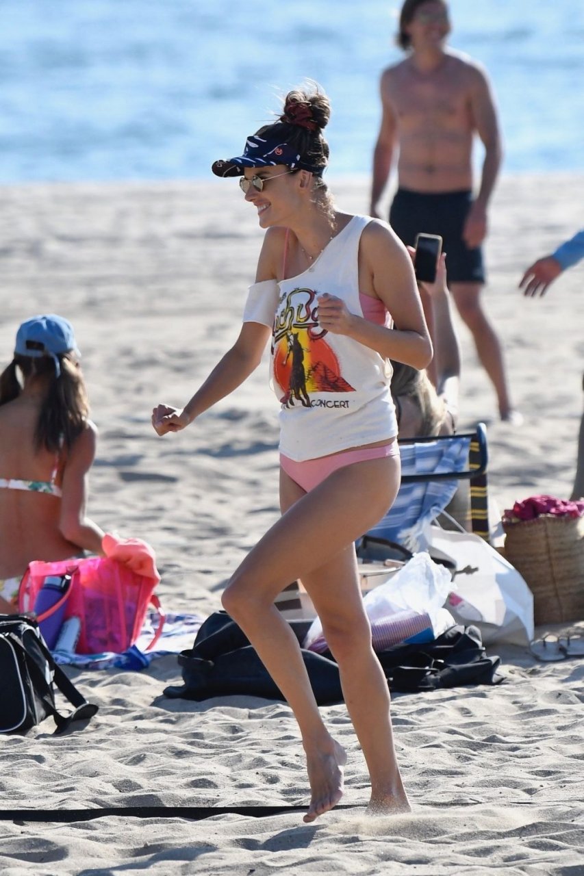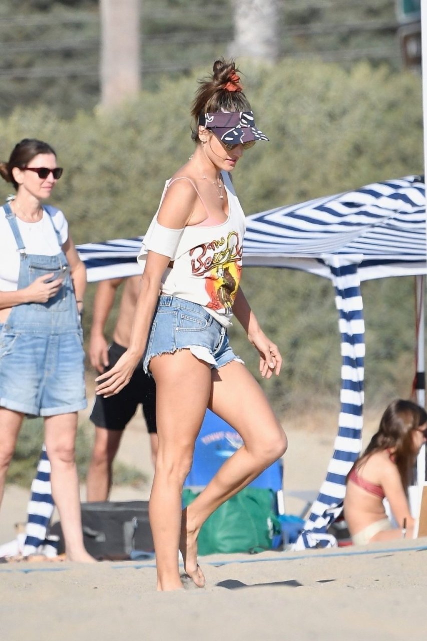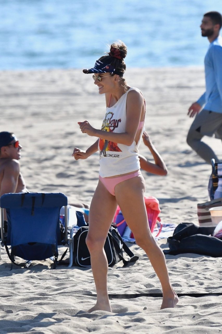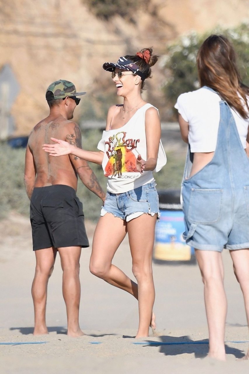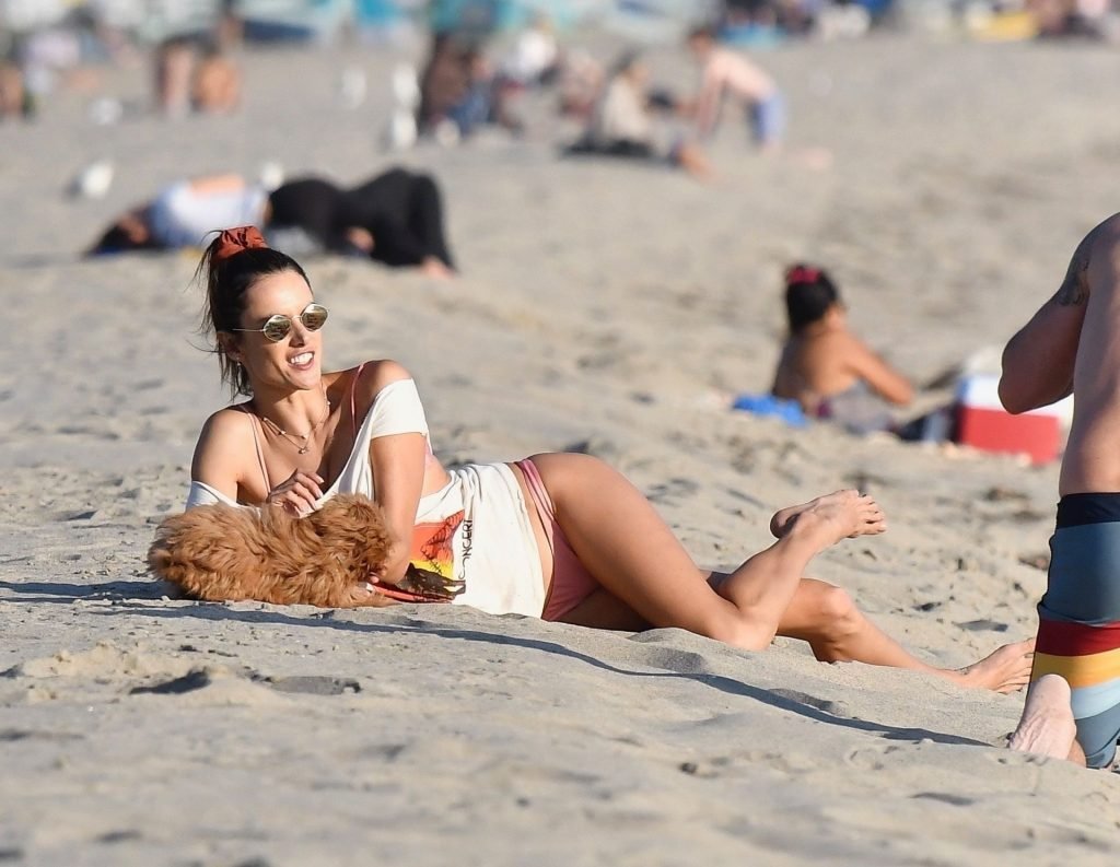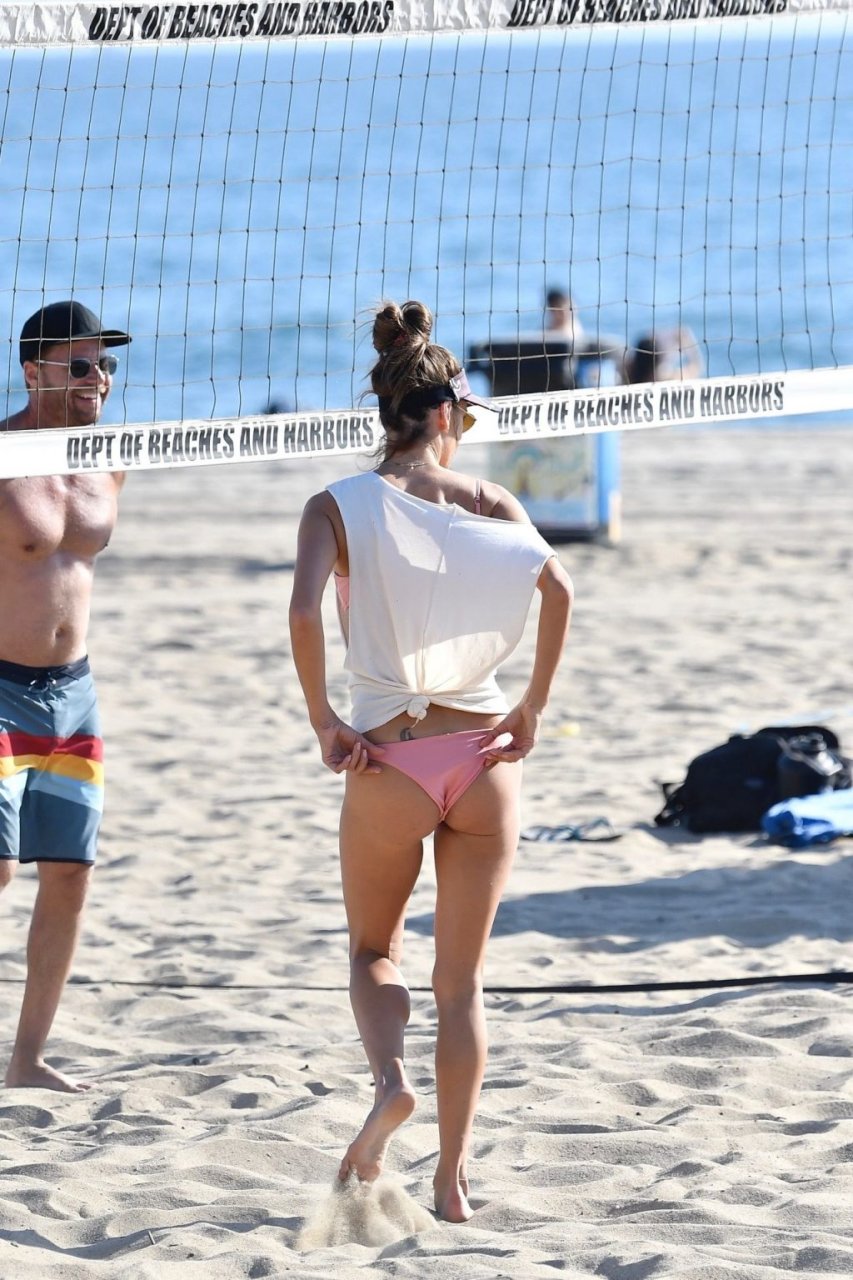 Alessandra Ambrosio si gode un bellissimo pomeriggio di sabato giocando a pallavolo sulla spiaggia di Santa Monica con i suoi figli, il fidanzato Nicolo Oddi e gli amici, 13/10/2019. La bomba brasiliana di 38 anni sembrava divertirsi molto con un enorme sorriso sul volto.