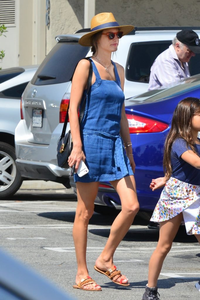 Alessandra Ambrosio è stata vista con un vestito blu senza reggiseno a Santa Monica, 17/06/2017. Alessandra Ambrosio è una supermodella brasiliana, attrice (Daddy’s Home 2 (in post-produzione) – nel ruolo di Karen, moglie di Dusty). Età – 36.