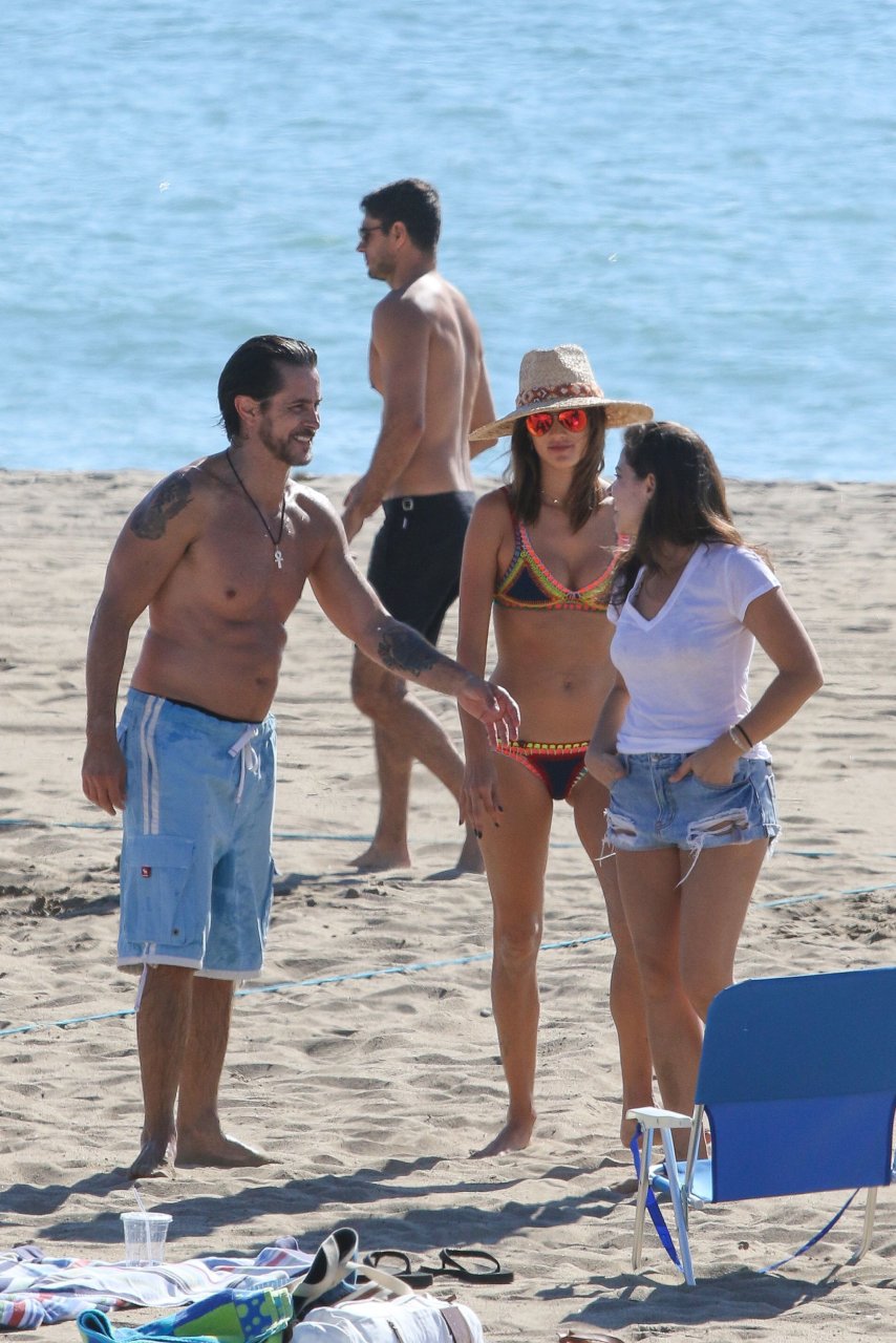 Alessandra Ambrosio indossa un bikini minuscolo su una spiaggia in California, 23/10/2016. Mamma sexy! Alessandra Ambrosio è una modella brasiliana. Età: 35 (11 aprile 1981). Altezza 177 cm.