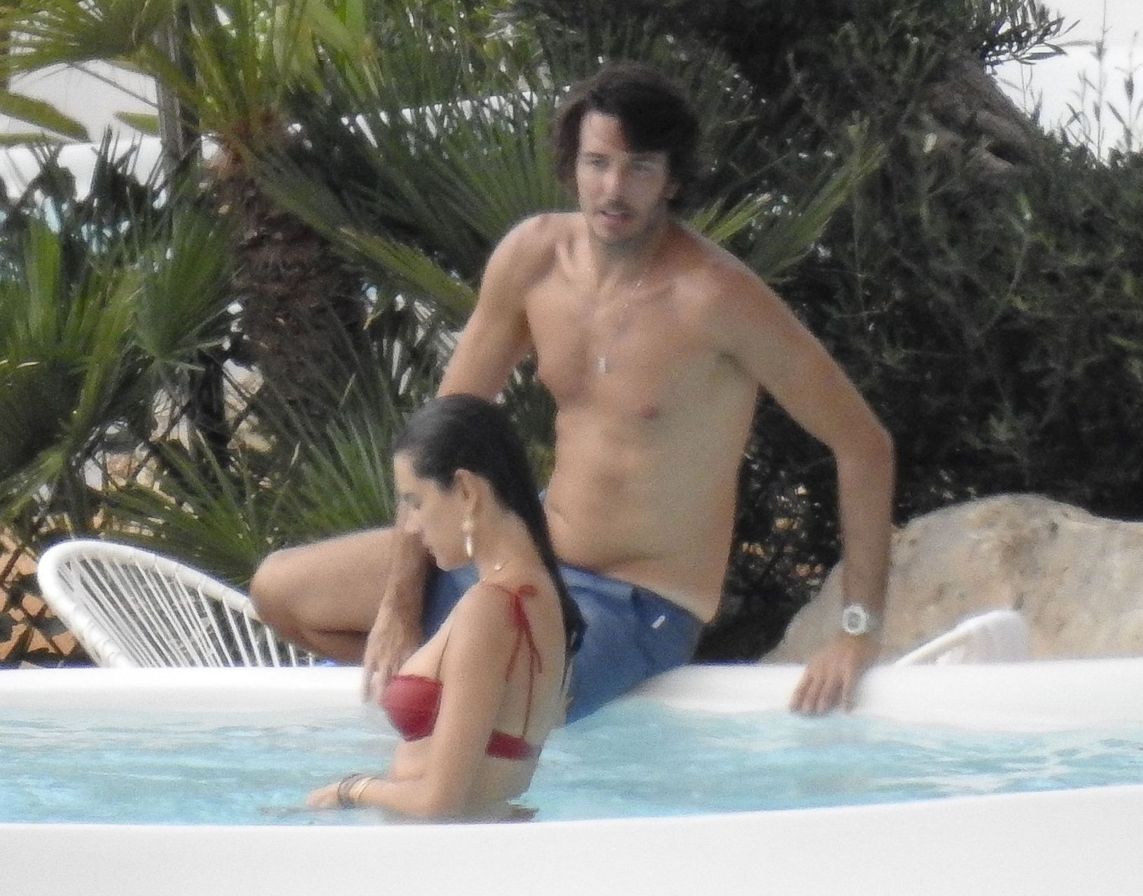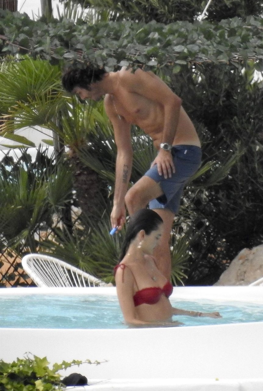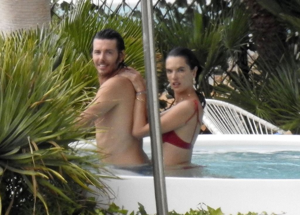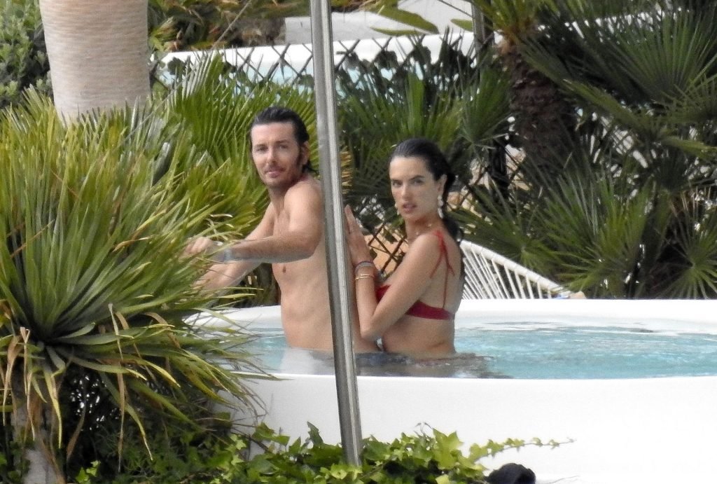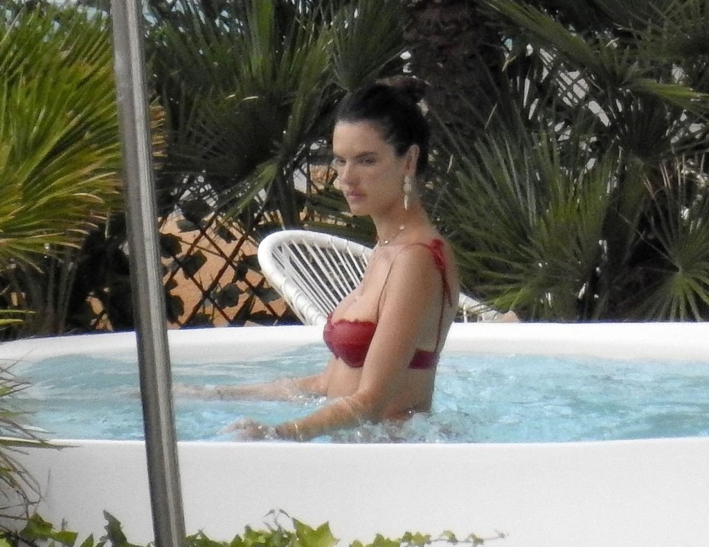 Indossando il suo sexy bikini rosso, la supermodella brasiliana Alessandra Ambrosio appare innamorata e rilassata con il suo fidanzato italiano Nicolo Oddi mentre la coppia si mostra affettuosa a bordo piscina durante le loro vacanze a Ibiza, 07/08/2019.