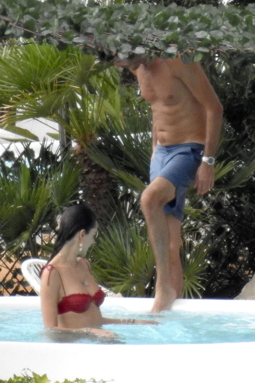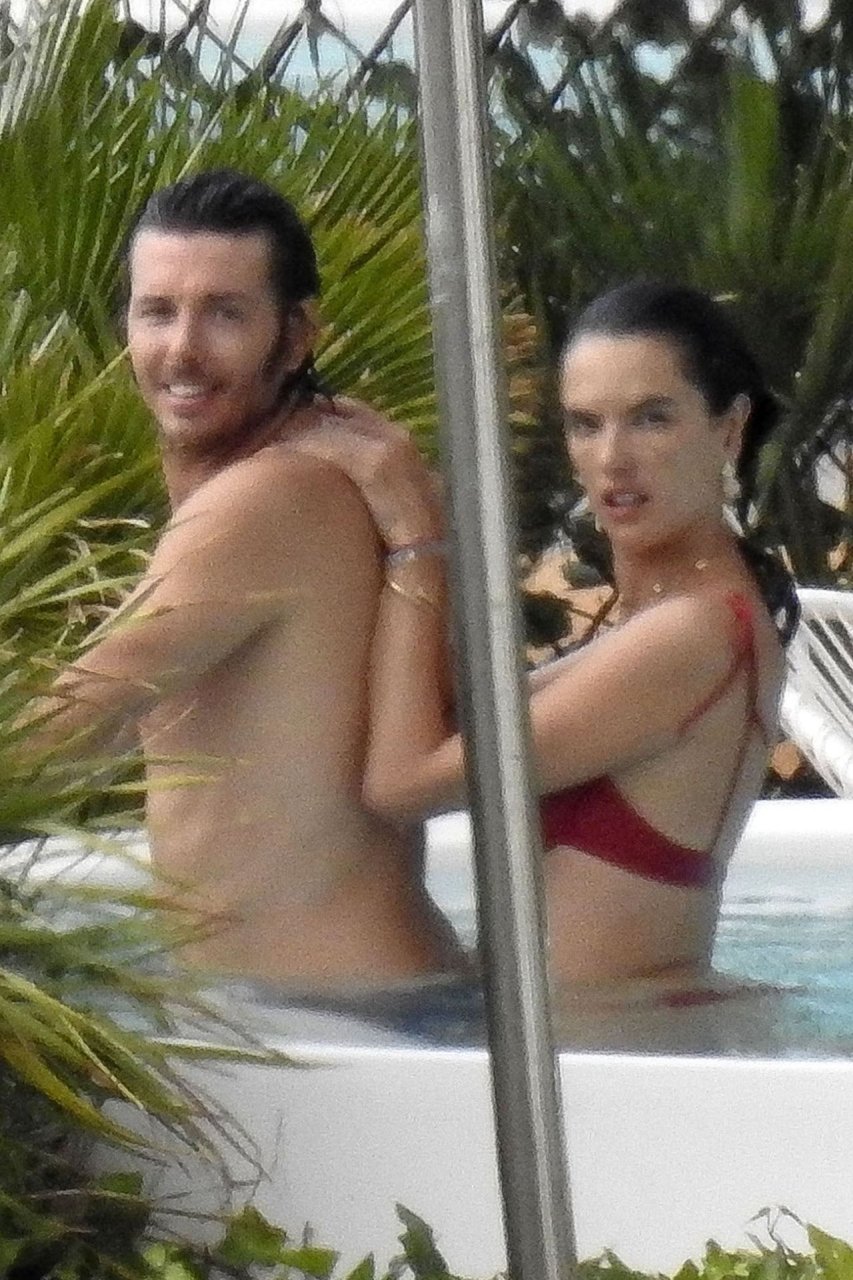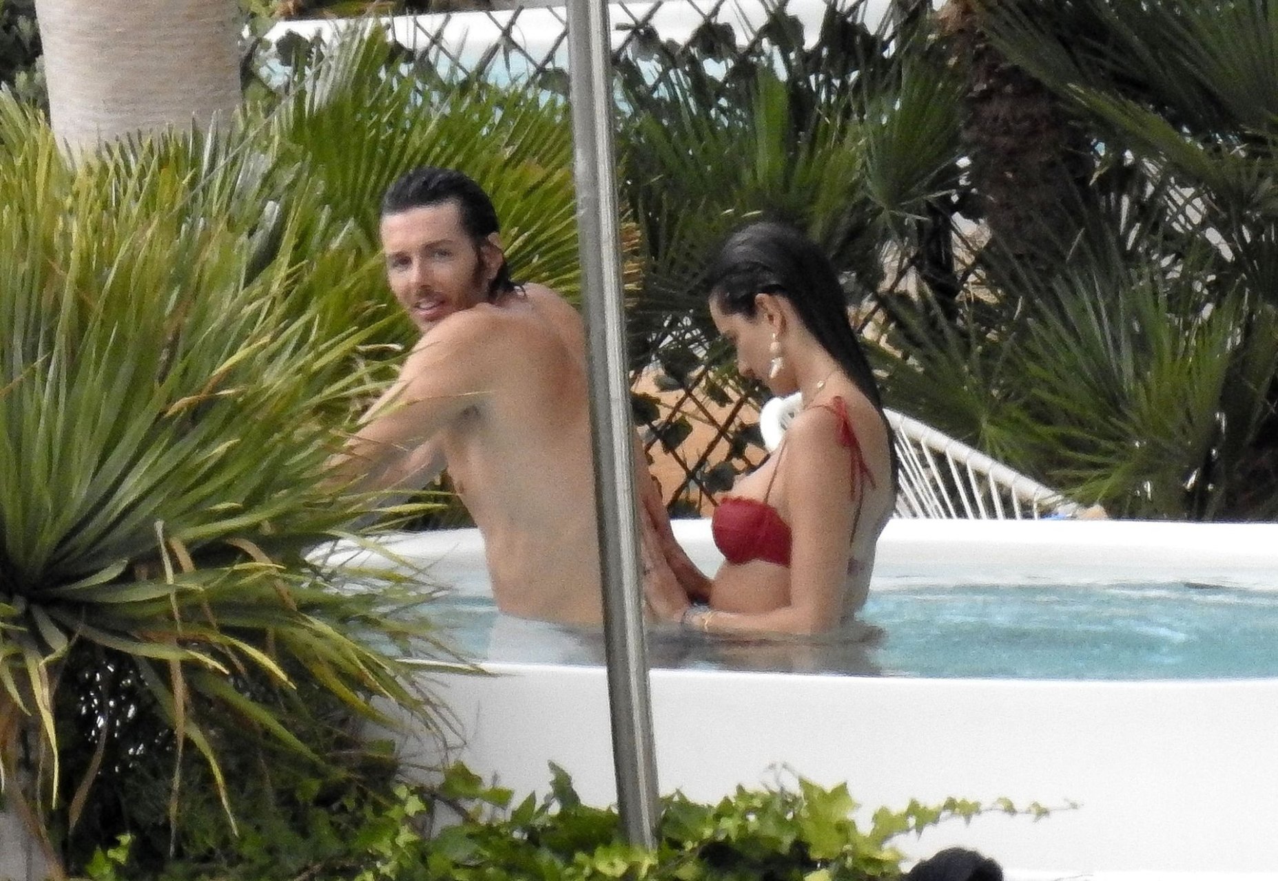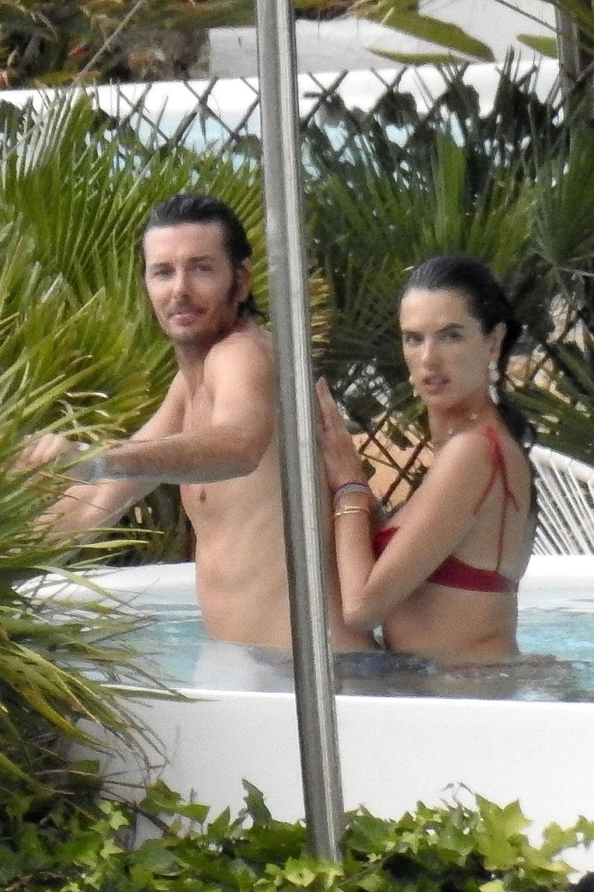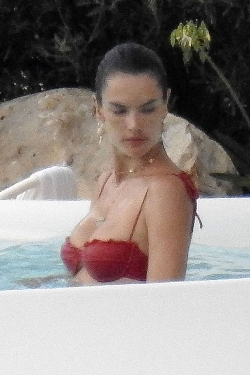 Indossando il suo sexy bikini rosso, la supermodella brasiliana Alessandra Ambrosio appare innamorata e rilassata con il suo fidanzato italiano Nicolo Oddi mentre la coppia si mostra affettuosa a bordo piscina durante le loro vacanze a Ibiza, 07/08/2019.