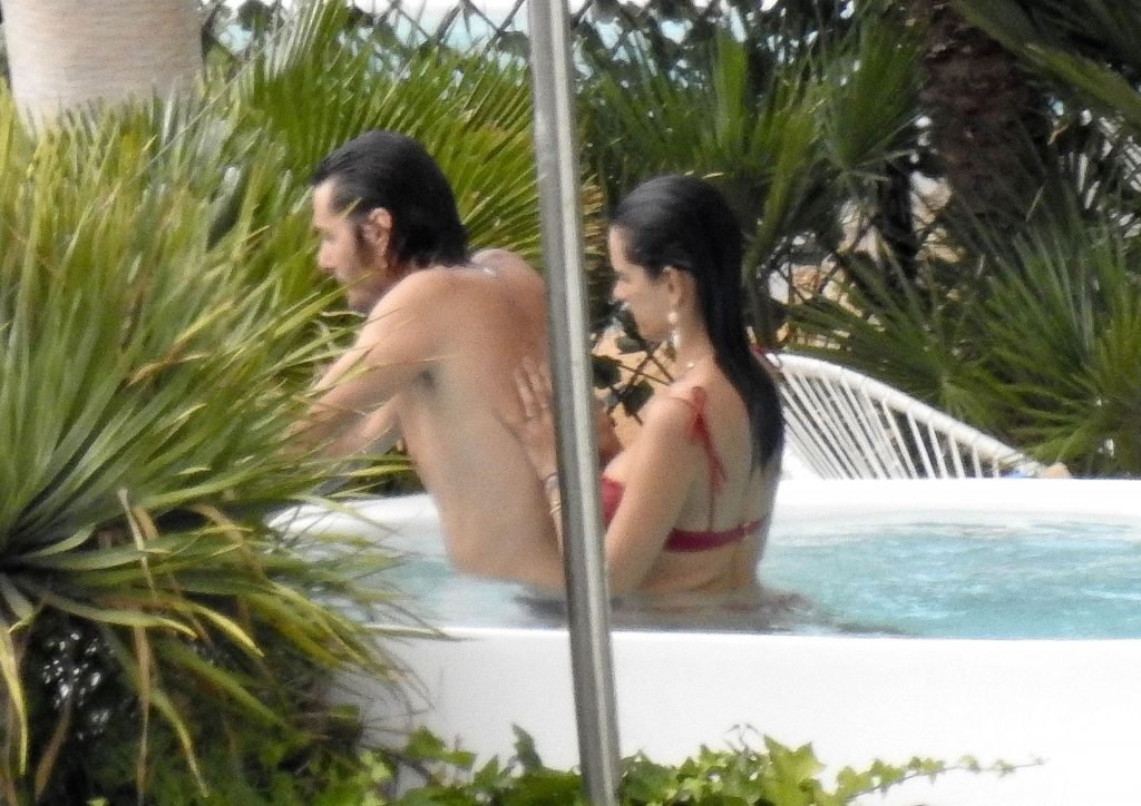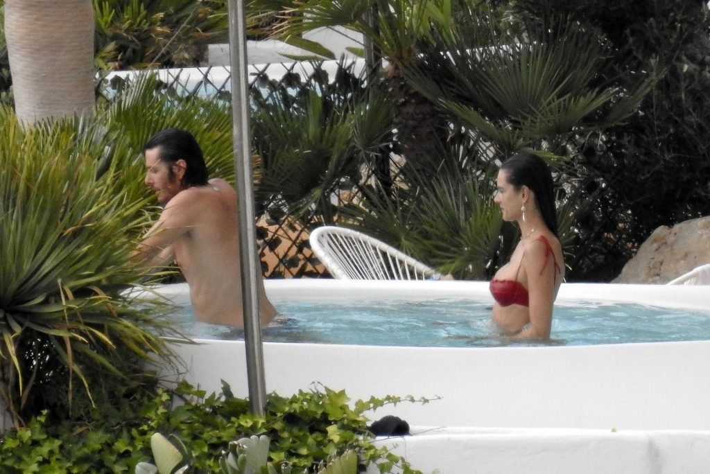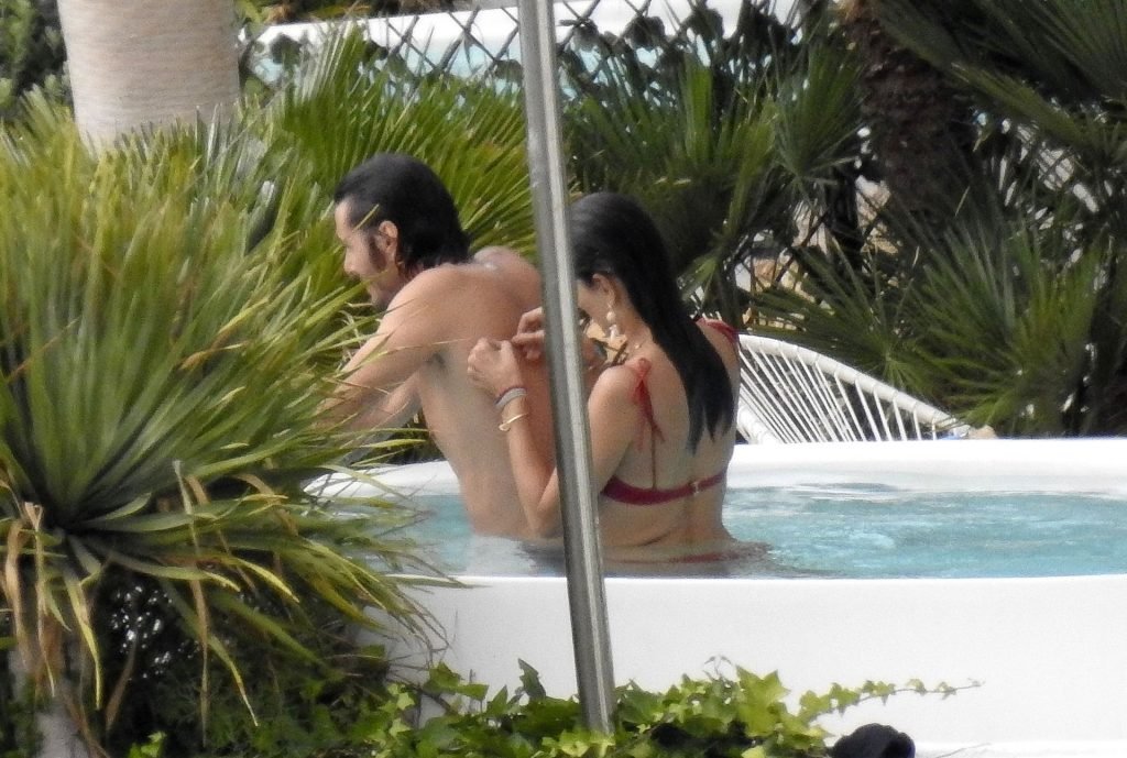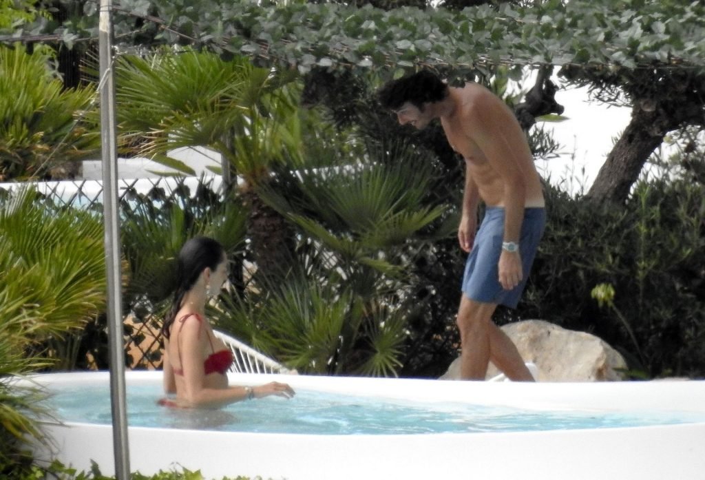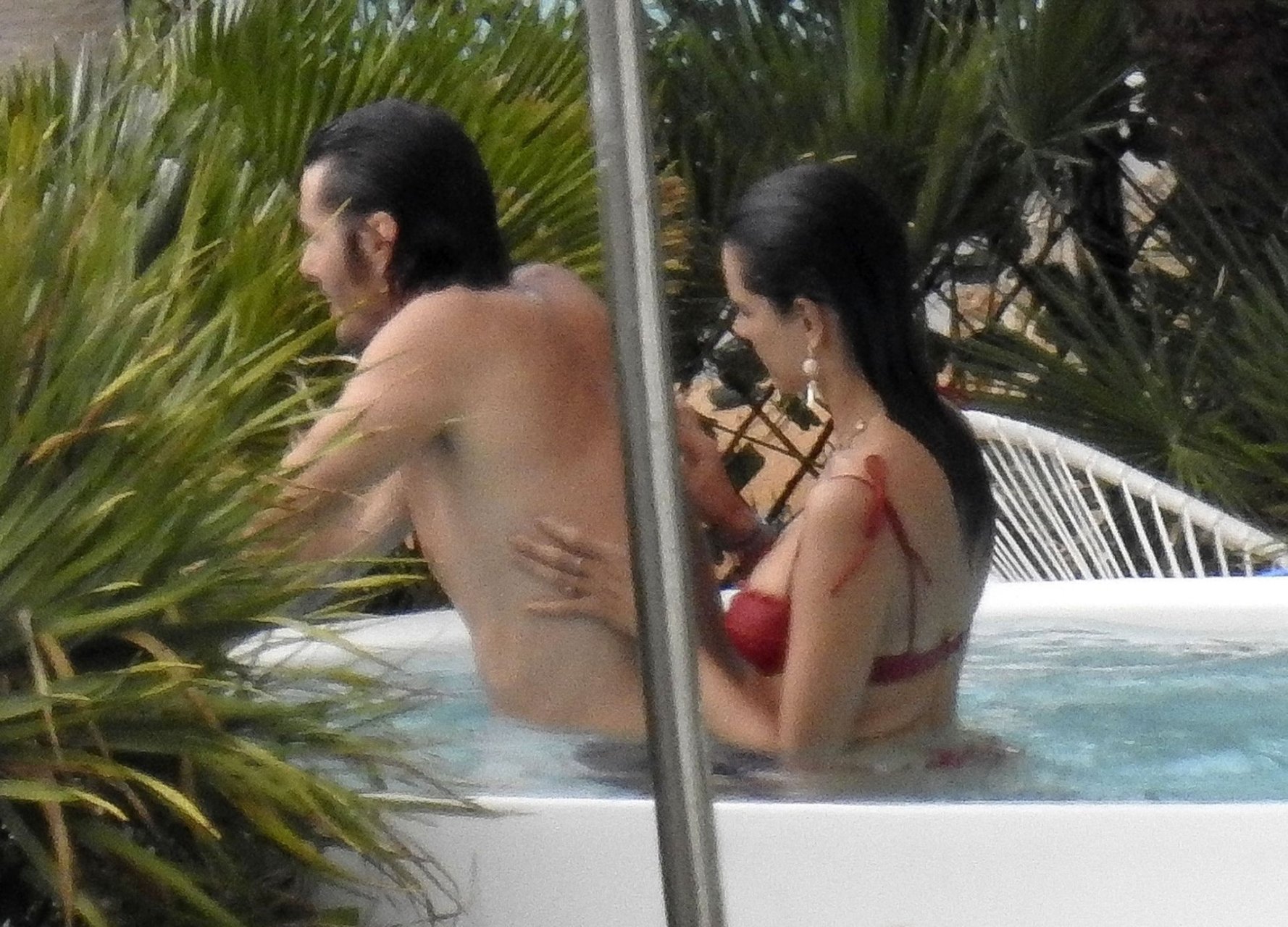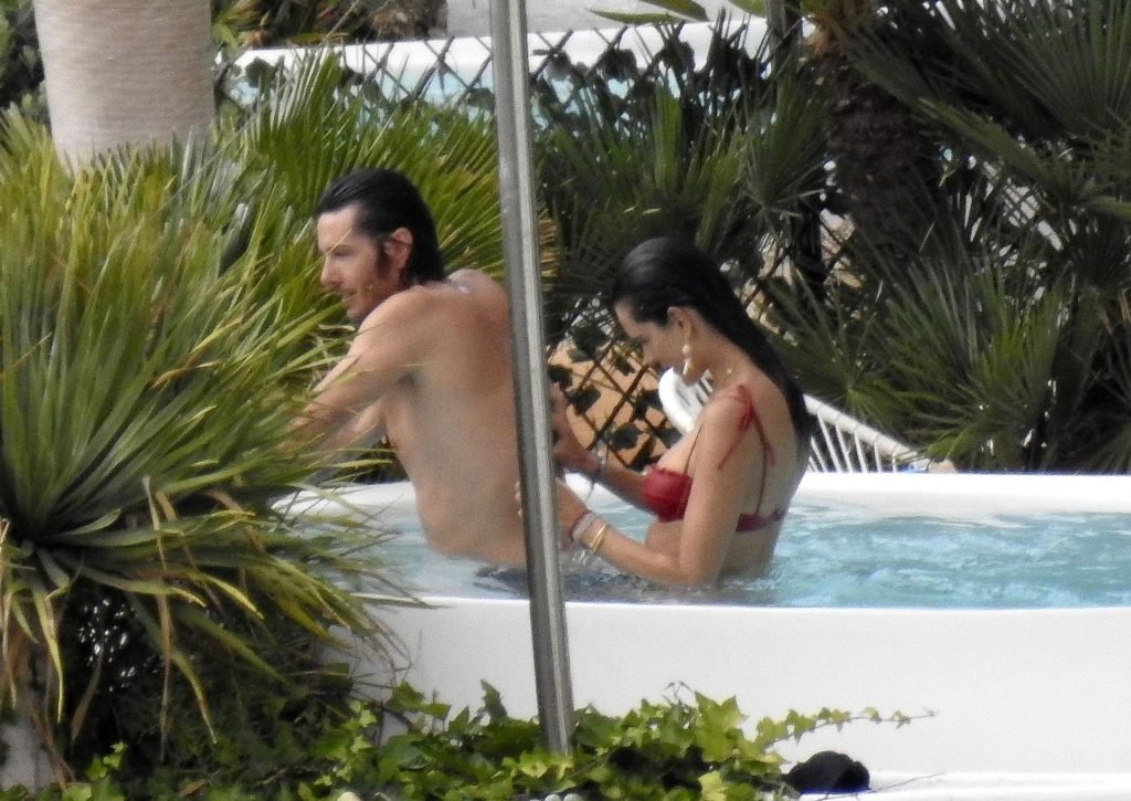 Indossando il suo sexy bikini rosso, la supermodella brasiliana Alessandra Ambrosio appare innamorata e rilassata con il suo fidanzato italiano Nicolo Oddi mentre la coppia si mostra affettuosa a bordo piscina durante le loro vacanze a Ibiza, 07/08/2019.