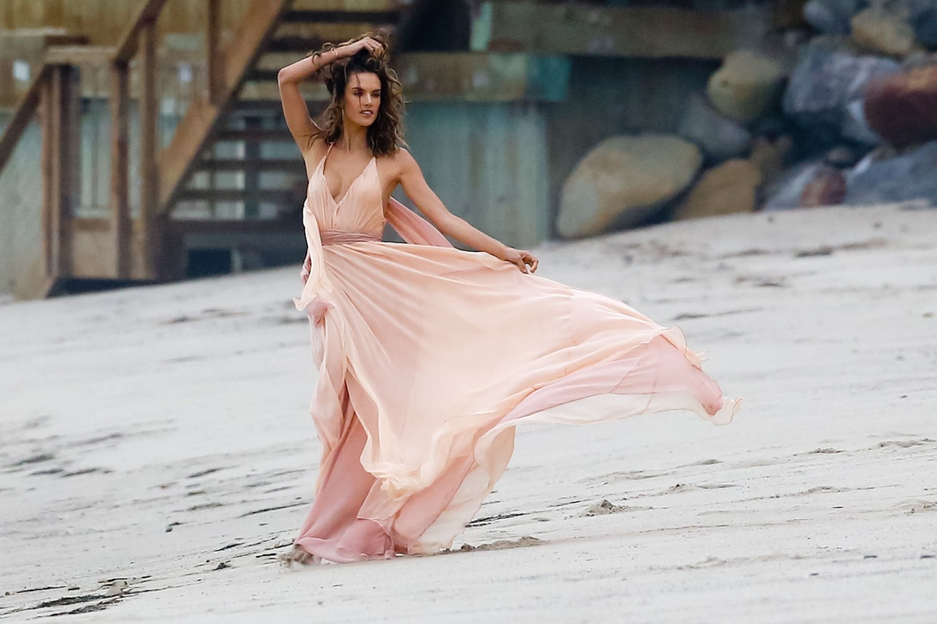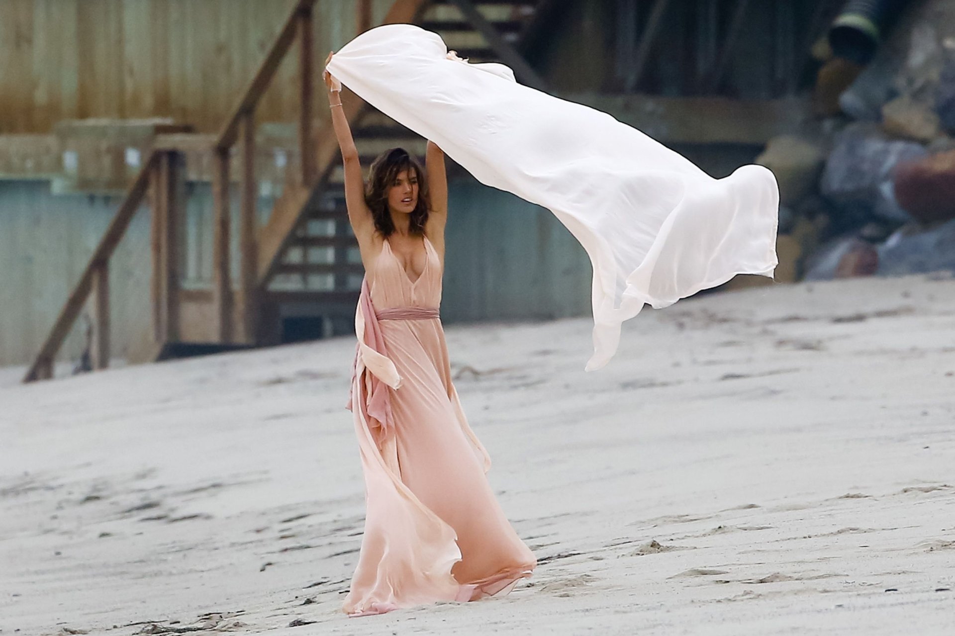 Alessandra Ambrosio indossa un perizoma sul set di un servizio fotografico a Malibu, 10/06/16. L’abito è spettacolare! Alessandra Ambrosio è una modella brasiliana. Età: 35 (11 aprile 1981). Altezza 177 cm.