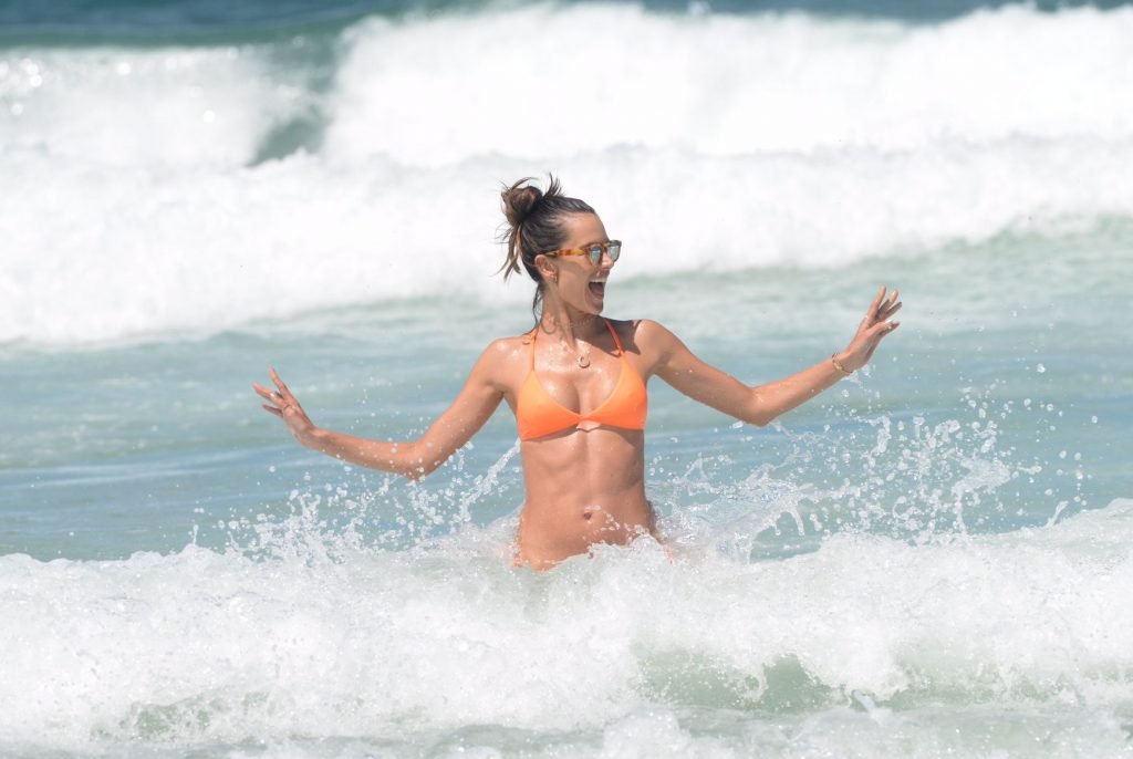 Modella e attrice Alessandra Ambrosio, 36 anni, si gode la spiaggia a Florianopolis, 31/12/2017.