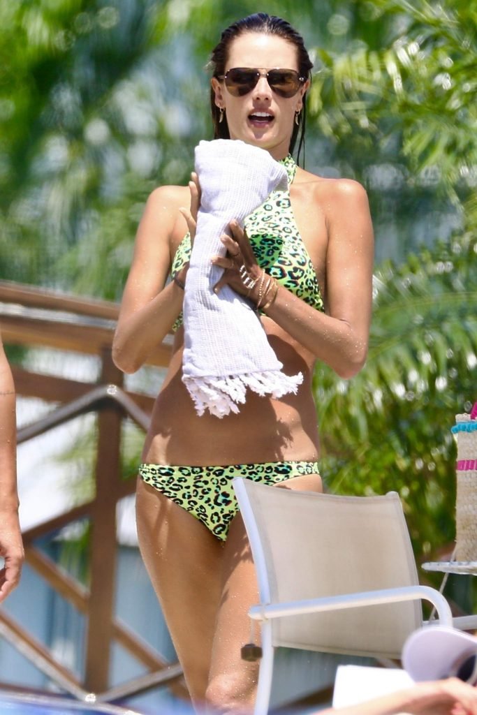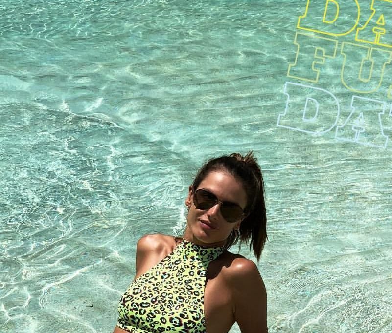 Modella, attrice Alessandra Ambrosio, 36 anni, si rilassa a bordo piscina a Florianopolis, Brasile, 01/07/2018.