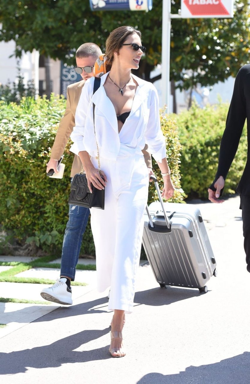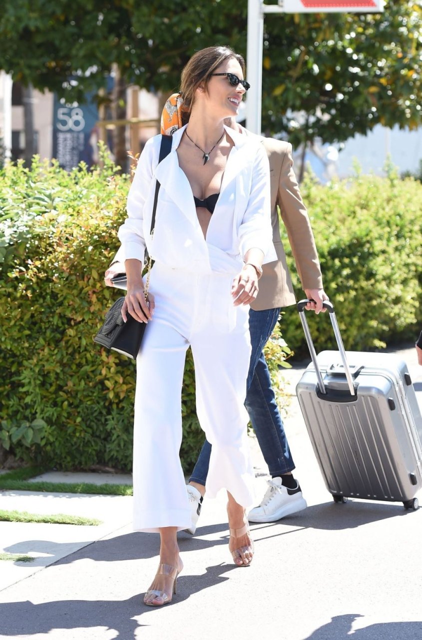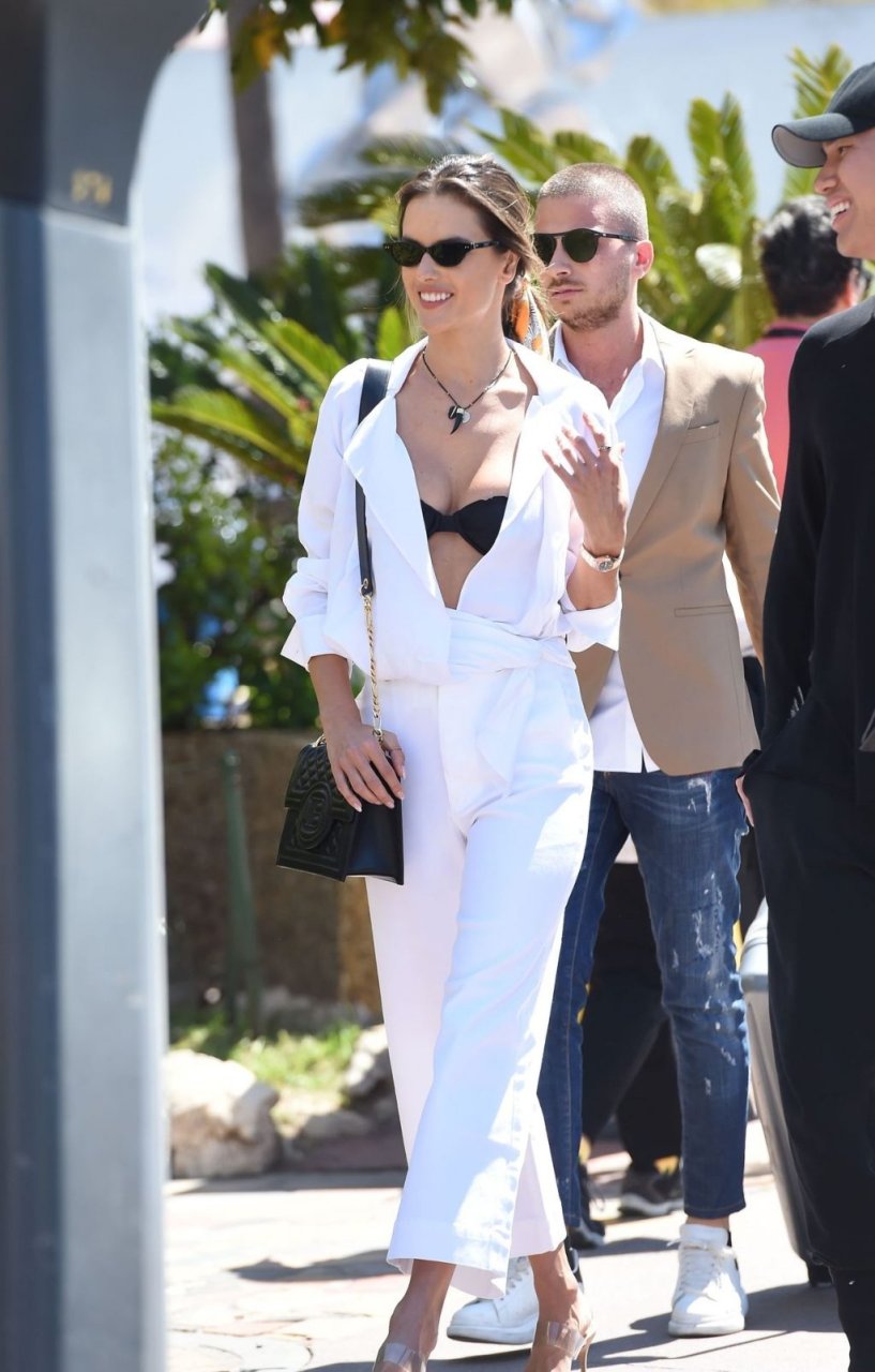 La modella brasiliana Alessandra Ambrosio mostra un sexy décolleté mentre lascia l’Hotel Martinez durante il Festival del Cinema di Cannes 2019, 14/05/2019.