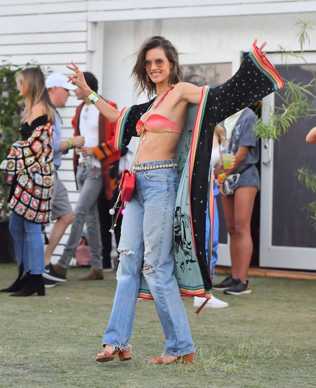 Alessandra Ambrosio mostra la sua figura in forma mentre celebra il suo 38° compleanno a Coachella, 12/04/2019.