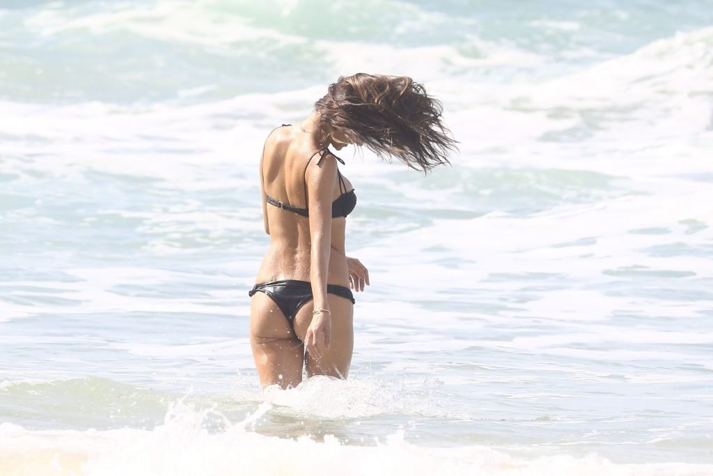 La modella brasiliana Alessandra Ambrosio fa scalpore in un sexy bikini nero mentre si trova sulle spiagge di Porto Alegre, Brasile, 02/07/2019.
