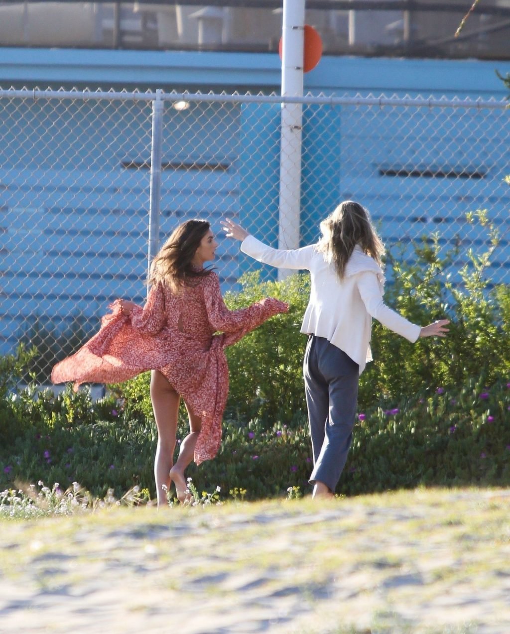 La bellezza brasiliana ha mostrato la sua figura tonica con un bikini rosso, e ha anche indossato un vestito avvolgente rosso sopra un bikini beige, girandosi giocosa davanti alle telecamere.