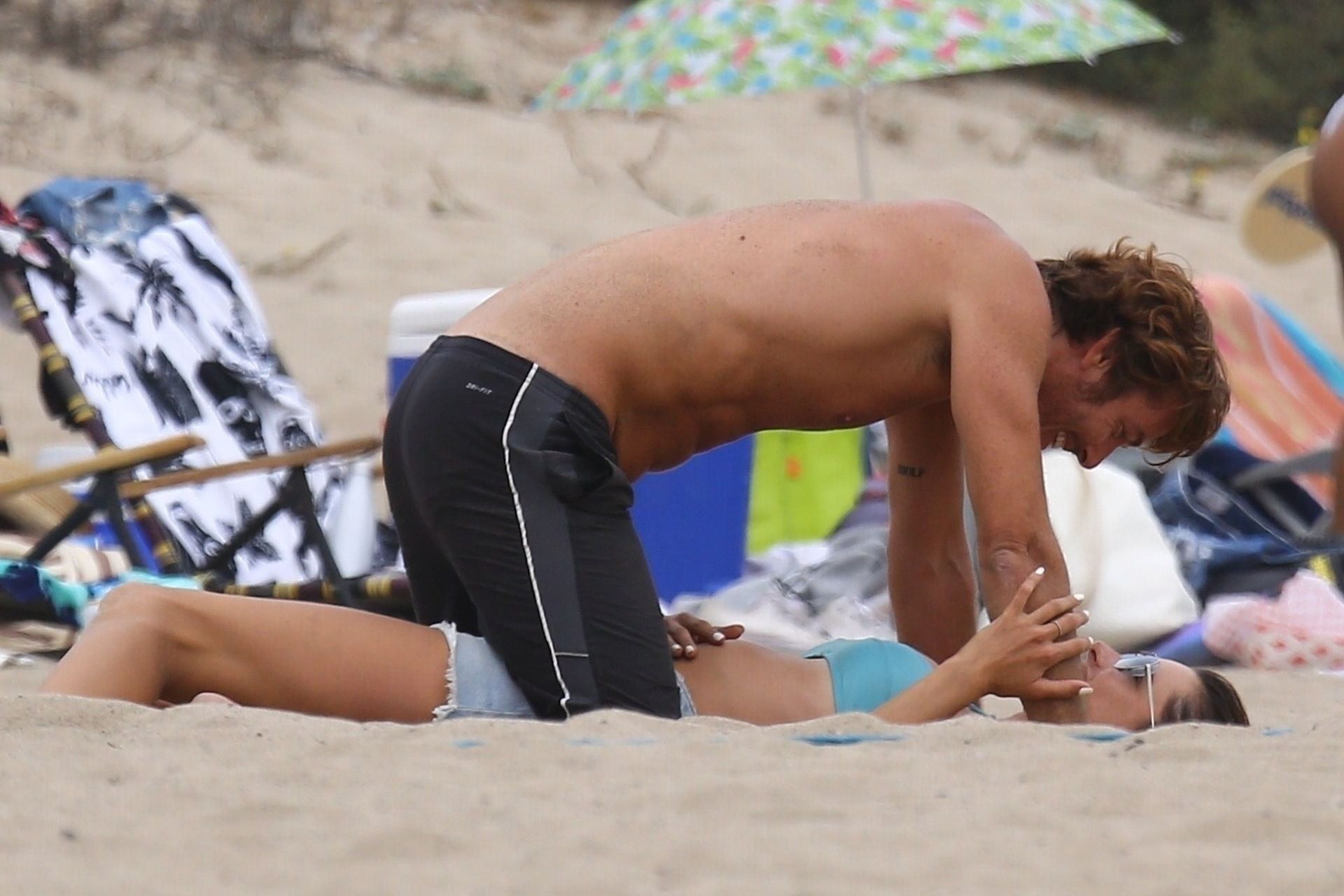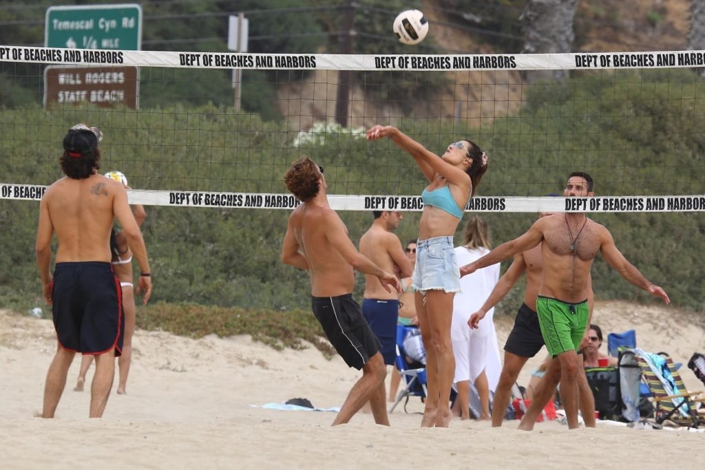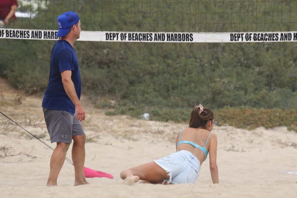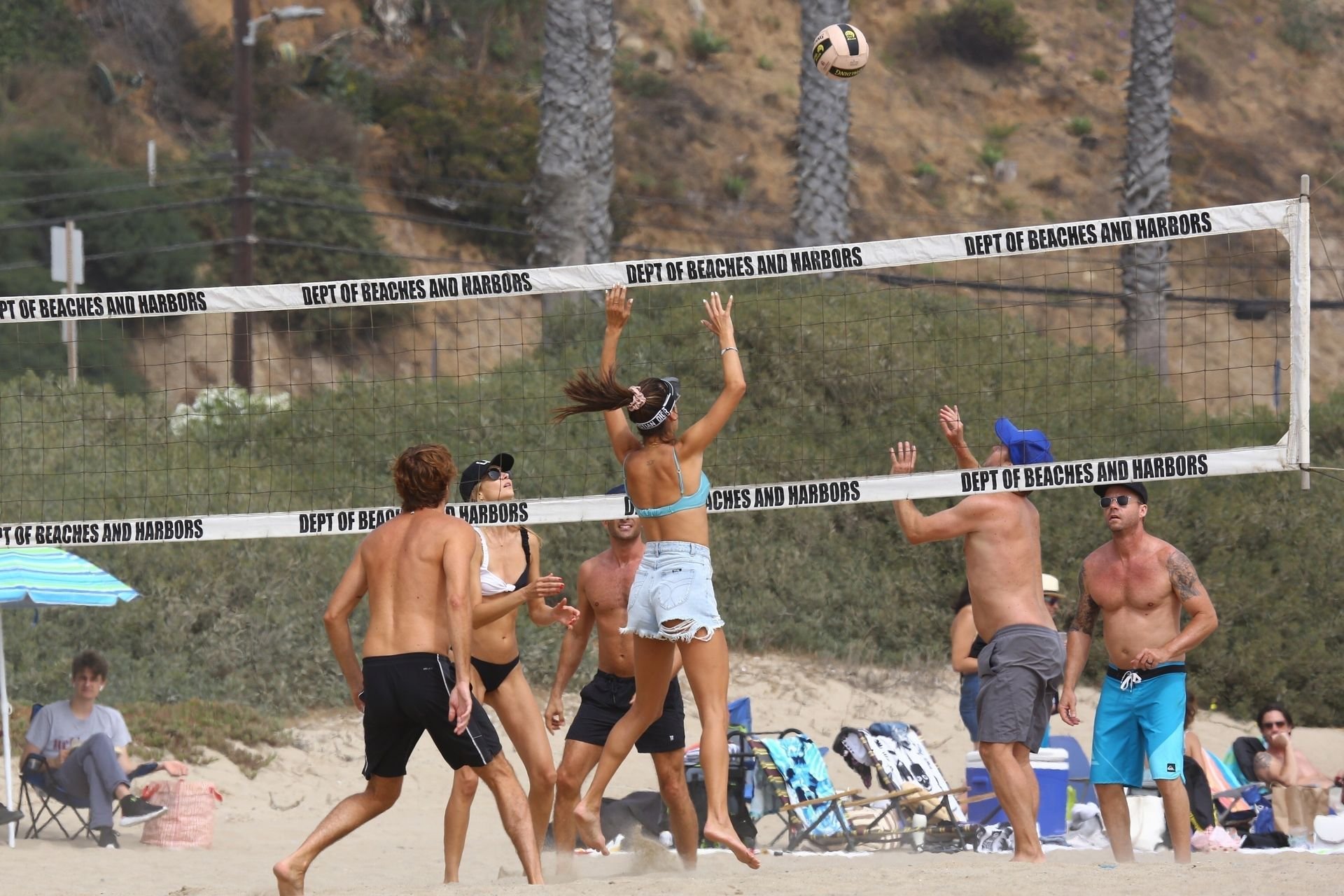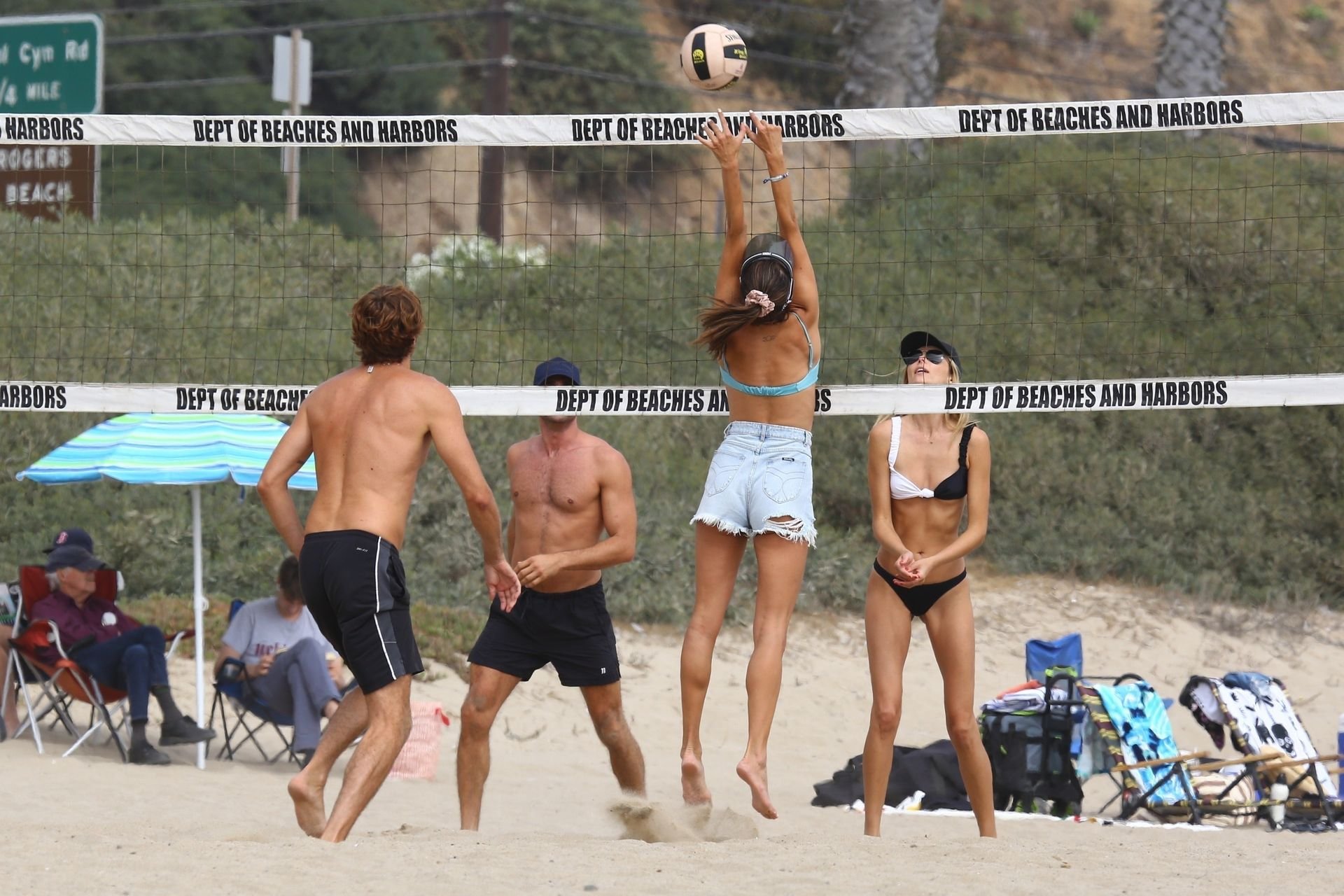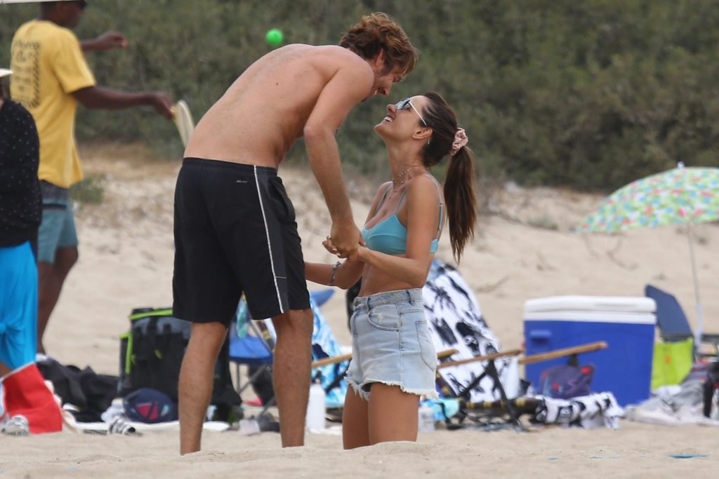La supermodella brasiliana ha giocato a pallavolo con i suoi amici e si è vista bere shot e scambiarsi baci con il suo amore tra una partita e l’altra prima di andare via in bicicletta.