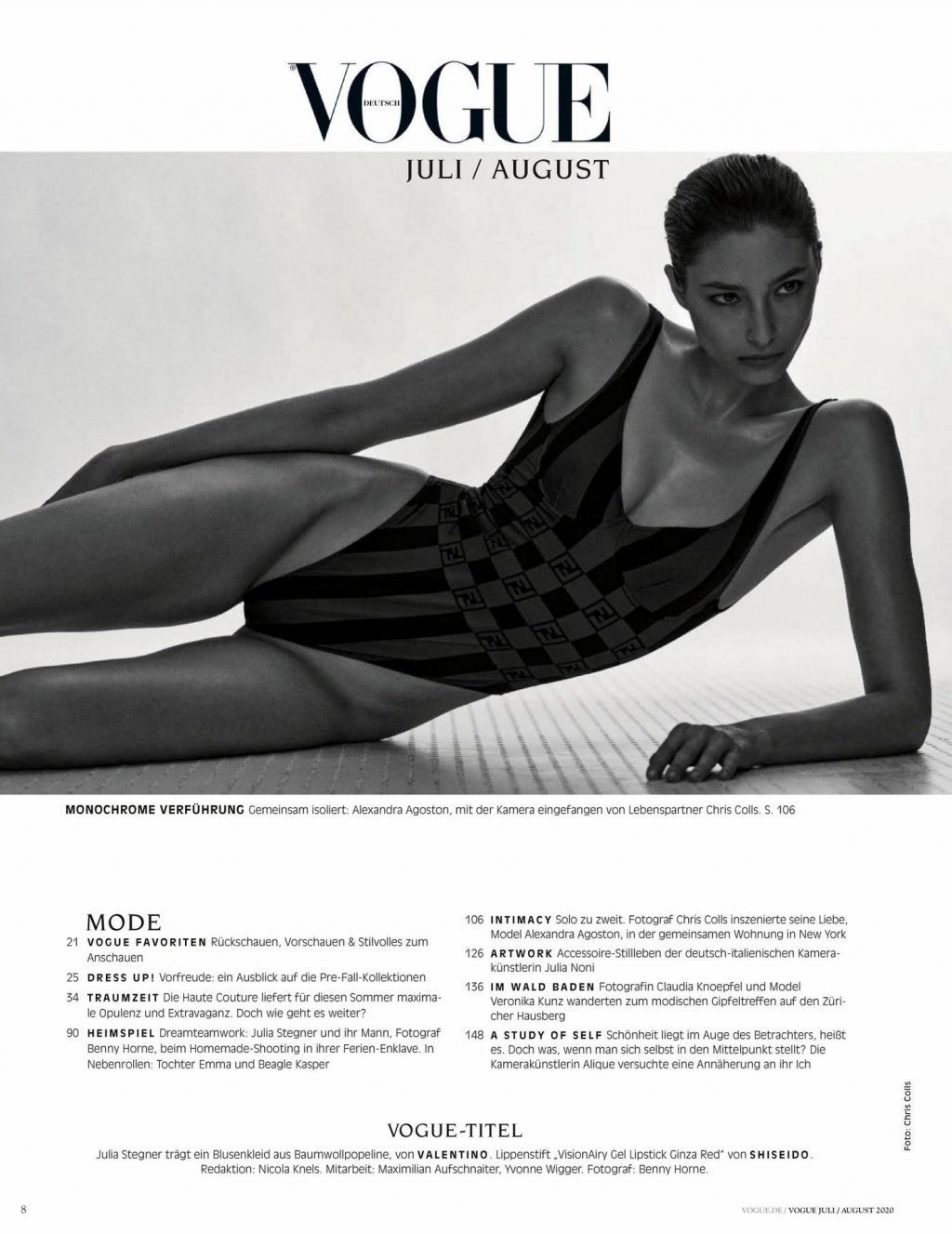 La bellezza australiana Alexandra Agoston si spoglia e mostra la sua splendida figura da modella per Chris Colls e le pagine della rivista Vogue, numero di luglio 2020.