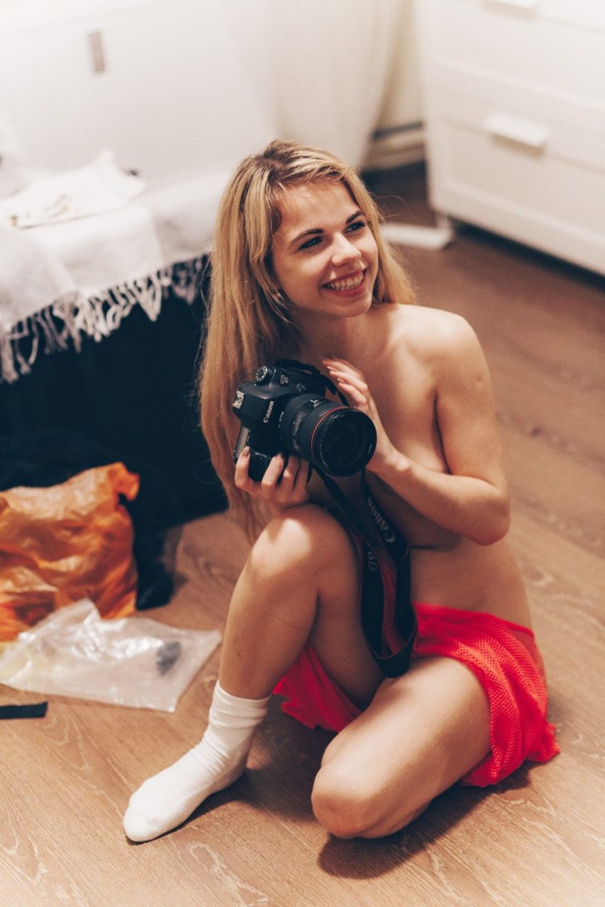 La modella russa Alexandra Smelova è apparsa come fotografa nuda in un servizio fotografico “Naked Backstage” di Sergei Starostin (novembre 2018). Questa giovane bellezza appare splendida con la macchina fotografica.