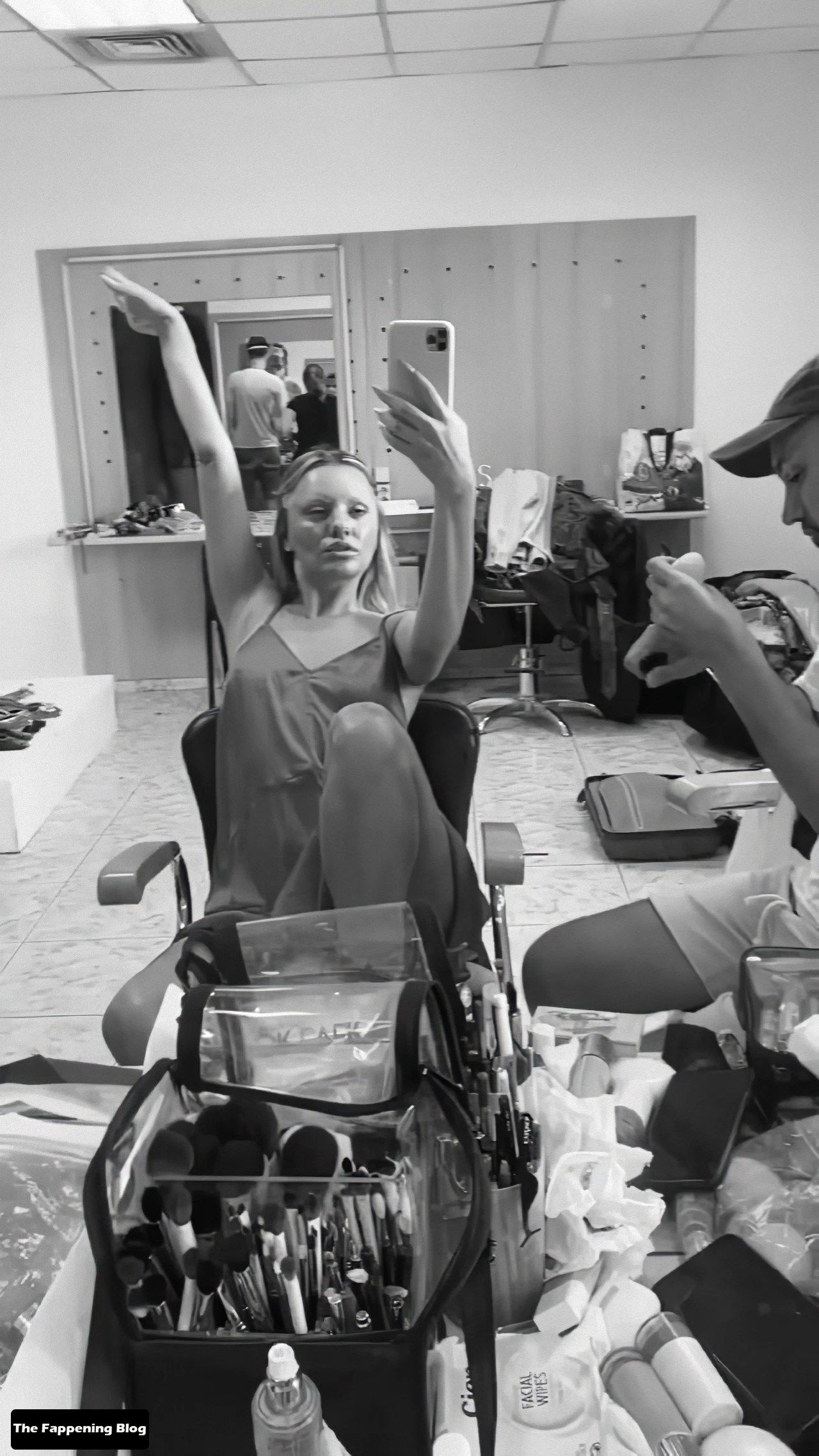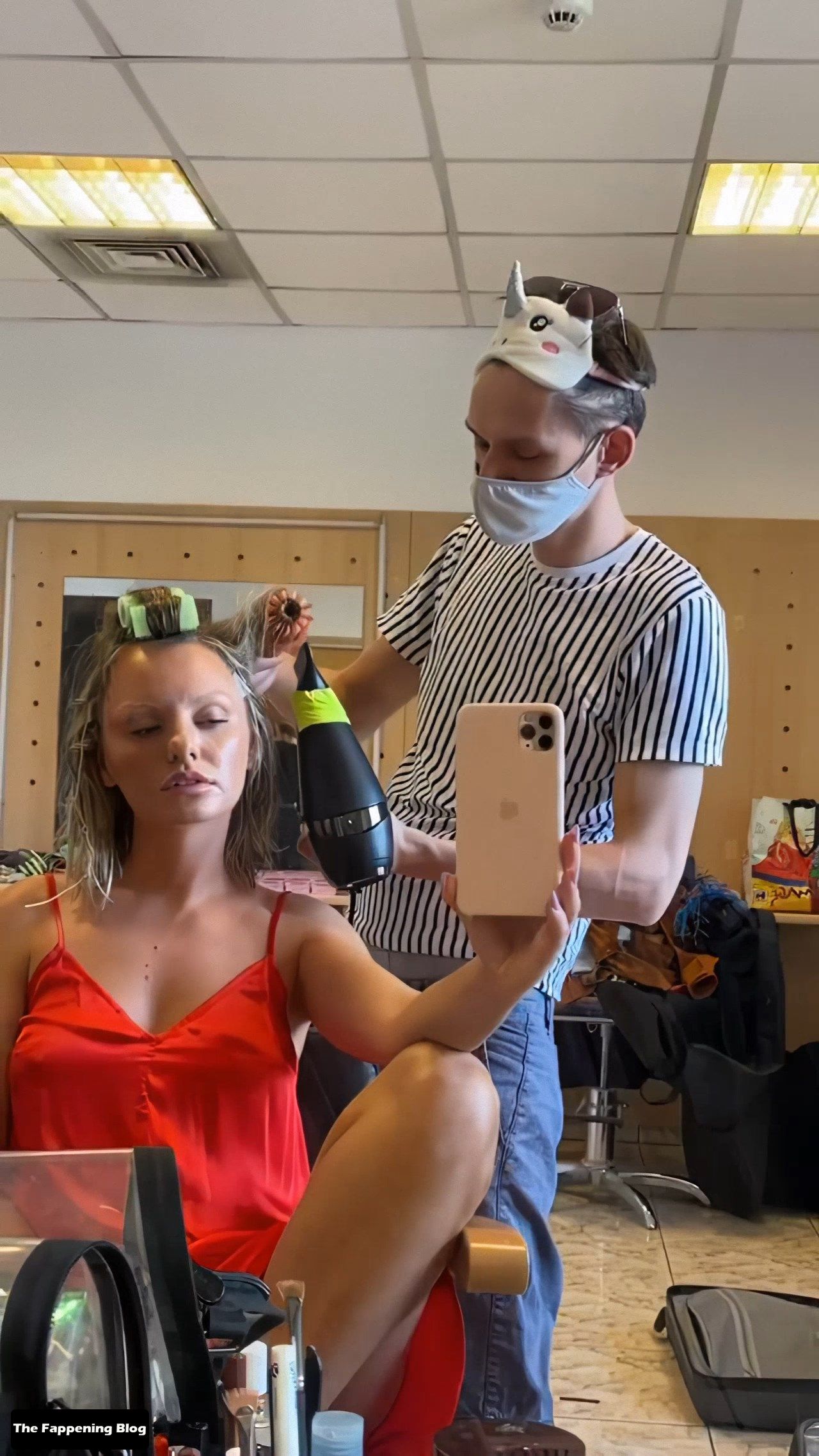 Alexandra Stan si sta preparando per un servizio fotografico e mostra i suoi seni nudi.