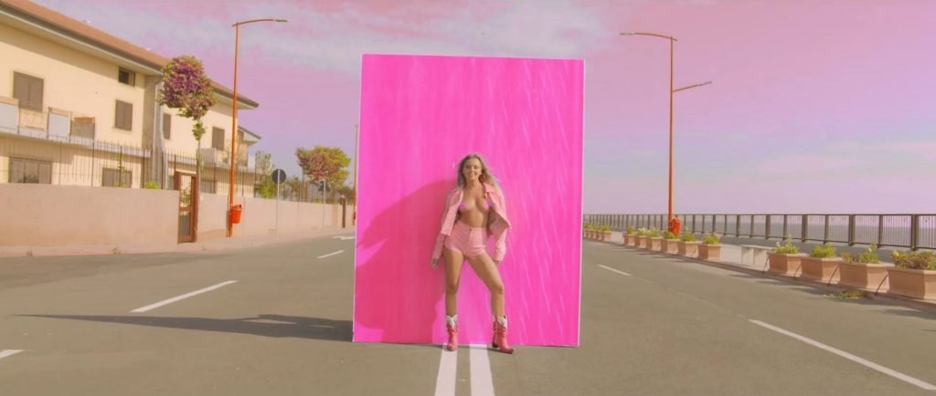 Alexandra Stan presenta il suo nuovo video musicale “I Think I Love It” (luglio 2019). La cantante rumena di 30 anni ha mostrato il suo sexy sedere in abiti rosa e verdi e il seno coperto con pasties.