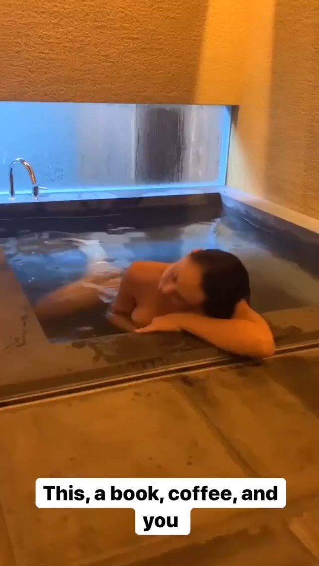 Model Alexis Ren ha pubblicato alcune foto e un video nudi (coperti) mentre faceva il bagno in un hotel durante la sua vacanza in Giappone – Instagram, 04/07/2019.