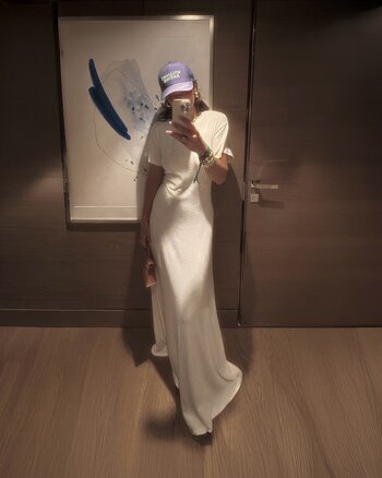 Trasparente nella foto 21, anche. Un po' ridondante, dato che la sua prima esposizione topless/seno è stata due o tre anni fa. Comunque piacevole.