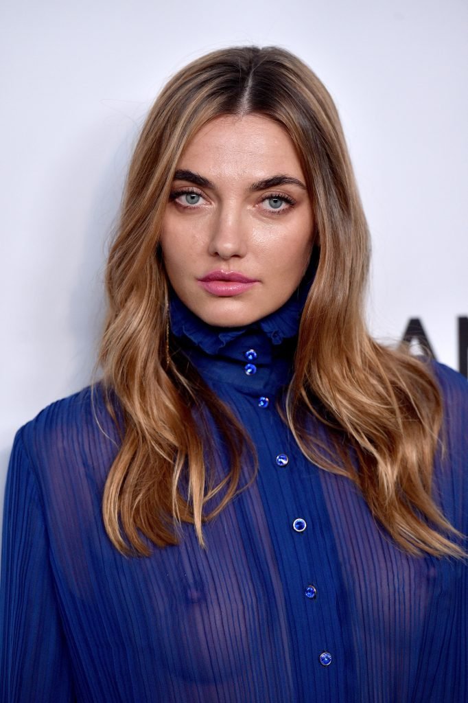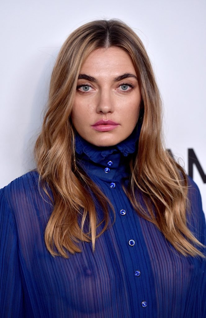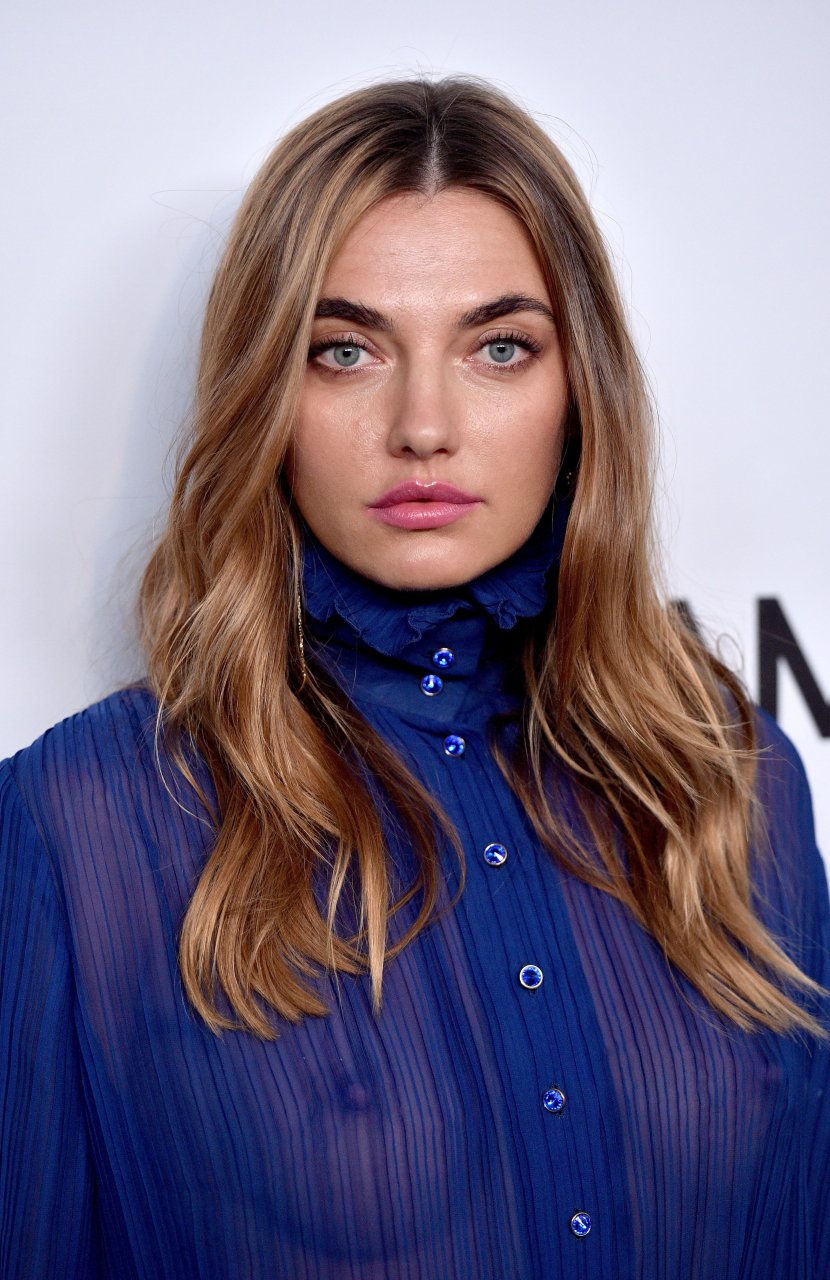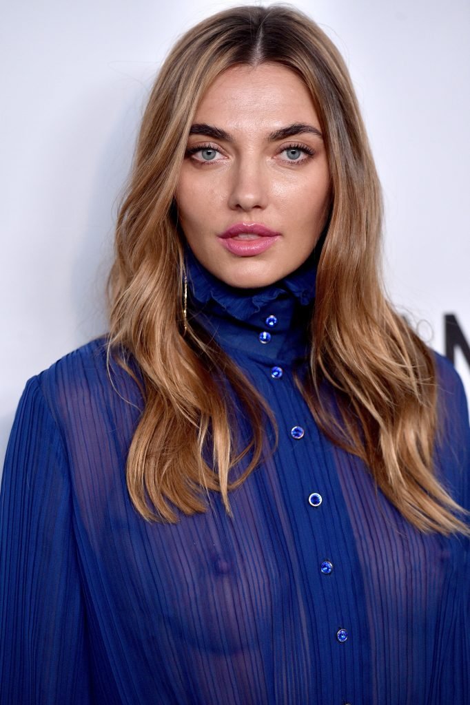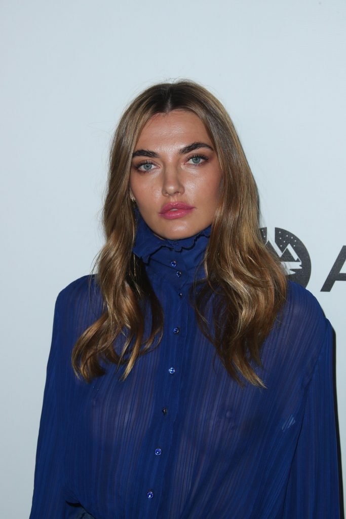 Alina Baikova indossa una blusa blu trasparente senza reggiseno alla amfAR Inspiration Gala a Los Angeles, 13/10/2017. Alina Baikova è una modella ucraina. Età – 28 anni (nata il 6 settembre 1989).