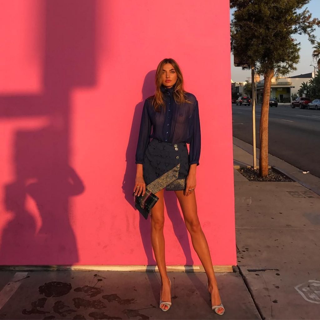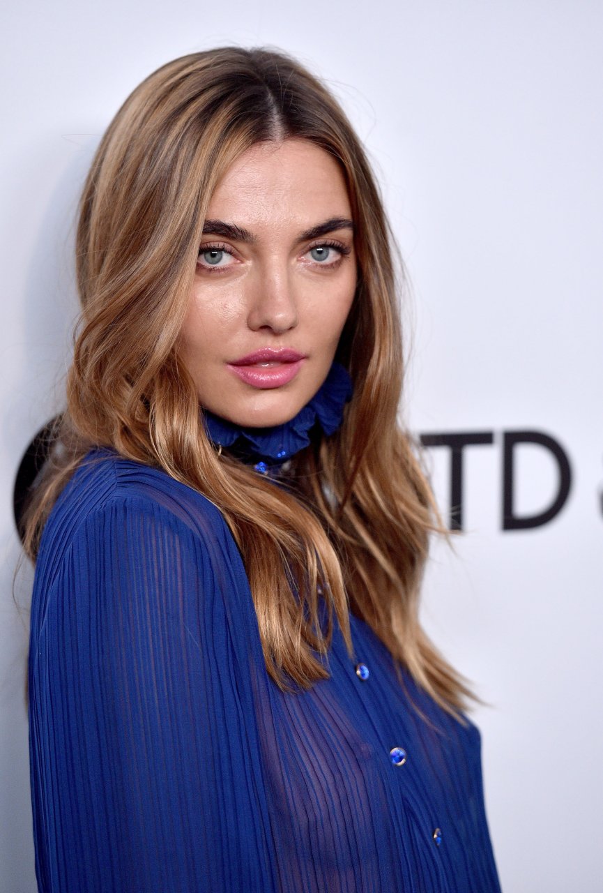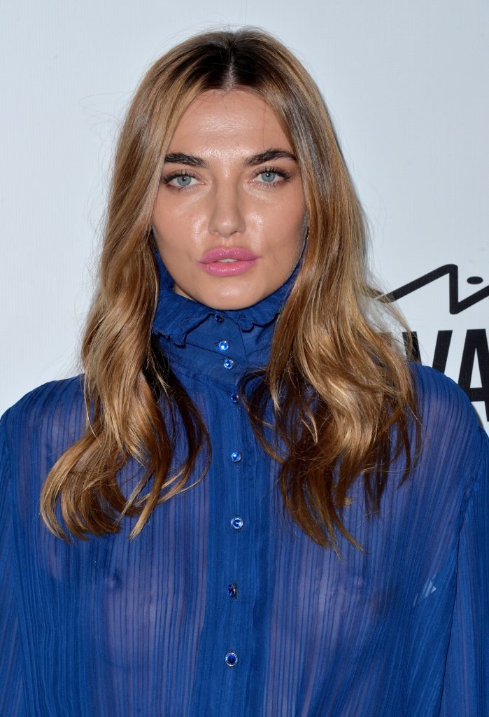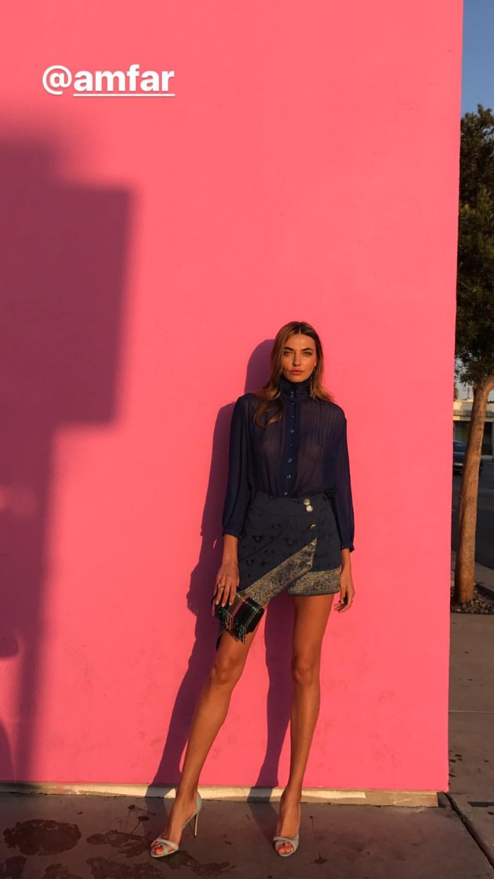 Alina Baikova indossa una blusa blu trasparente senza reggiseno alla amfAR Inspiration Gala a Los Angeles, 13/10/2017. Alina Baikova è una modella ucraina. Età – 28 anni (nata il 6 settembre 1989).