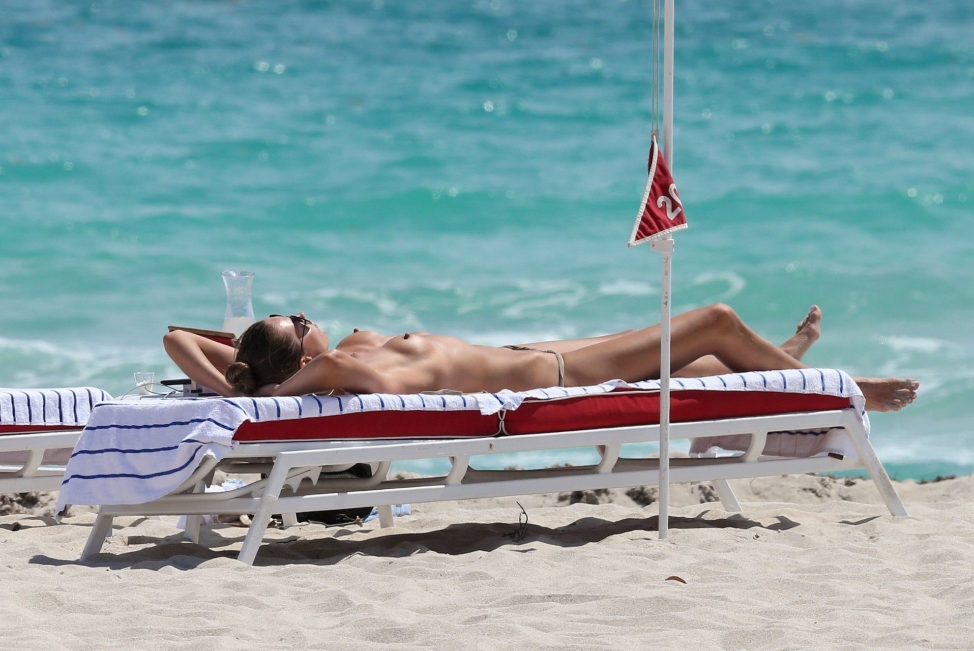 La modella ucraina Alina Baikova trascorre una giornata a lavorare sulla sua abbronzatura topless con amici a Miami la domenica di Pasqua, 01/04/2018. Alina è accompagnata da Toni Garrn e amici, il gruppo rideva e si divertiva molto godendosi insieme la vacanza.