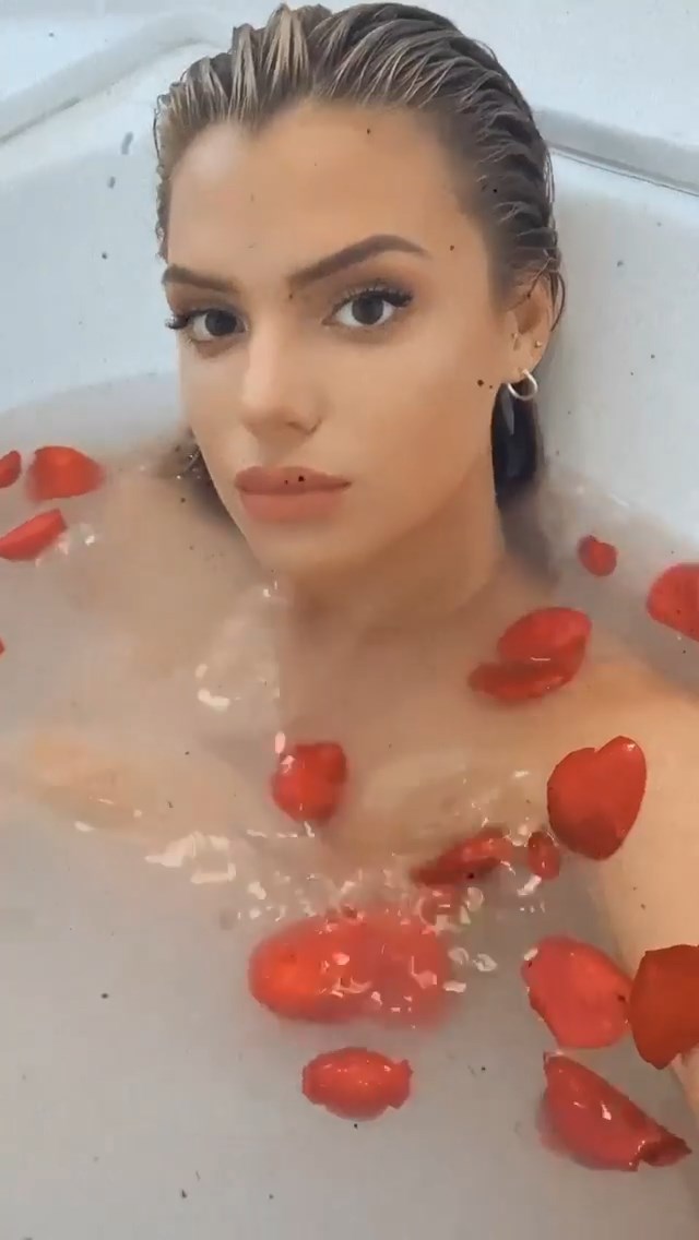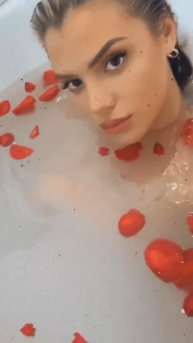 Alissa Violet posa nuda in un nuovo servizio fotografico per San Valentino nella vasca da bagno con petali di rosa che le coprono il seno con le mani – Instagram, 14/02/2020.
