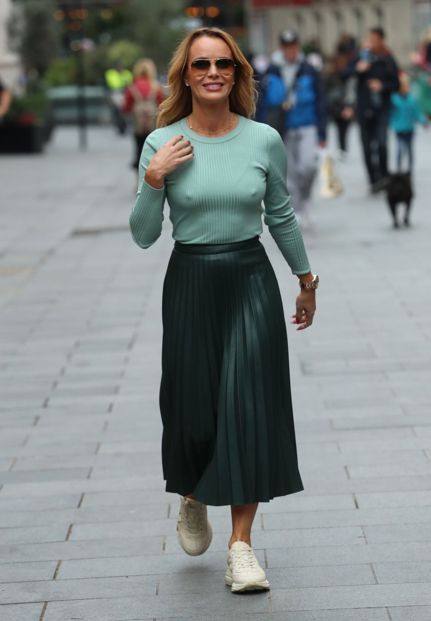 Amanda Holden mostra i capezzoli in un vestito verde e Ashley Roberts in un completo beige vista mentre esce da Heart Radio a Londra, 10/03/2019.