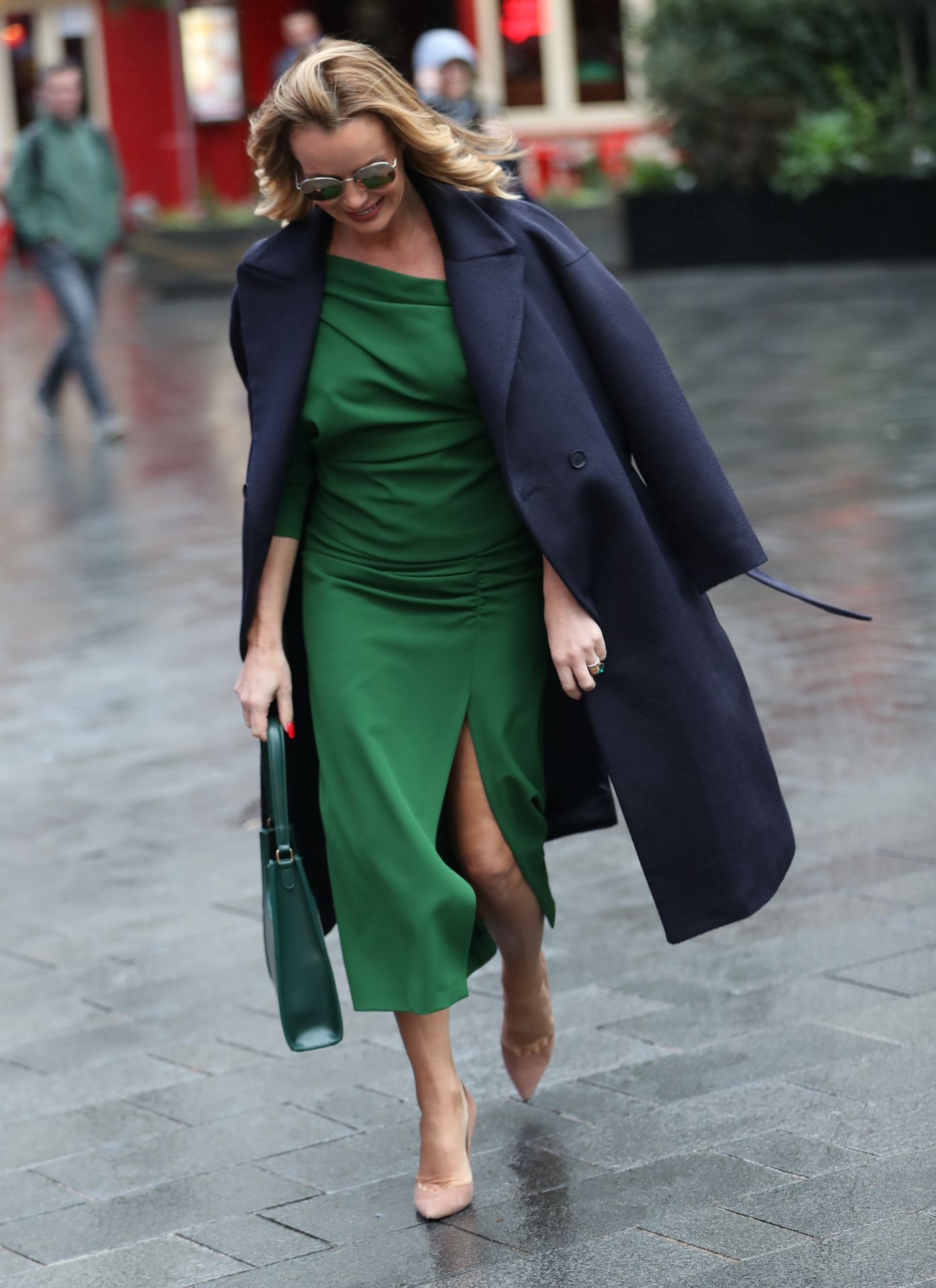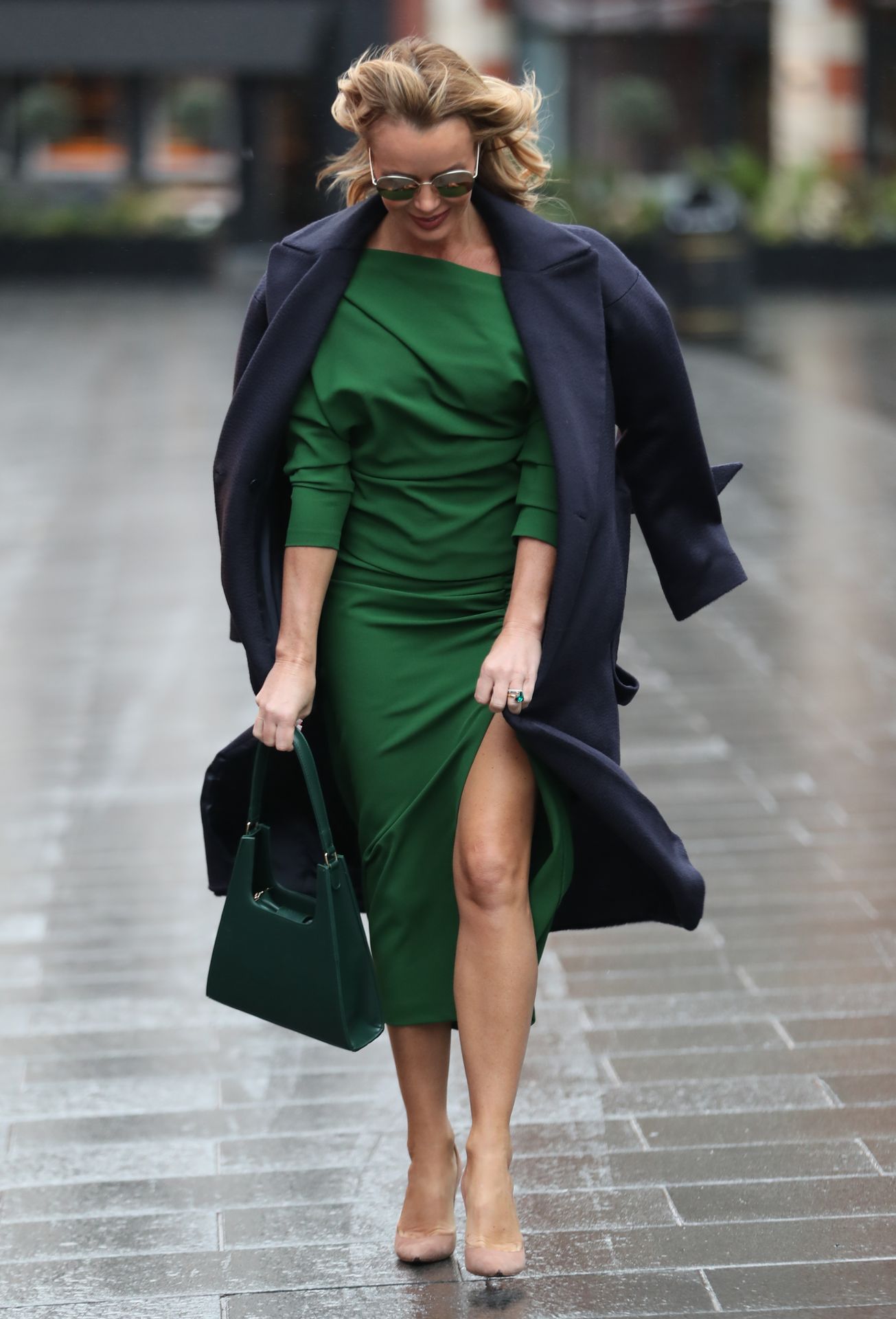 L’attrice e conduttrice televisiva britannica Amanda Holden mostra le gambe uscendo da Heart Radio con un abito verde con spacco – Londra, 24/02/2020.