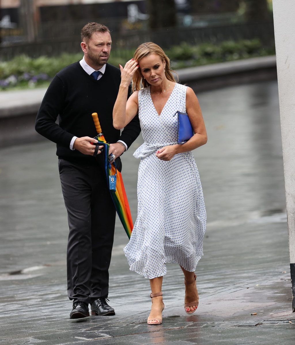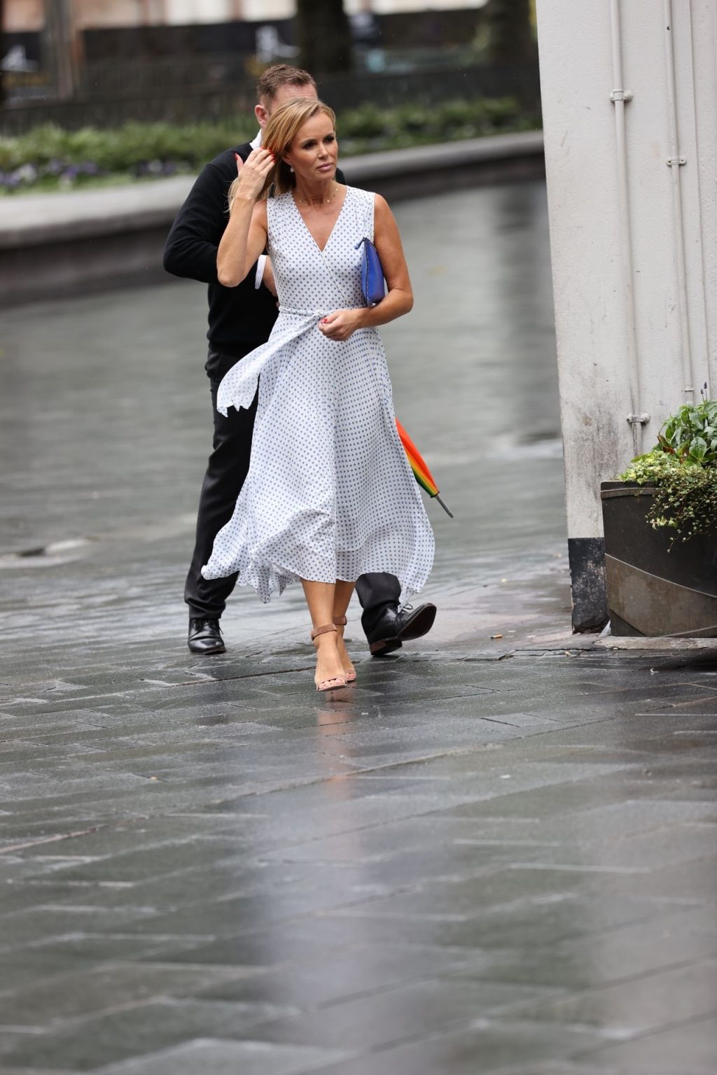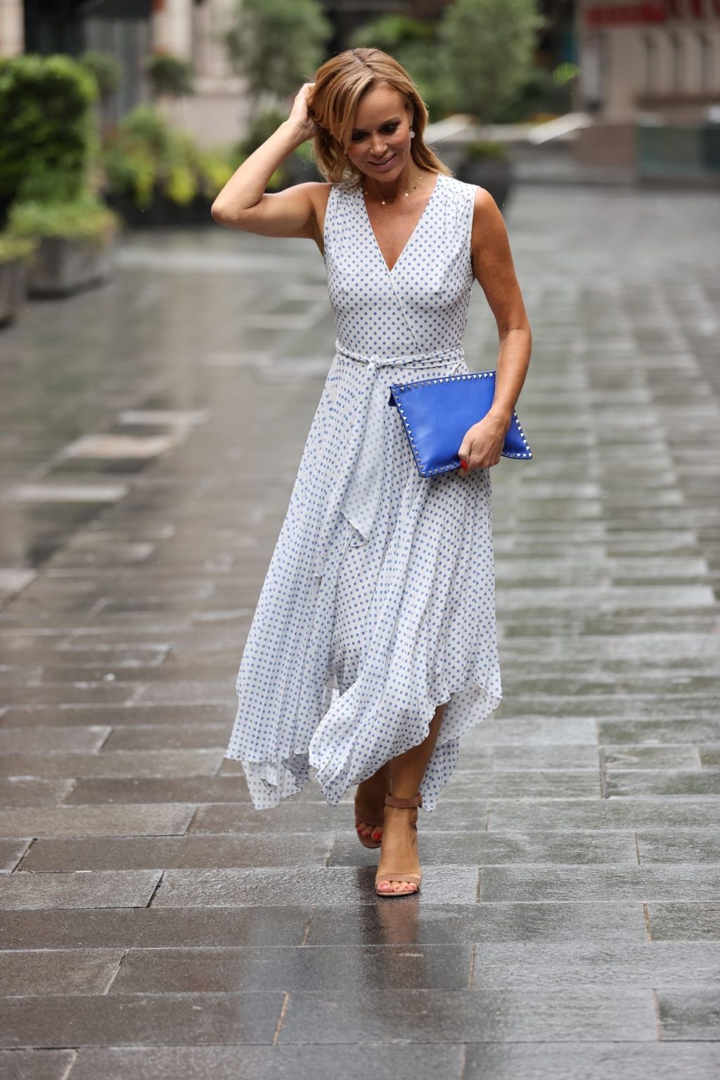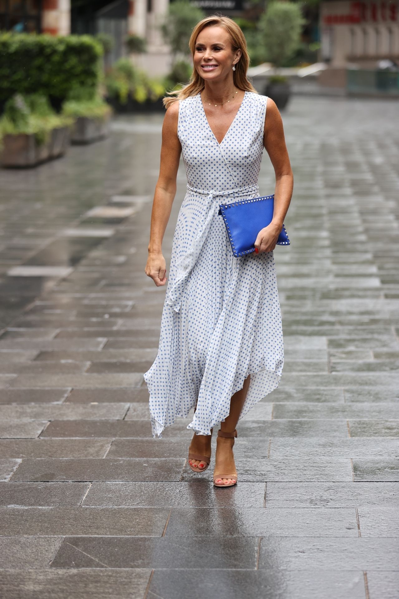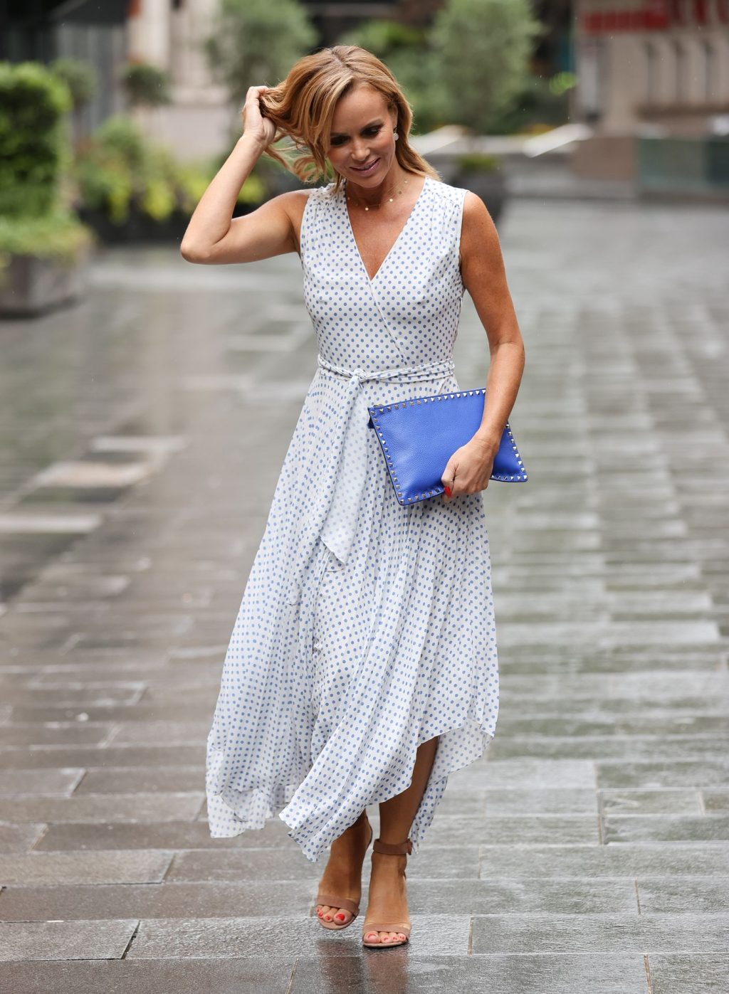 Sexy presentatrice Amanda Holden fa un’apparizione alla moda senza reggiseno alla radio Global per gli show Heart Radio e Smooth Radio a Londra, 18/06/2020.