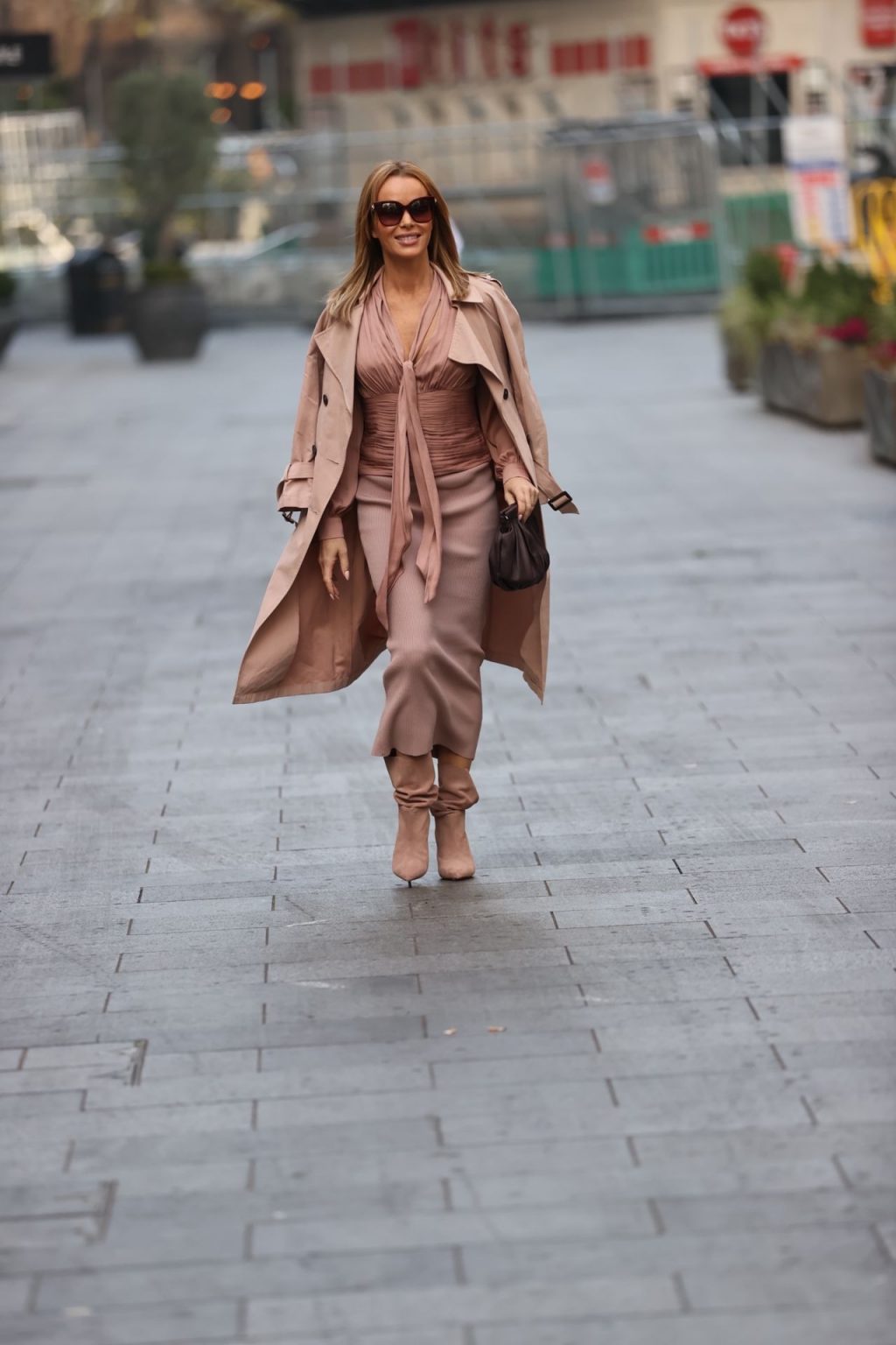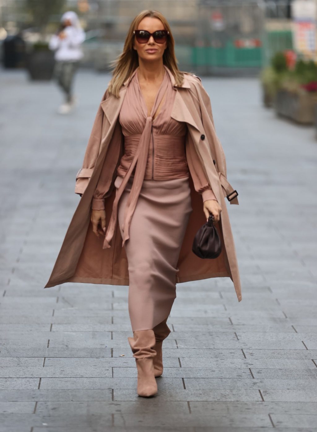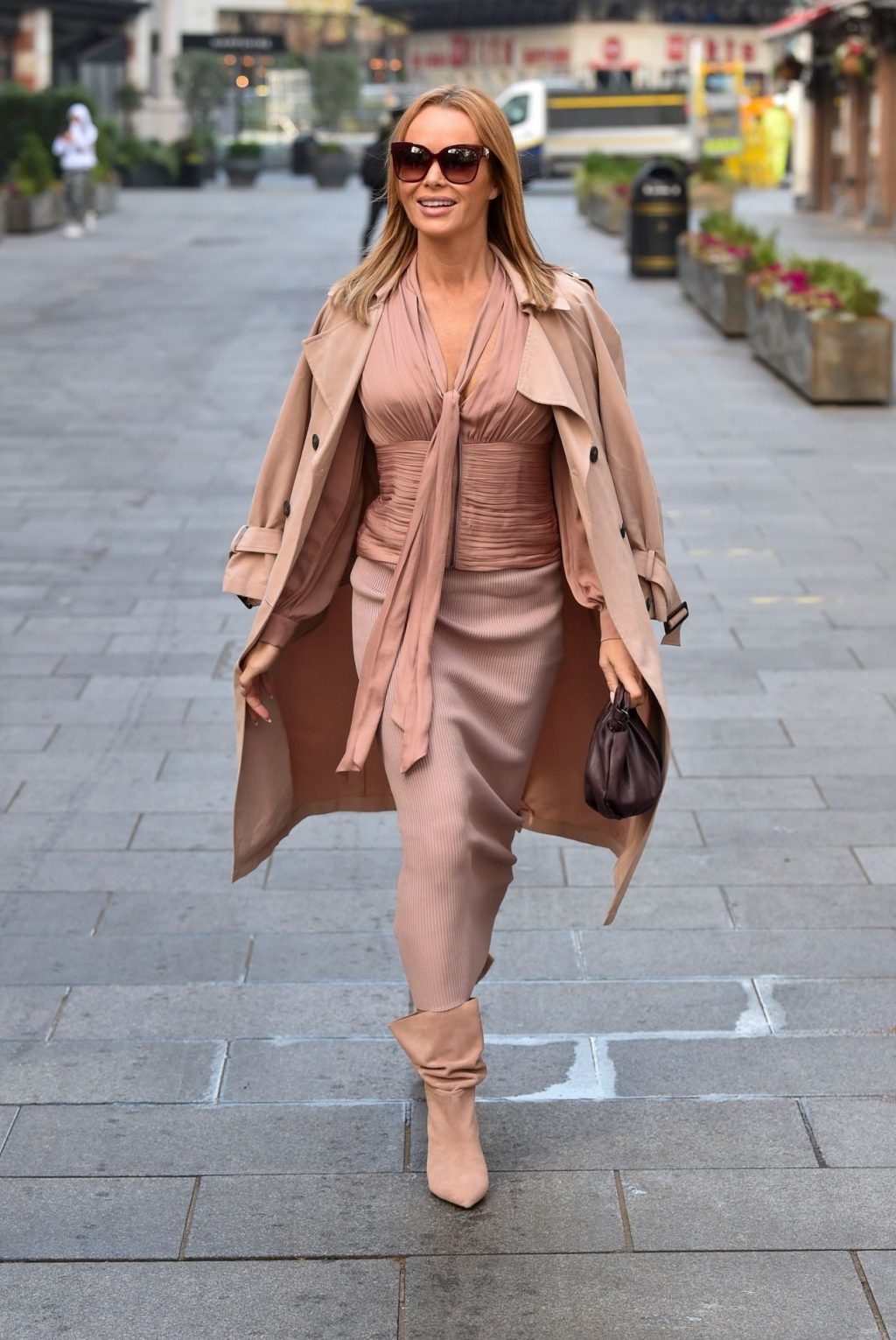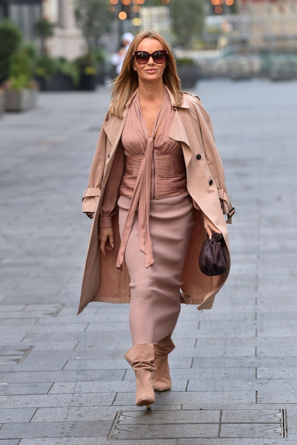 Sexy Amanda Holden indossa un vestito beige per lo show radiofonico Heart a Londra, 11/05/2020.
