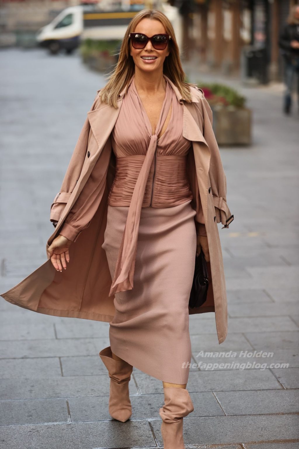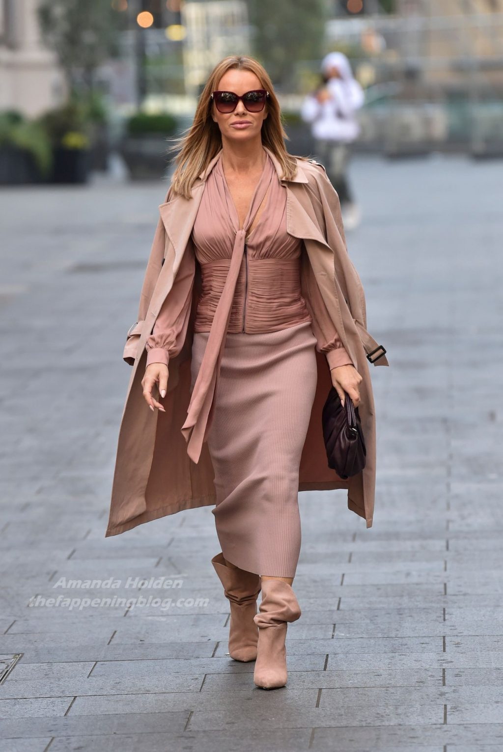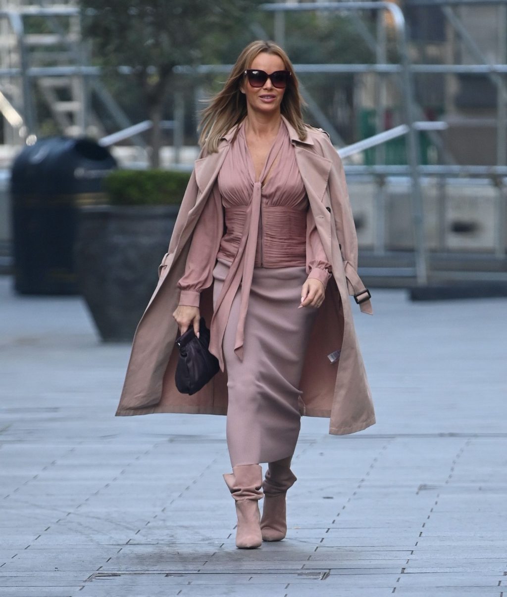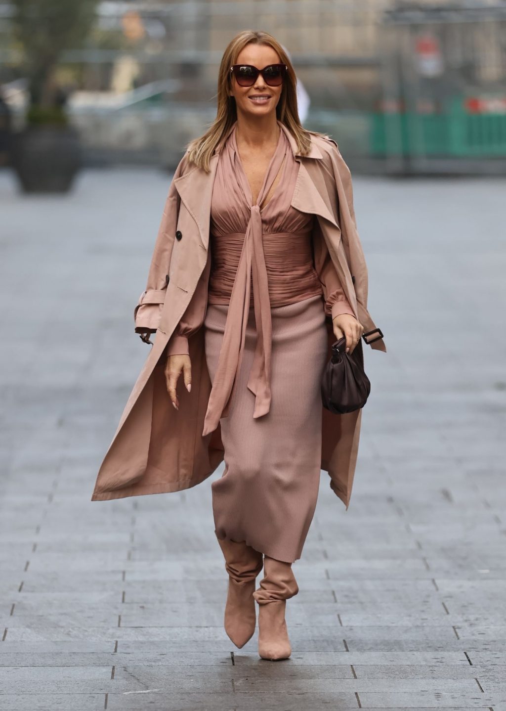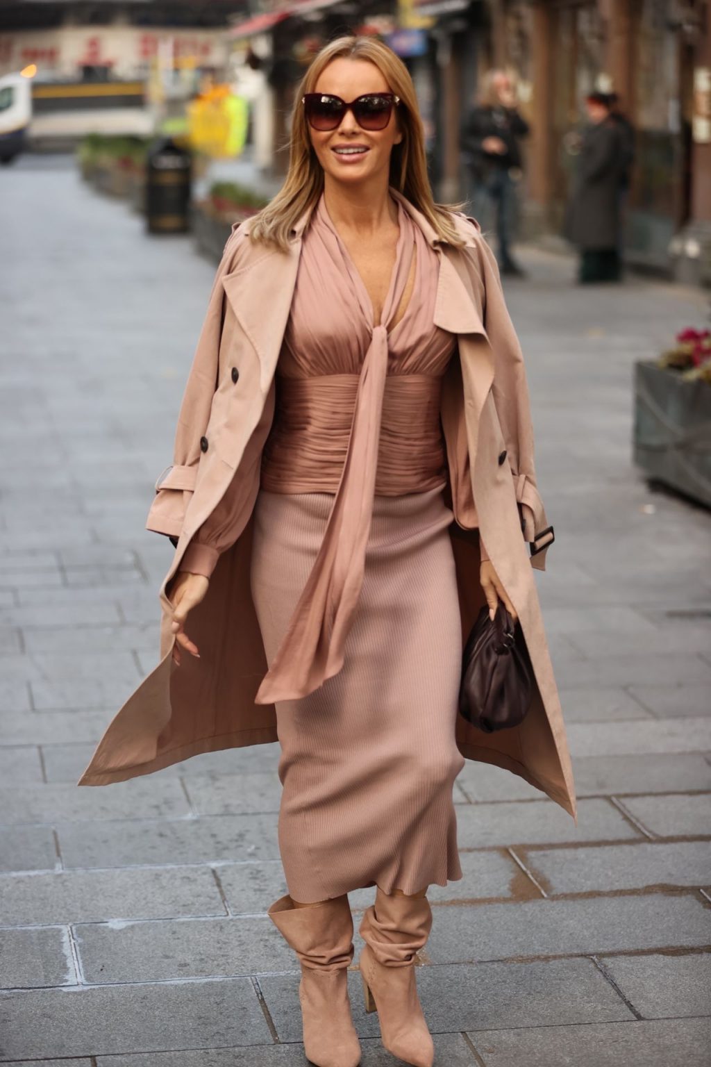 Sexy Amanda Holden indossa un vestito beige per lo show radiofonico Heart a Londra, 11/05/2020.