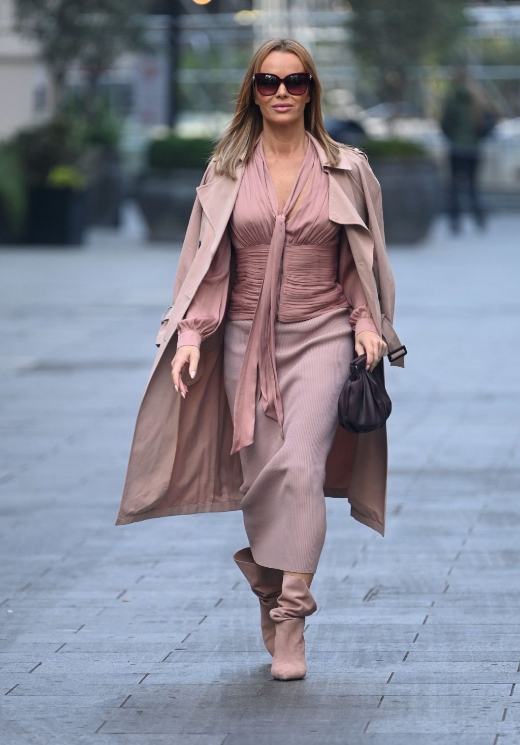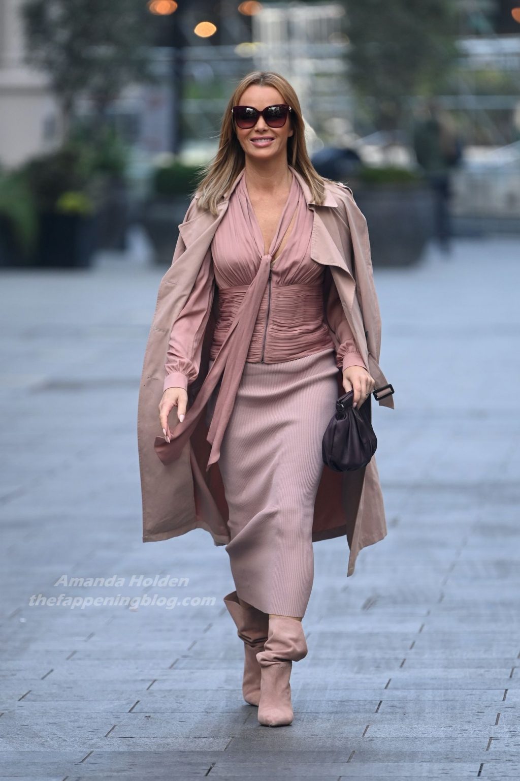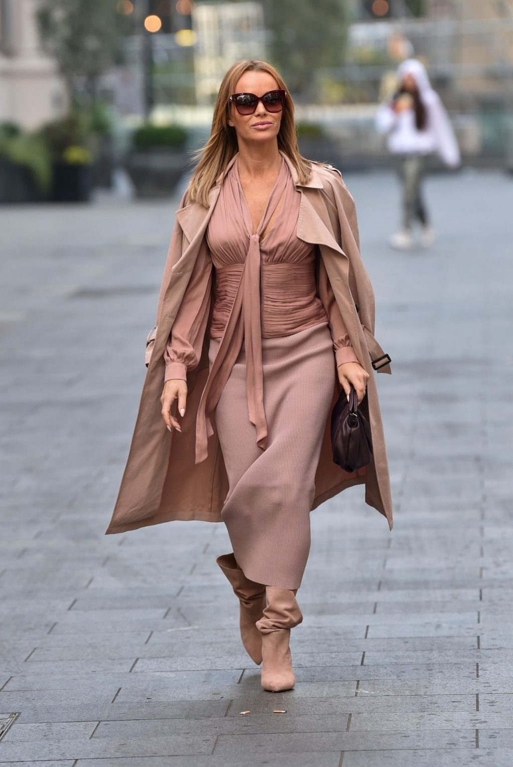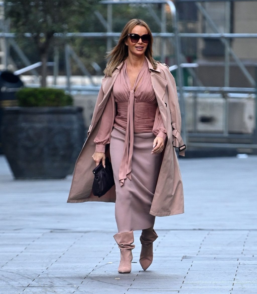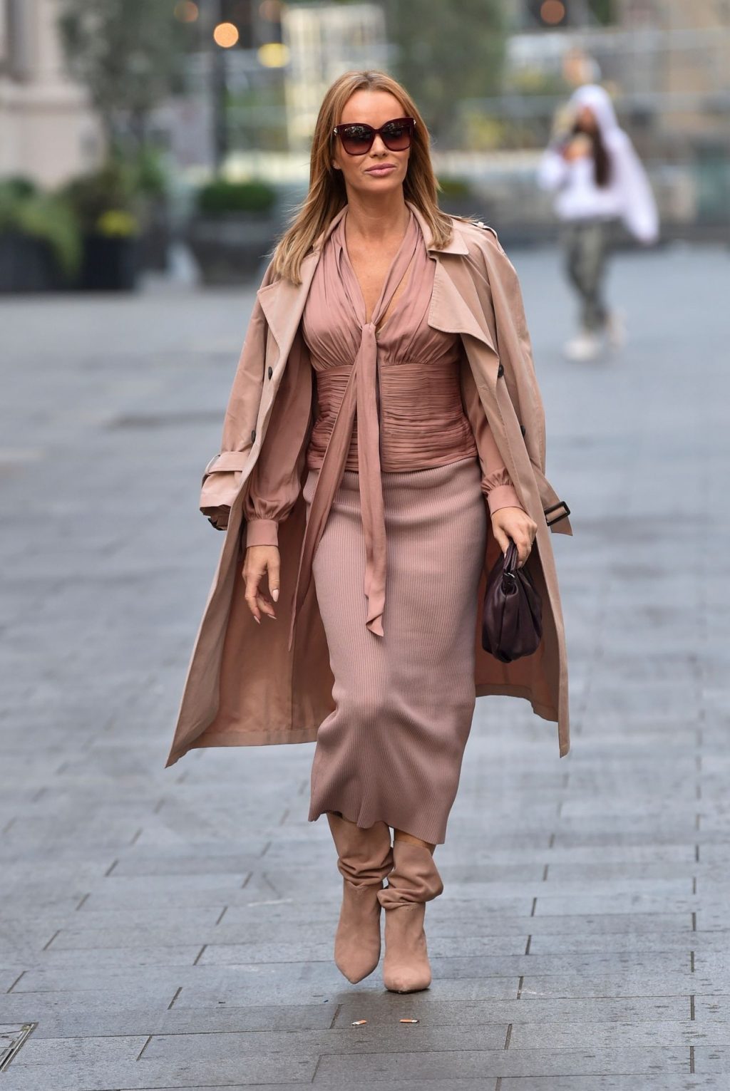 Sexy Amanda Holden indossa un vestito beige per lo show radiofonico Heart a Londra, 11/05/2020.