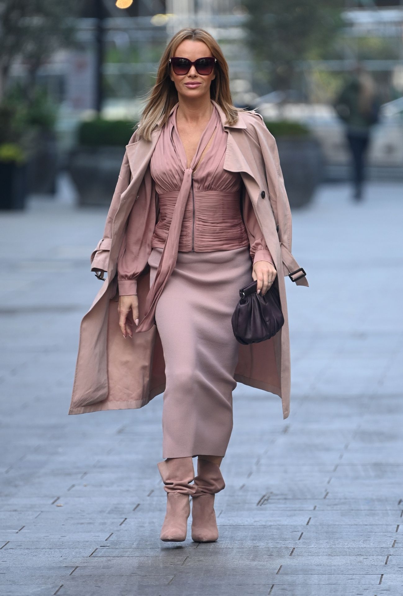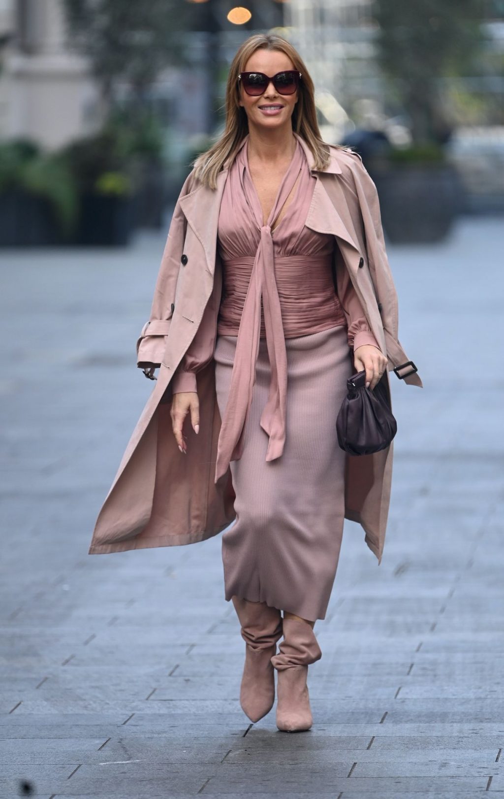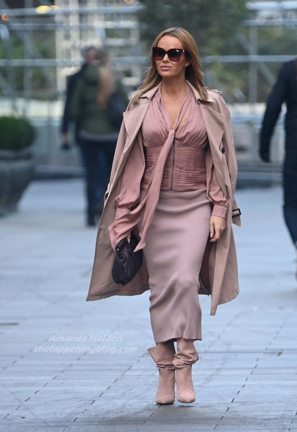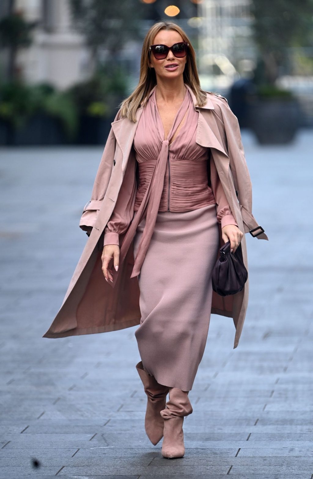 Sexy Amanda Holden indossa un vestito beige per lo show radiofonico Heart a Londra, 11/05/2020.