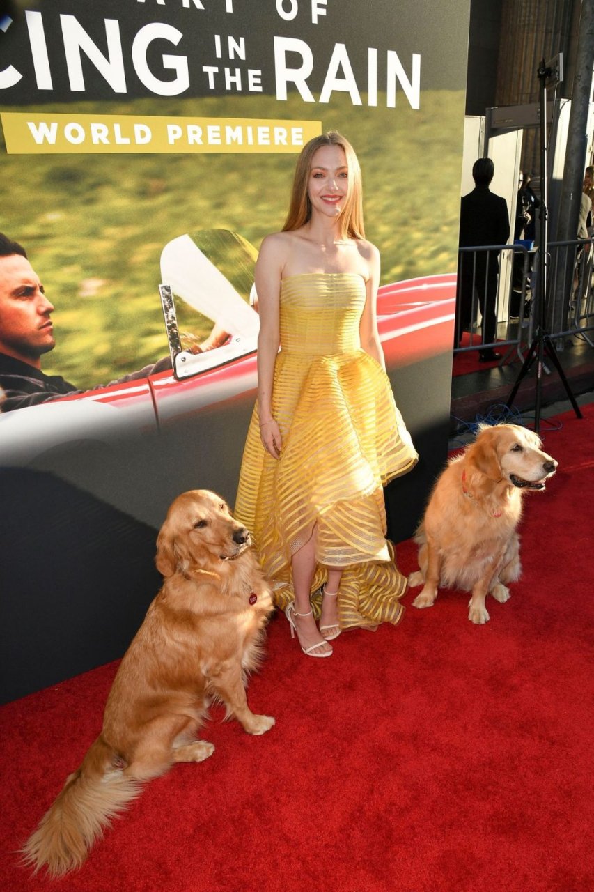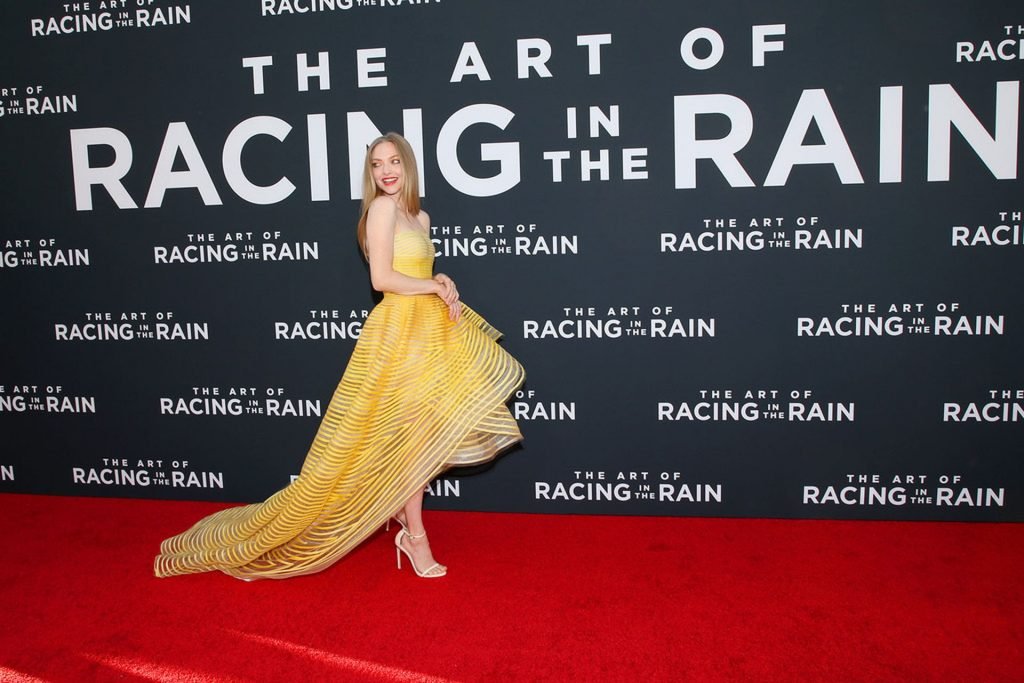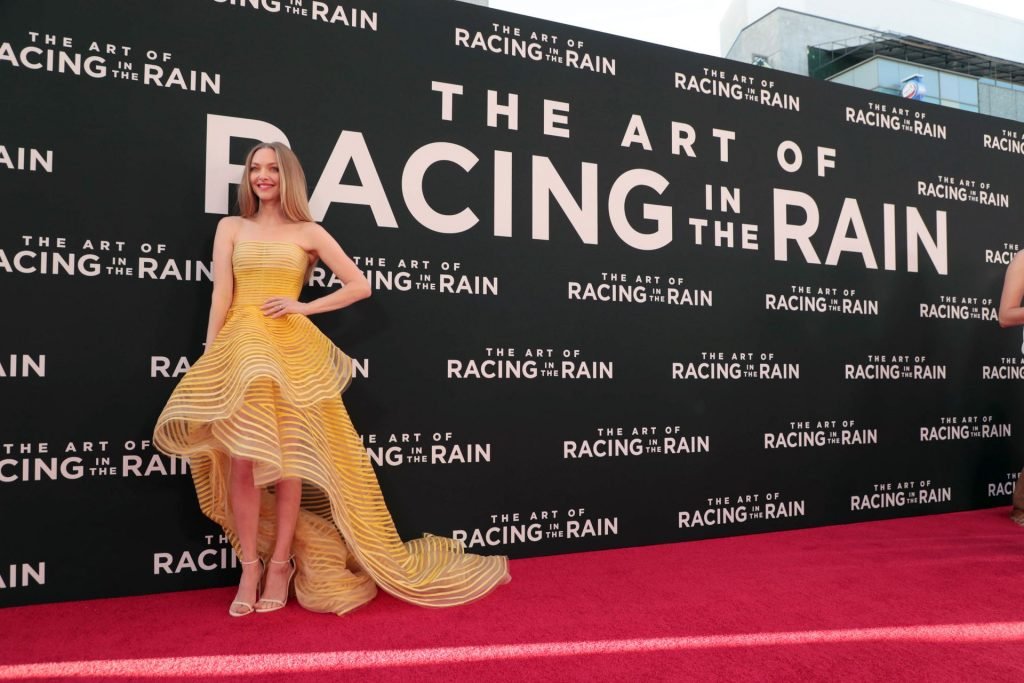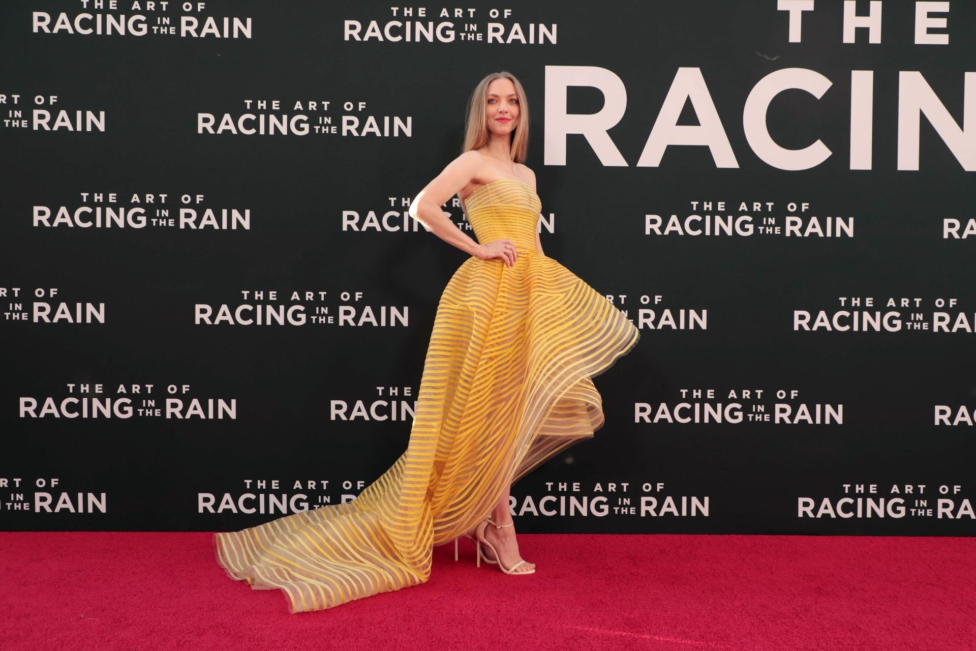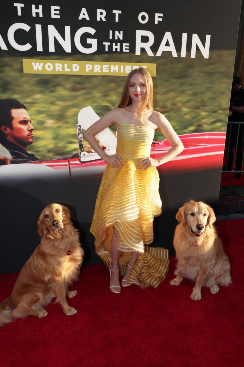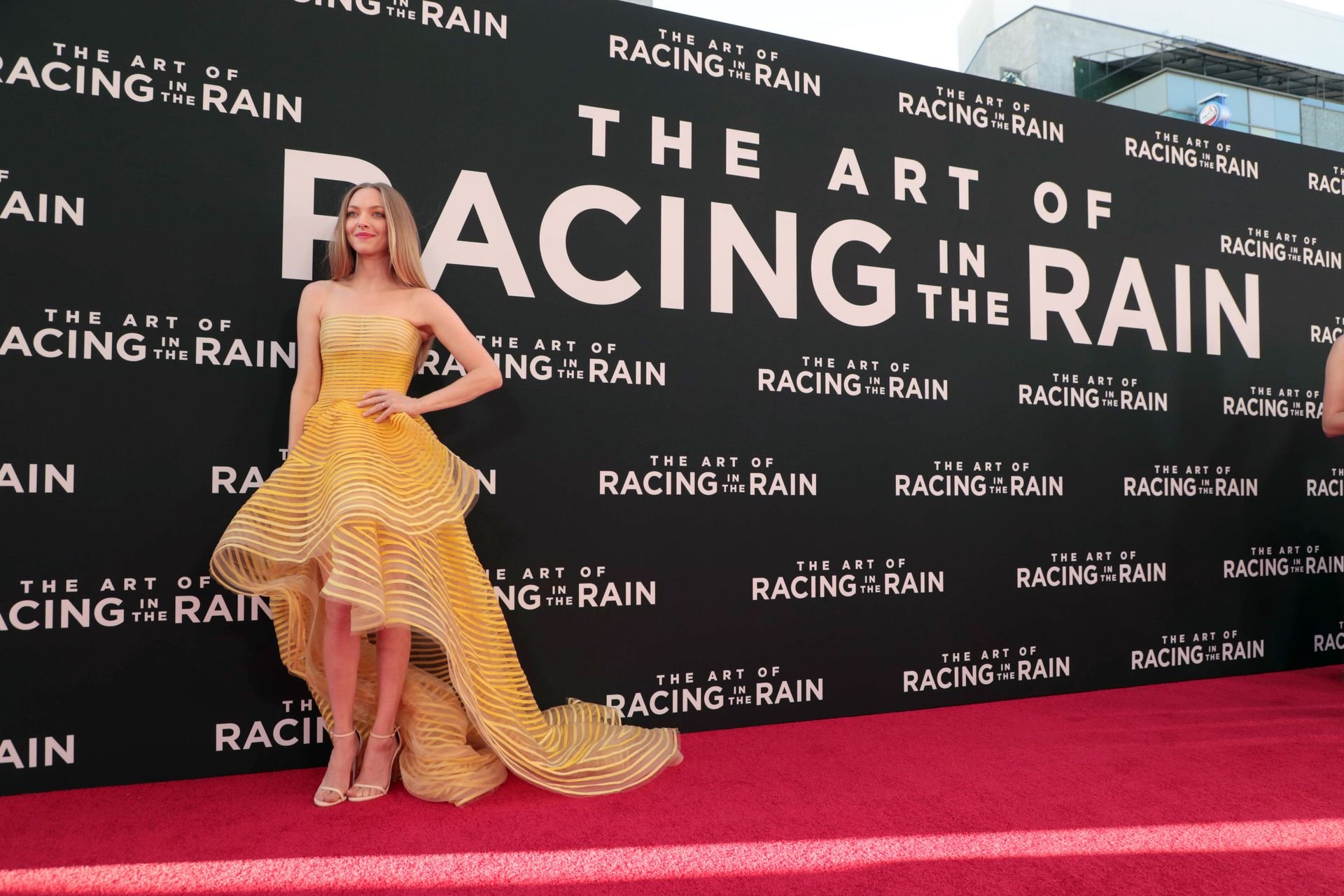 L’attrice Amanda Seyfried indossa un abito Oscar de la Renta, tacchi Stuart Weitzman e orecchini Jennifer Meyer mentre arriva alla prima di Los Angeles del film di 20th Century Fox ‘The Art Of Racing In The Rain’ tenutasi al El Capitan Theatre a Hollywood, Los Angeles, 01/08/2019.