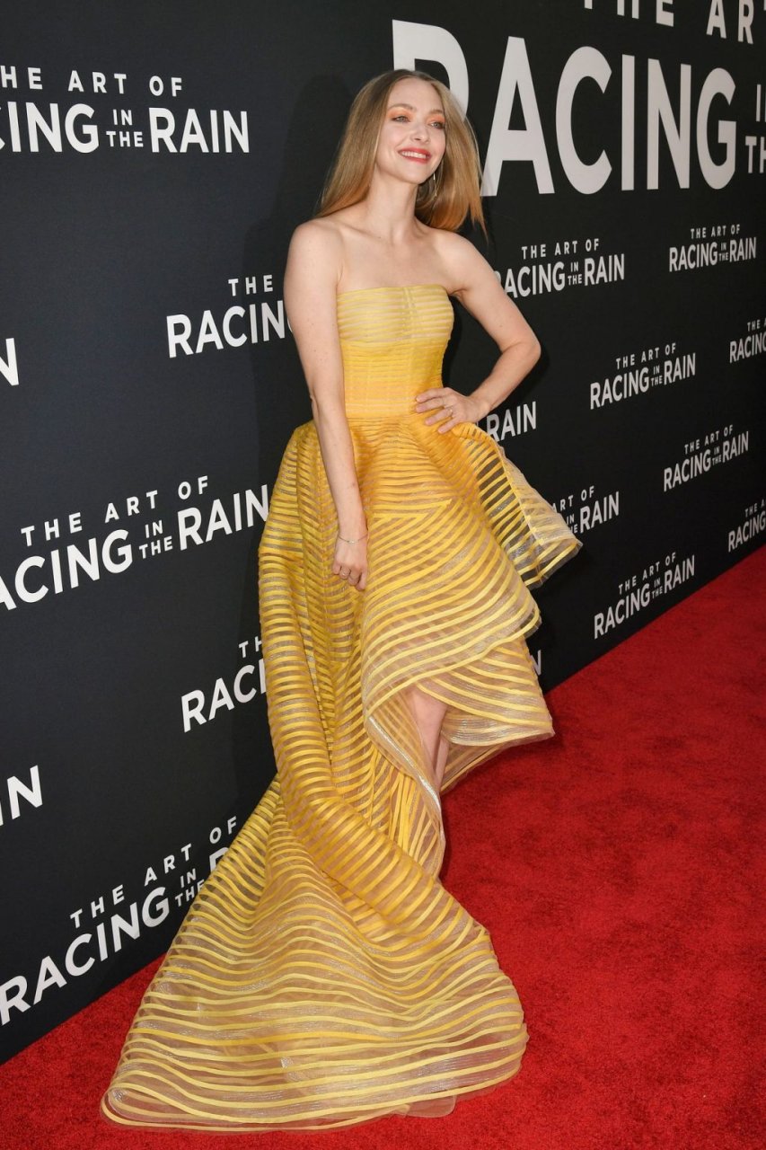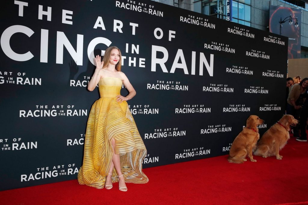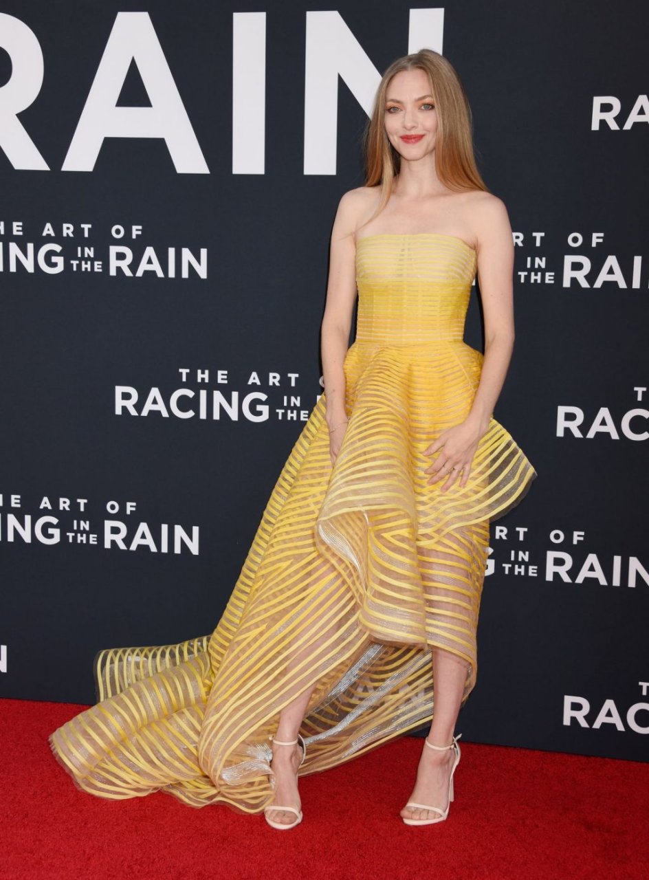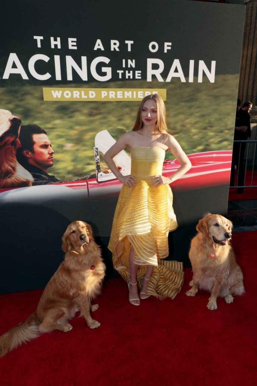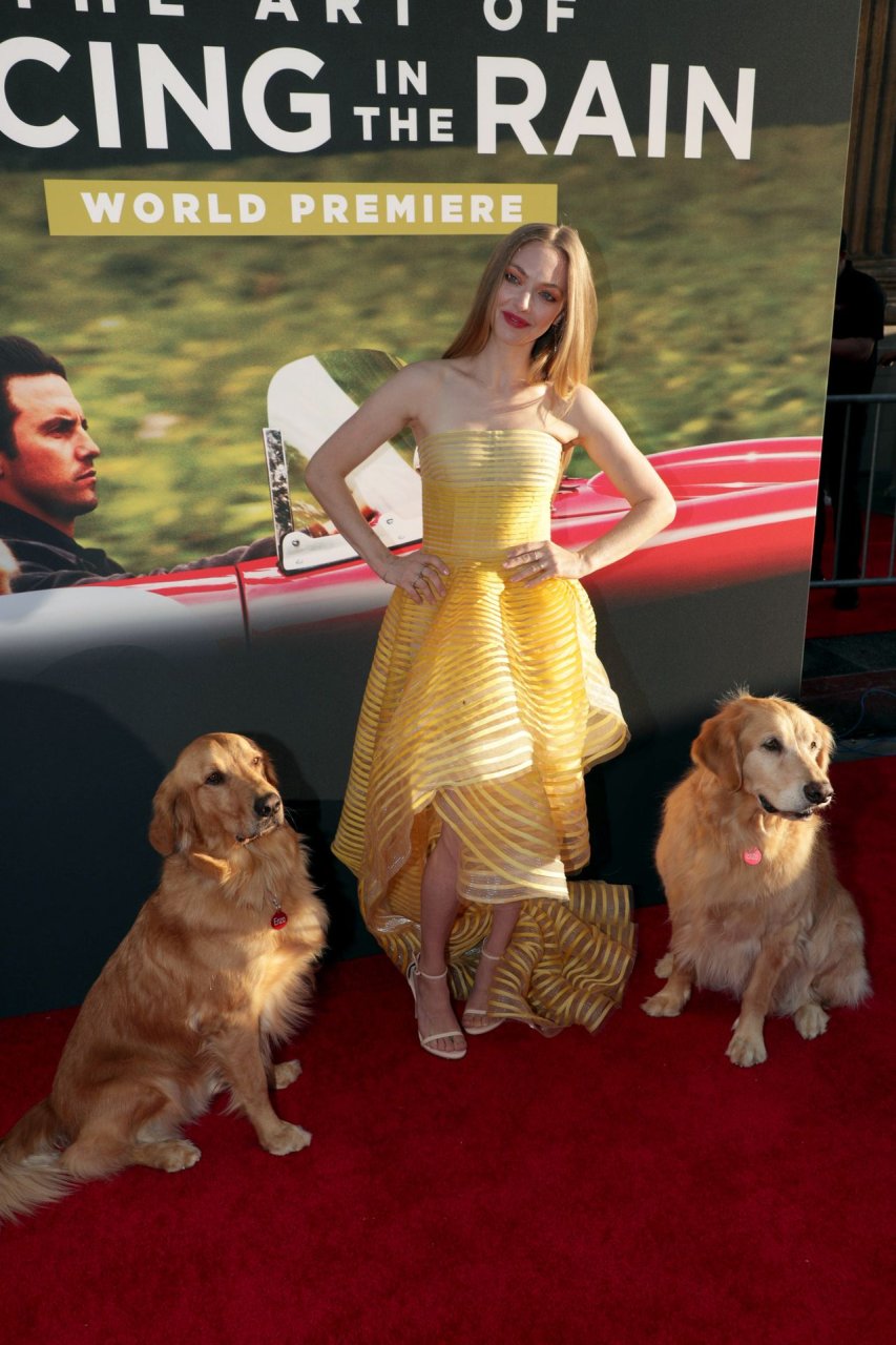 L’attrice Amanda Seyfried indossa un abito Oscar de la Renta, tacchi Stuart Weitzman e orecchini Jennifer Meyer mentre arriva alla prima di Los Angeles del film di 20th Century Fox ‘The Art Of Racing In The Rain’ tenutasi al El Capitan Theatre a Hollywood, Los Angeles, 01/08/2019.