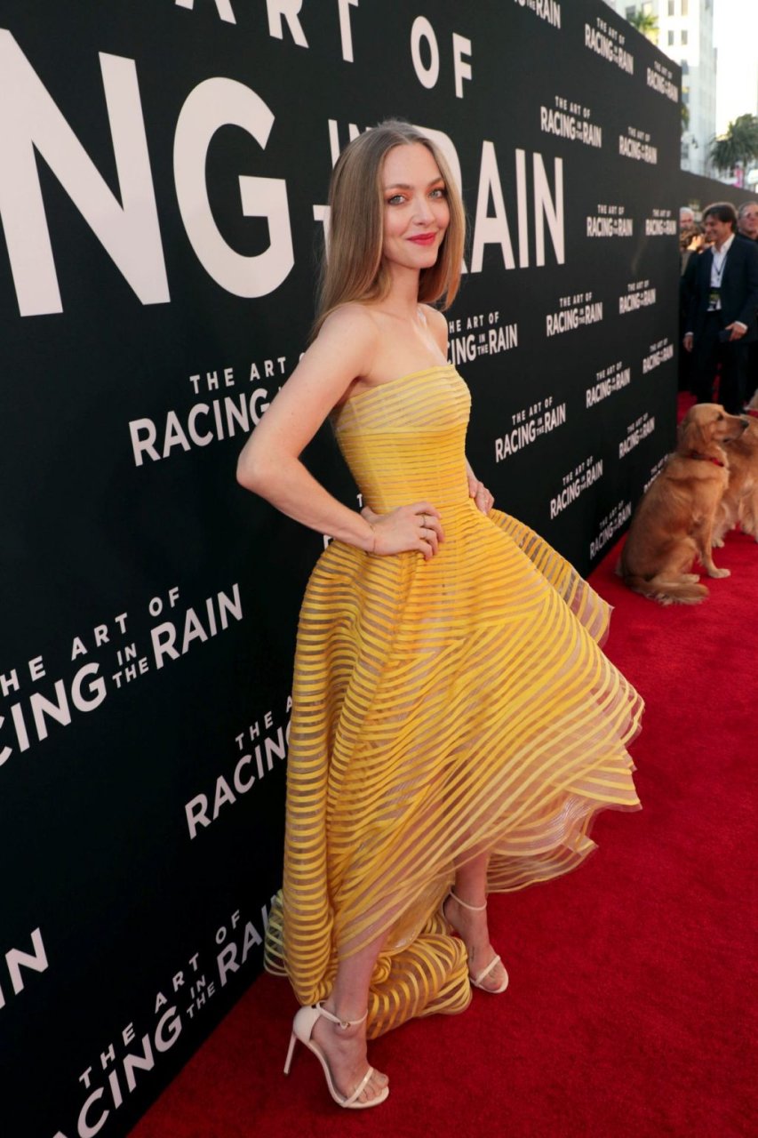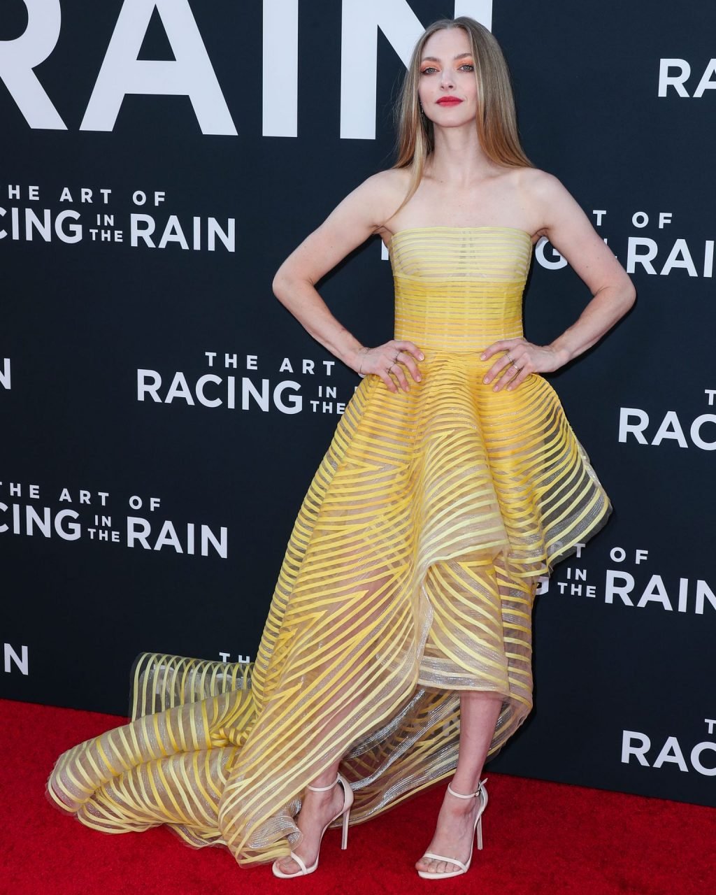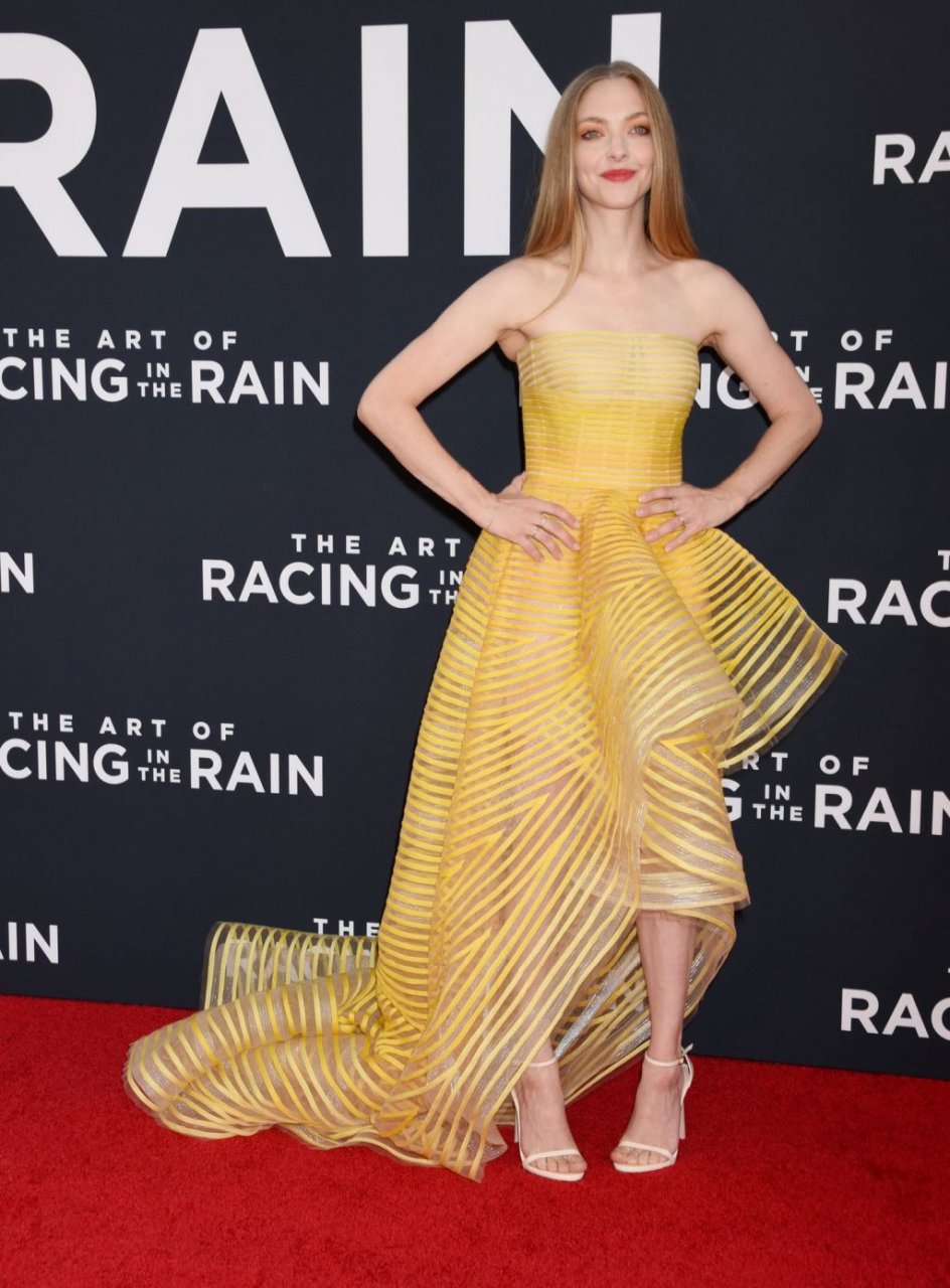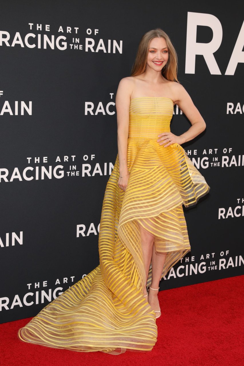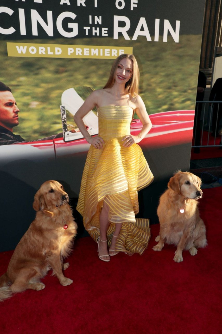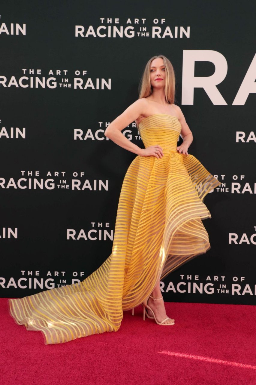 L’attrice Amanda Seyfried indossa un abito Oscar de la Renta, tacchi Stuart Weitzman e orecchini Jennifer Meyer mentre arriva alla prima di Los Angeles del film di 20th Century Fox ‘The Art Of Racing In The Rain’ tenutasi al El Capitan Theatre a Hollywood, Los Angeles, 01/08/2019.