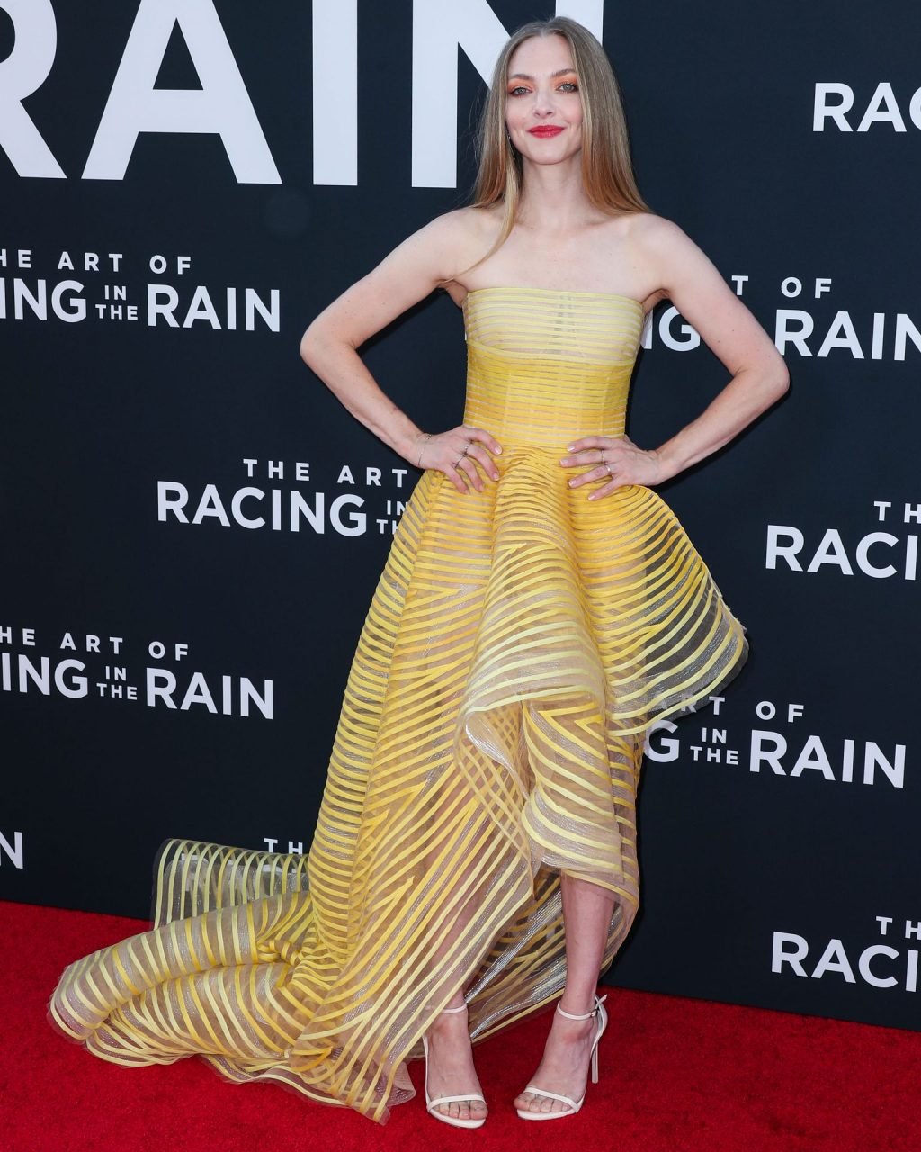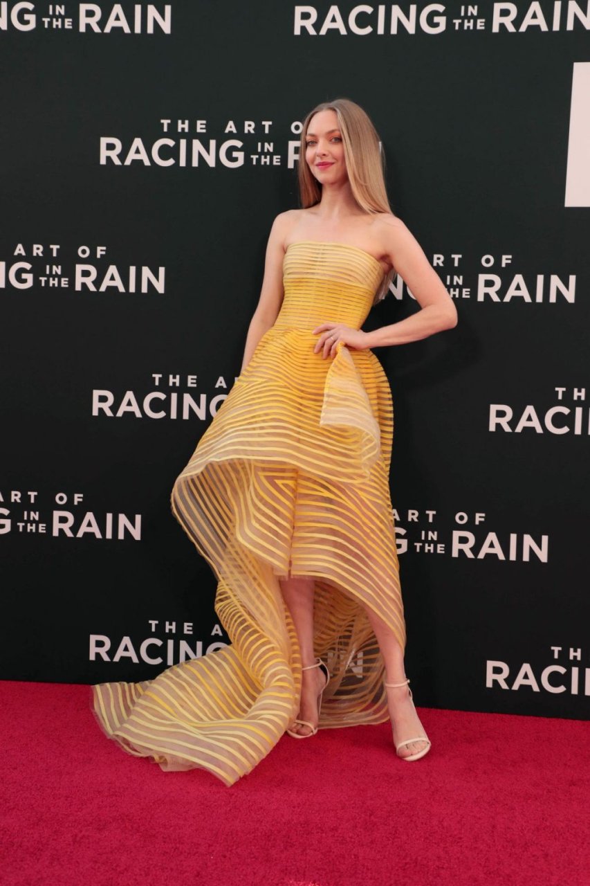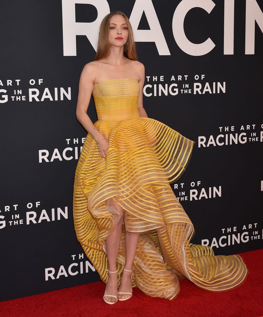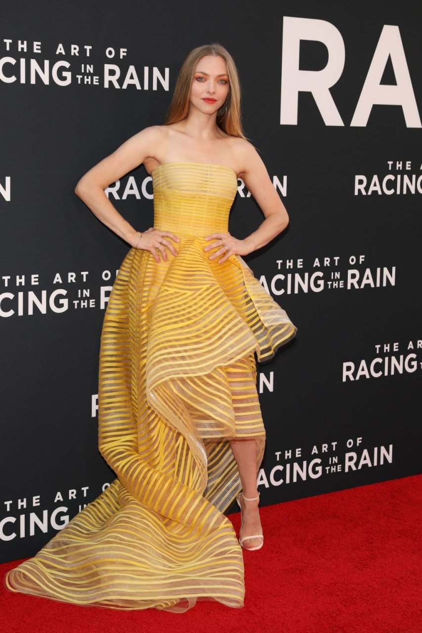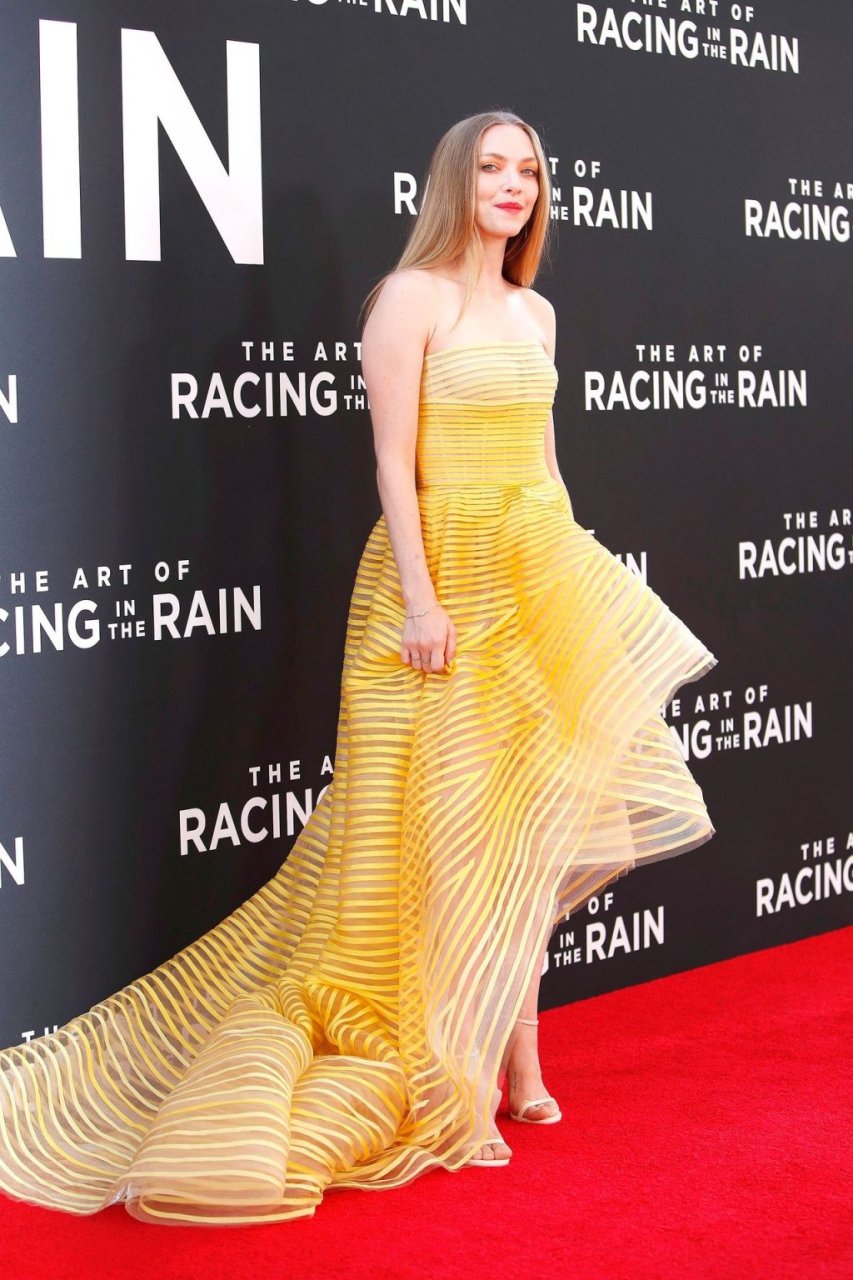 L’attrice Amanda Seyfried indossa un abito Oscar de la Renta, tacchi Stuart Weitzman e orecchini Jennifer Meyer mentre arriva alla prima di Los Angeles del film di 20th Century Fox ‘The Art Of Racing In The Rain’ tenutasi al El Capitan Theatre a Hollywood, Los Angeles, 01/08/2019.