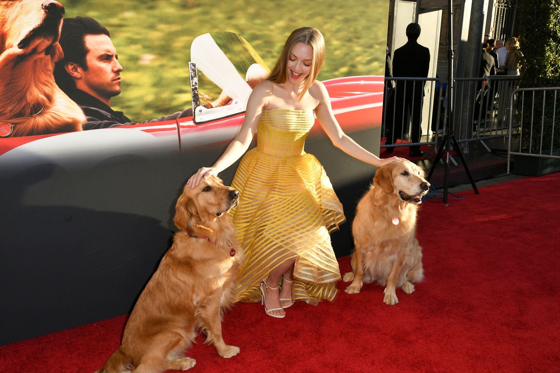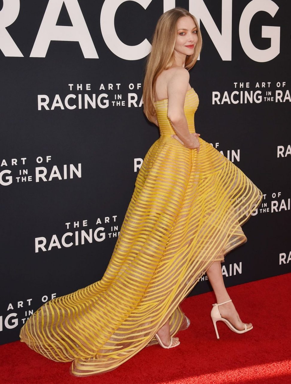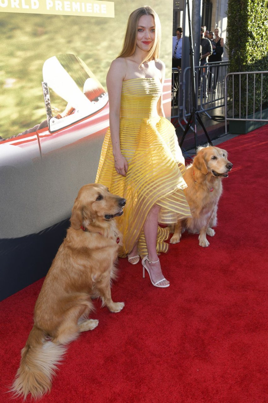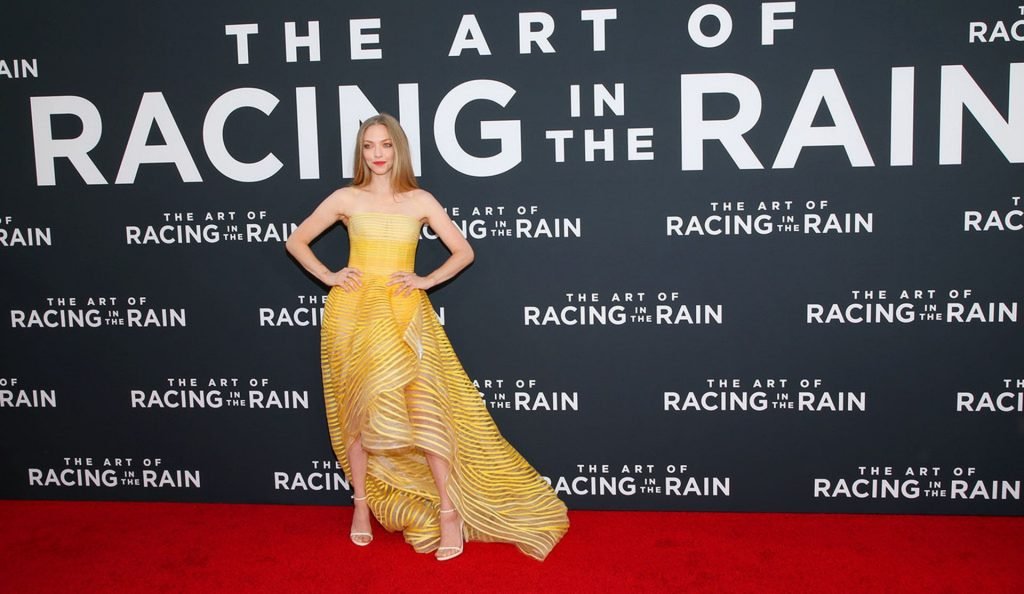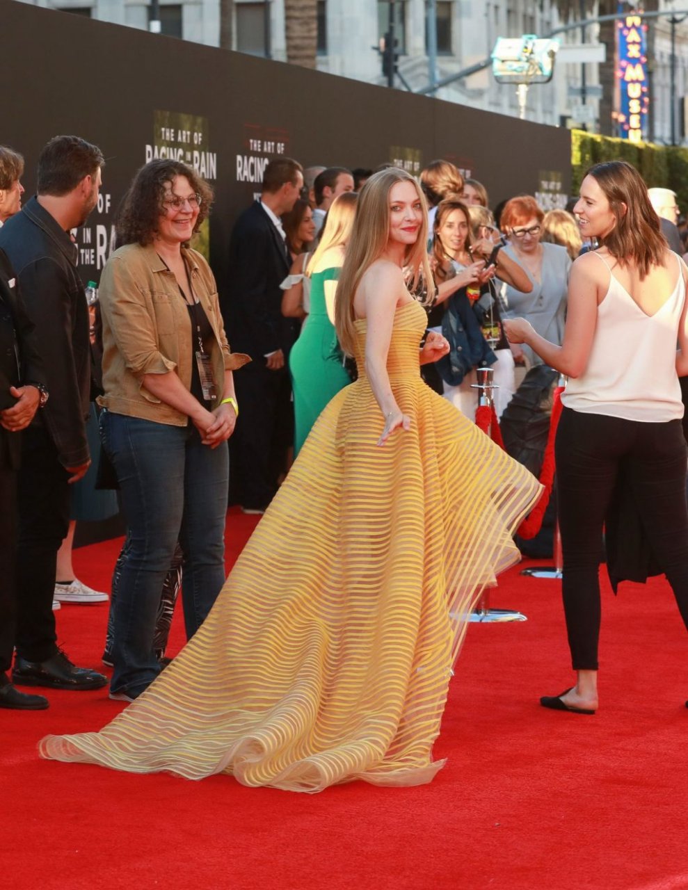 L’attrice Amanda Seyfried indossa un abito Oscar de la Renta, tacchi Stuart Weitzman e orecchini Jennifer Meyer mentre arriva alla prima di Los Angeles del film di 20th Century Fox ‘The Art Of Racing In The Rain’ tenutasi al El Capitan Theatre a Hollywood, Los Angeles, 01/08/2019.