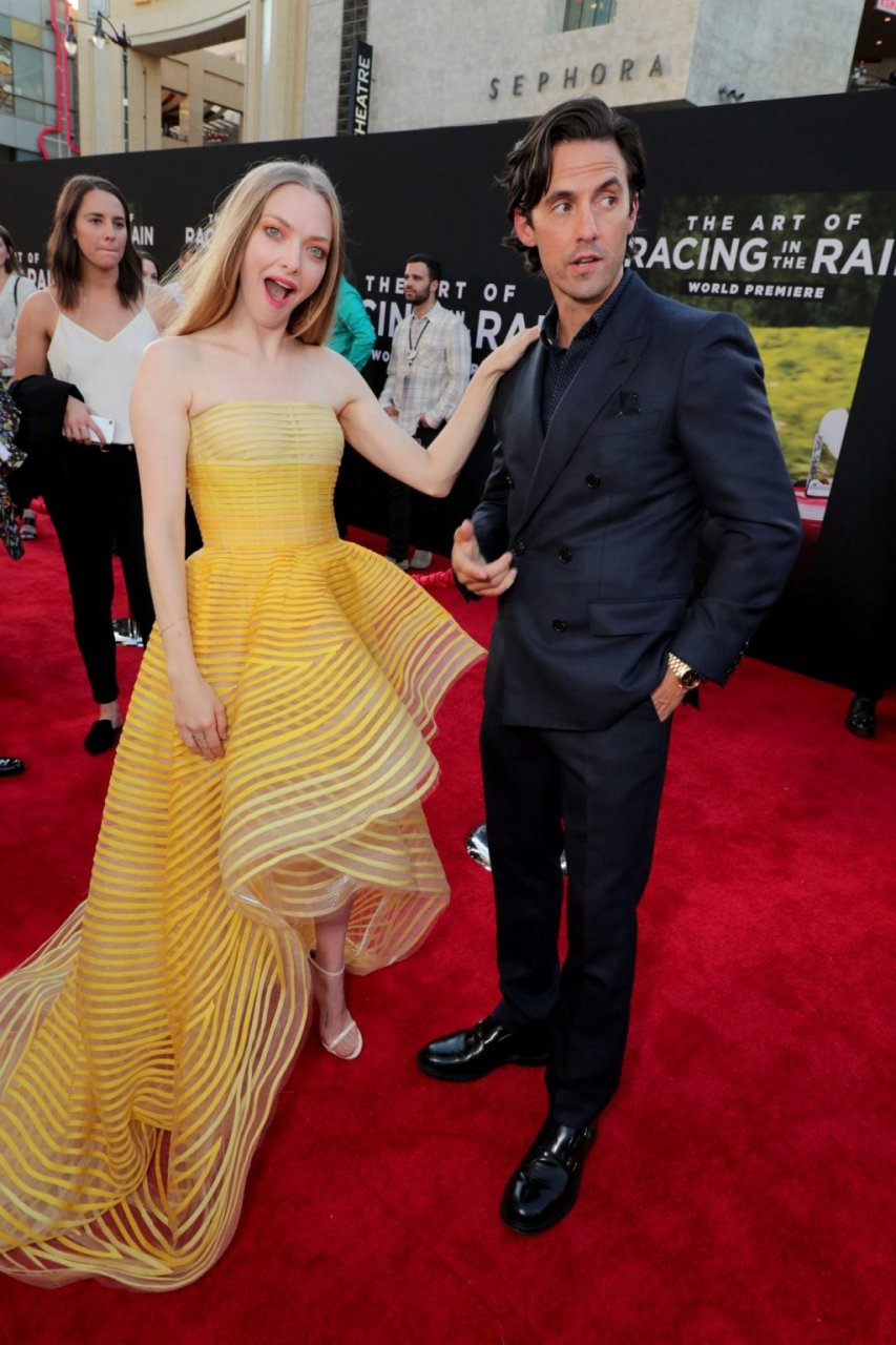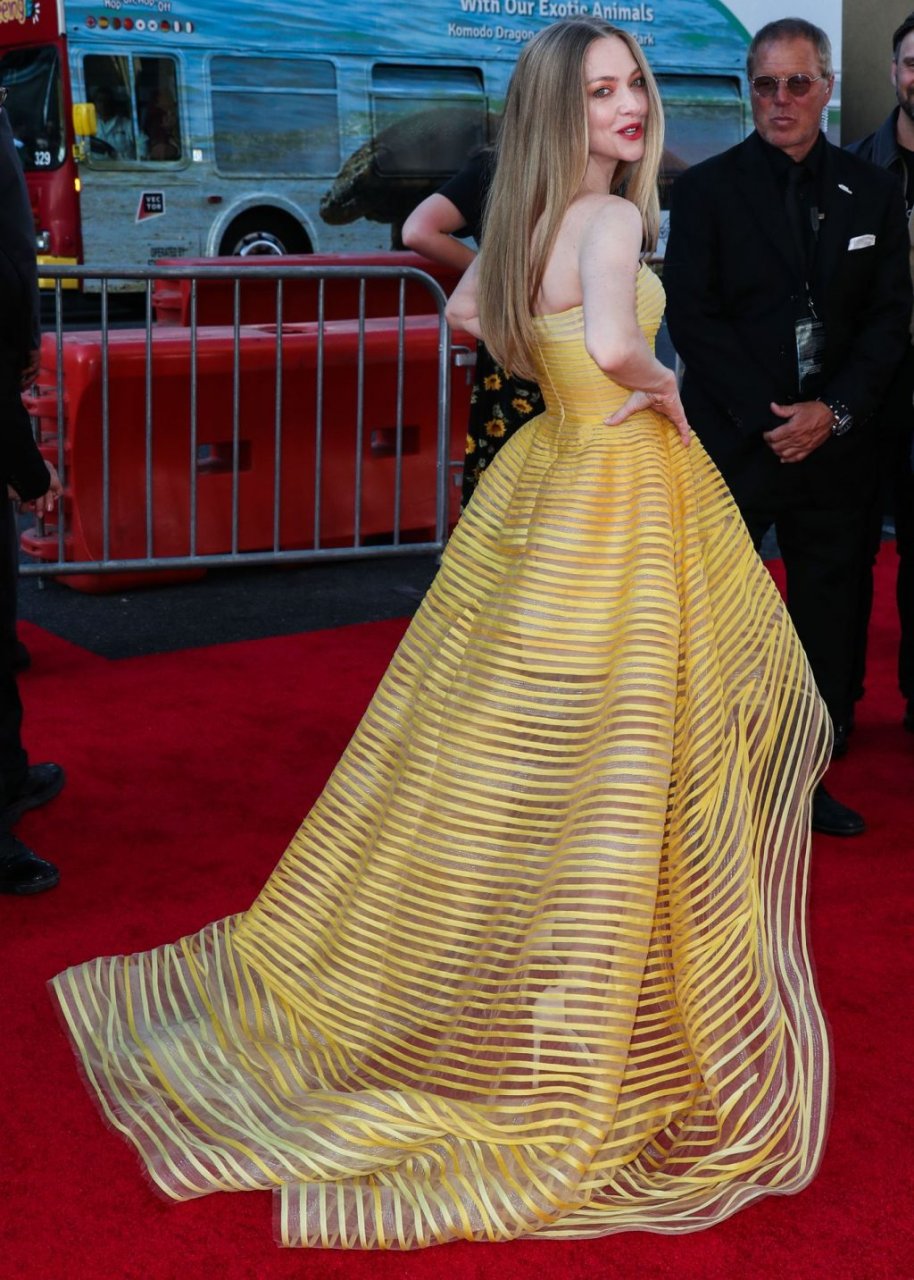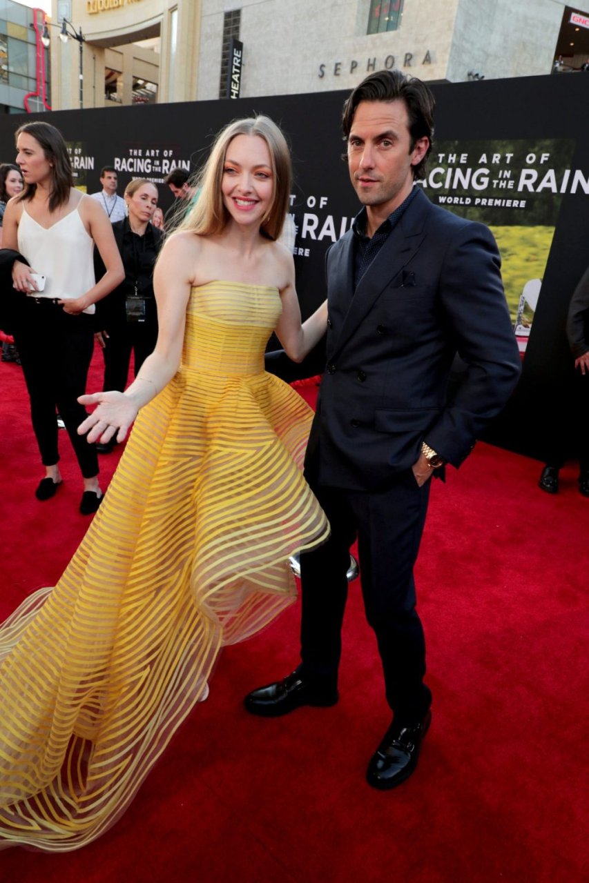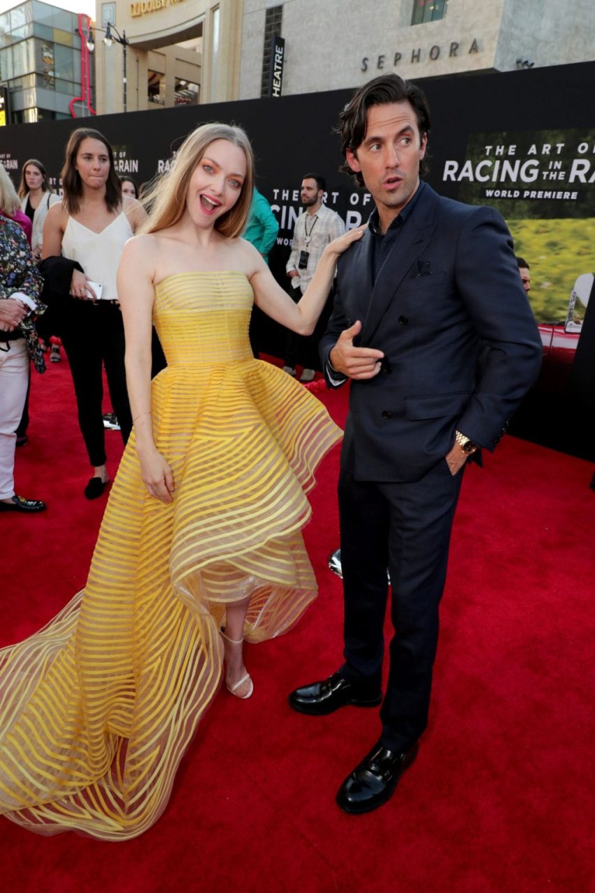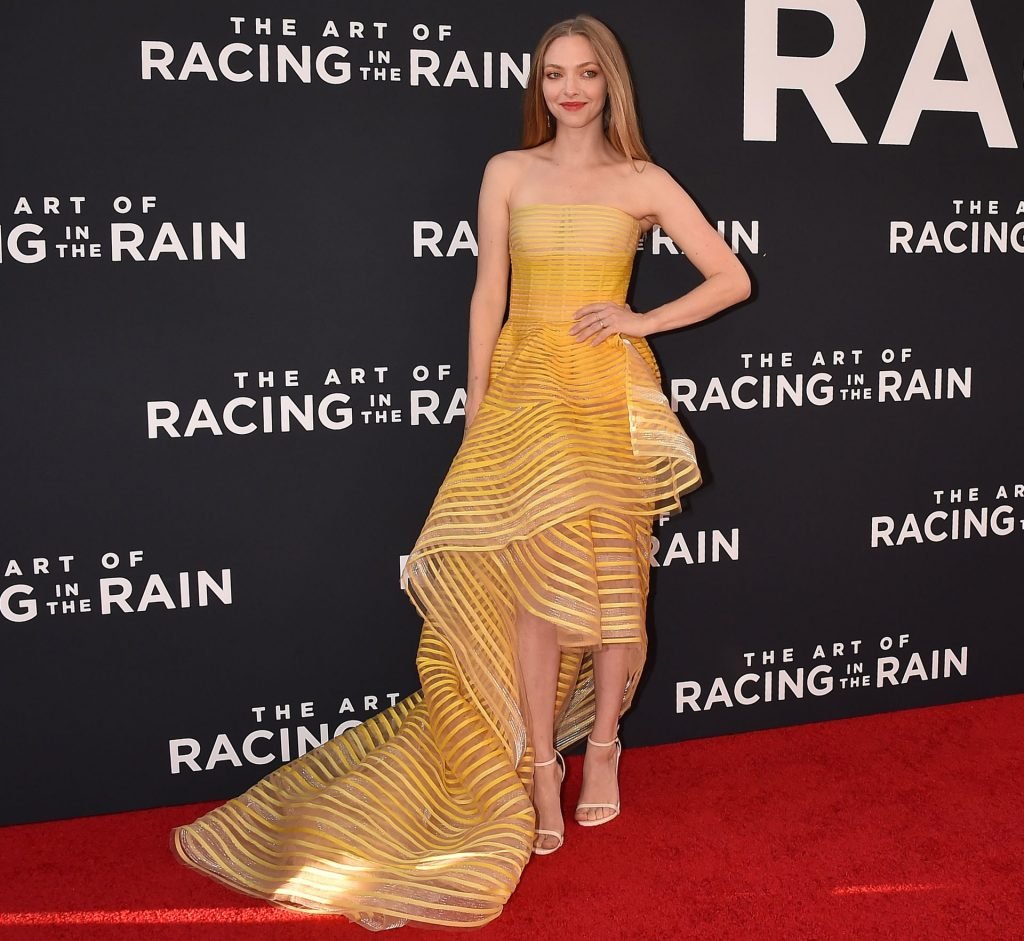 L’attrice Amanda Seyfried indossa un abito Oscar de la Renta, tacchi Stuart Weitzman e orecchini Jennifer Meyer mentre arriva alla prima di Los Angeles del film di 20th Century Fox ‘The Art Of Racing In The Rain’ tenutasi al El Capitan Theatre a Hollywood, Los Angeles, 01/08/2019.