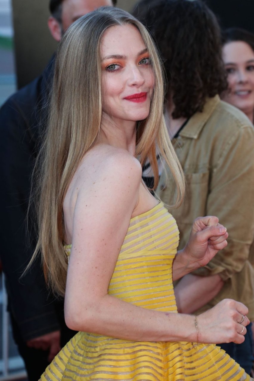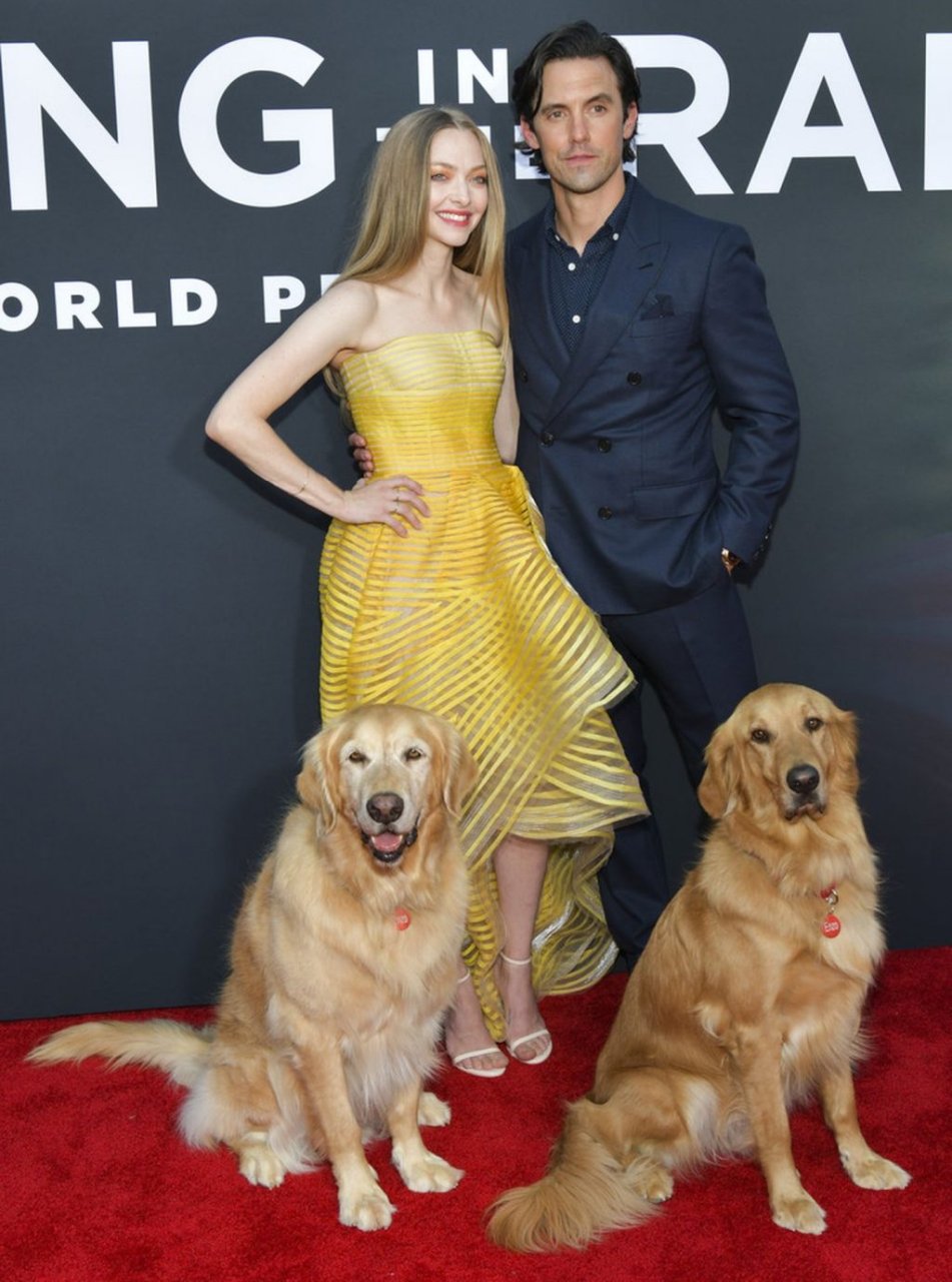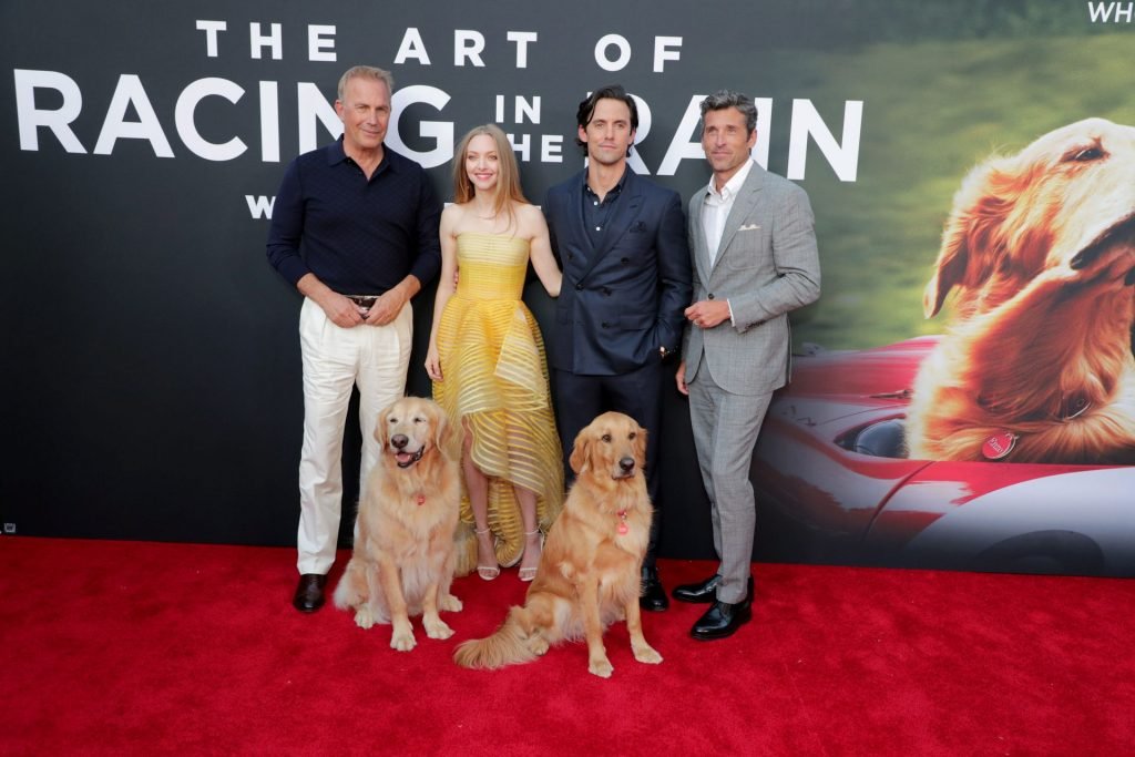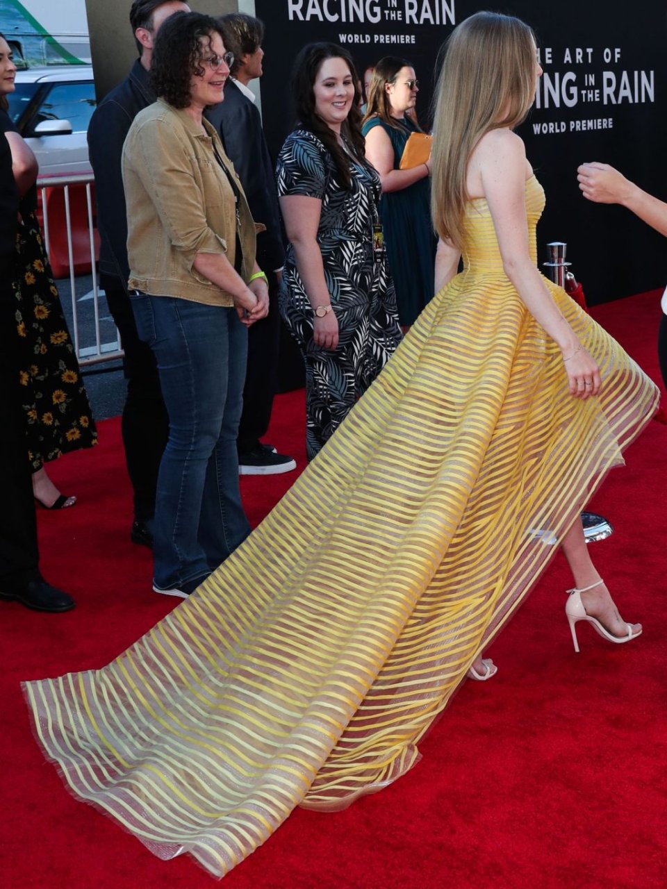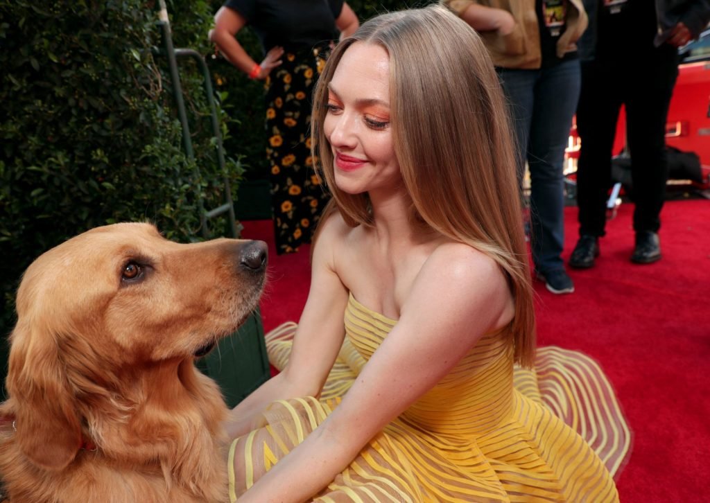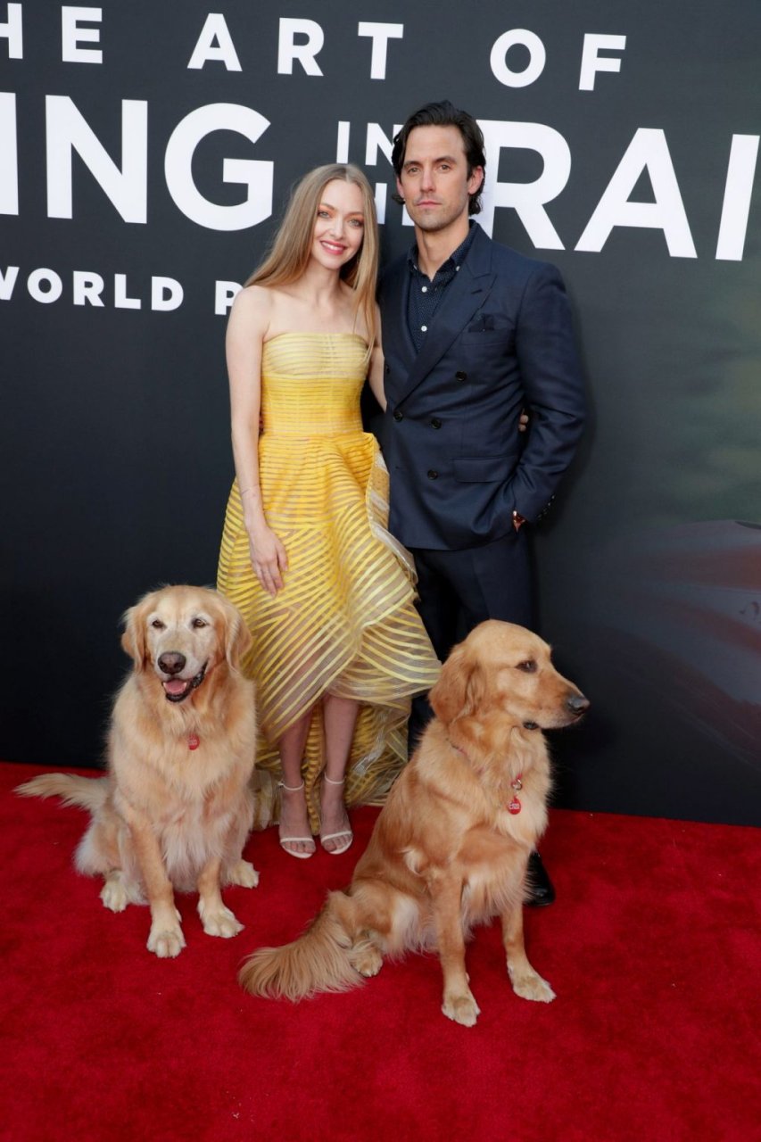 L’attrice Amanda Seyfried indossa un abito Oscar de la Renta, tacchi Stuart Weitzman e orecchini Jennifer Meyer mentre arriva alla prima di Los Angeles del film di 20th Century Fox ‘The Art Of Racing In The Rain’ tenutasi al El Capitan Theatre a Hollywood, Los Angeles, 01/08/2019.